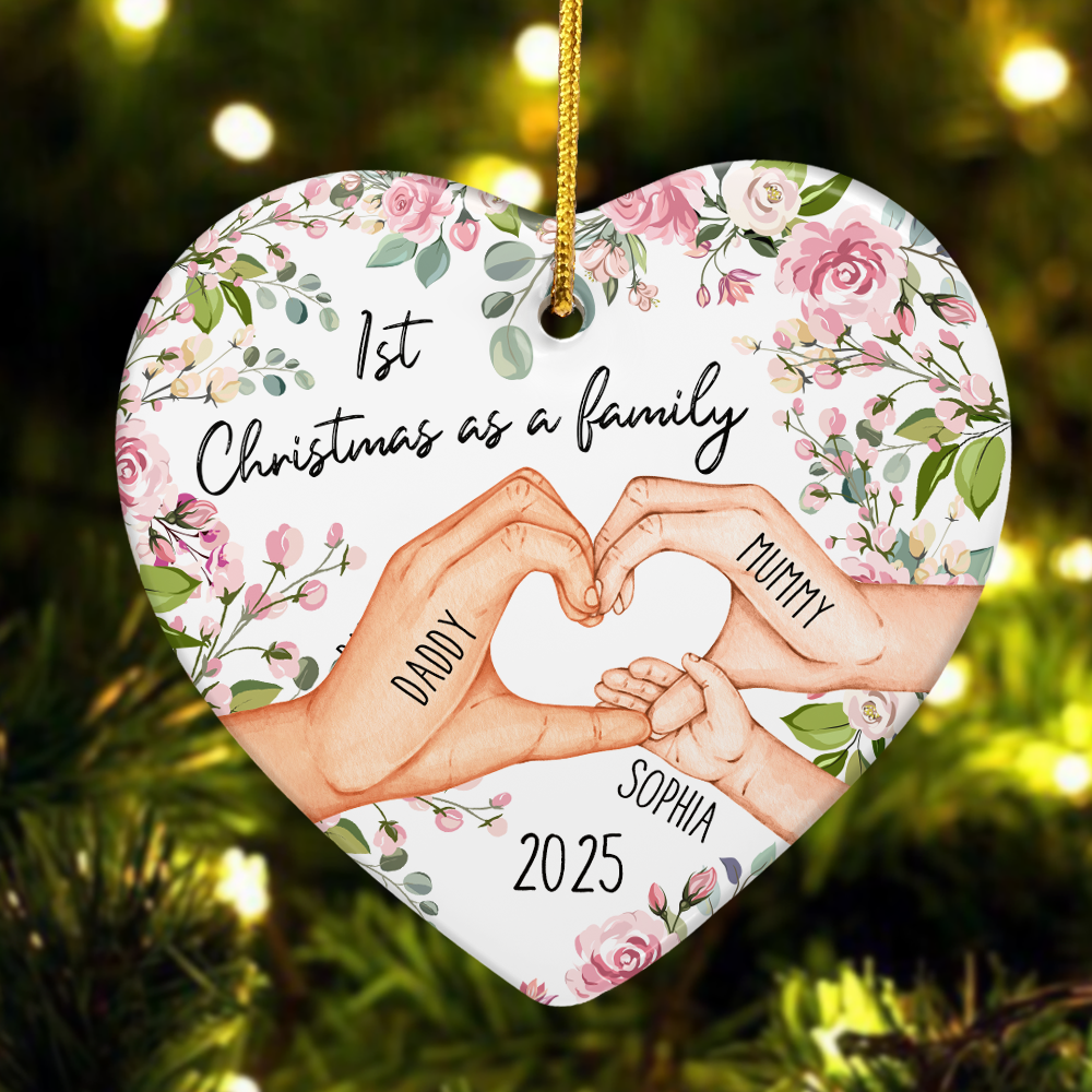 1st Christmas As A Family - Personalized Heart Shaped Ceramic Ornament