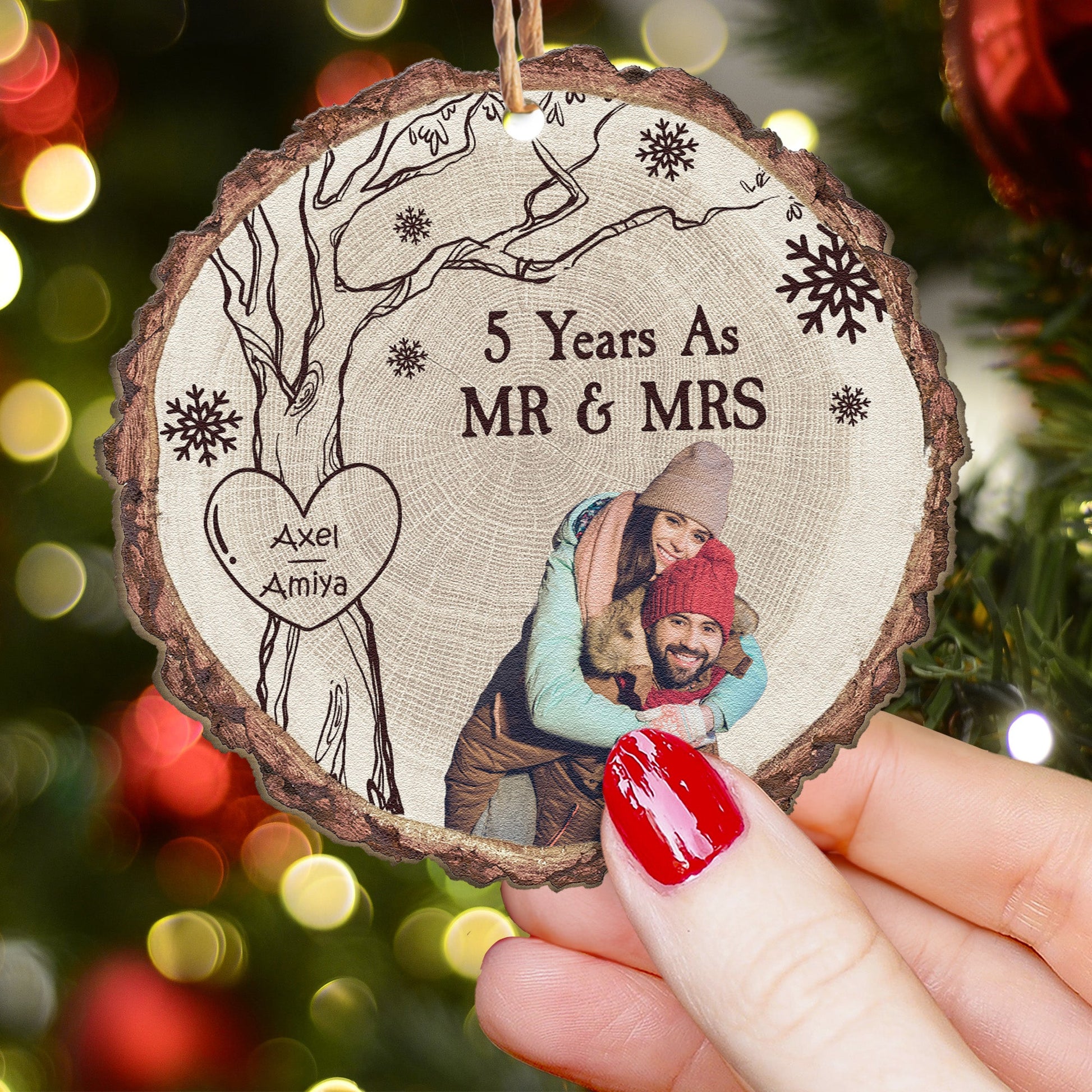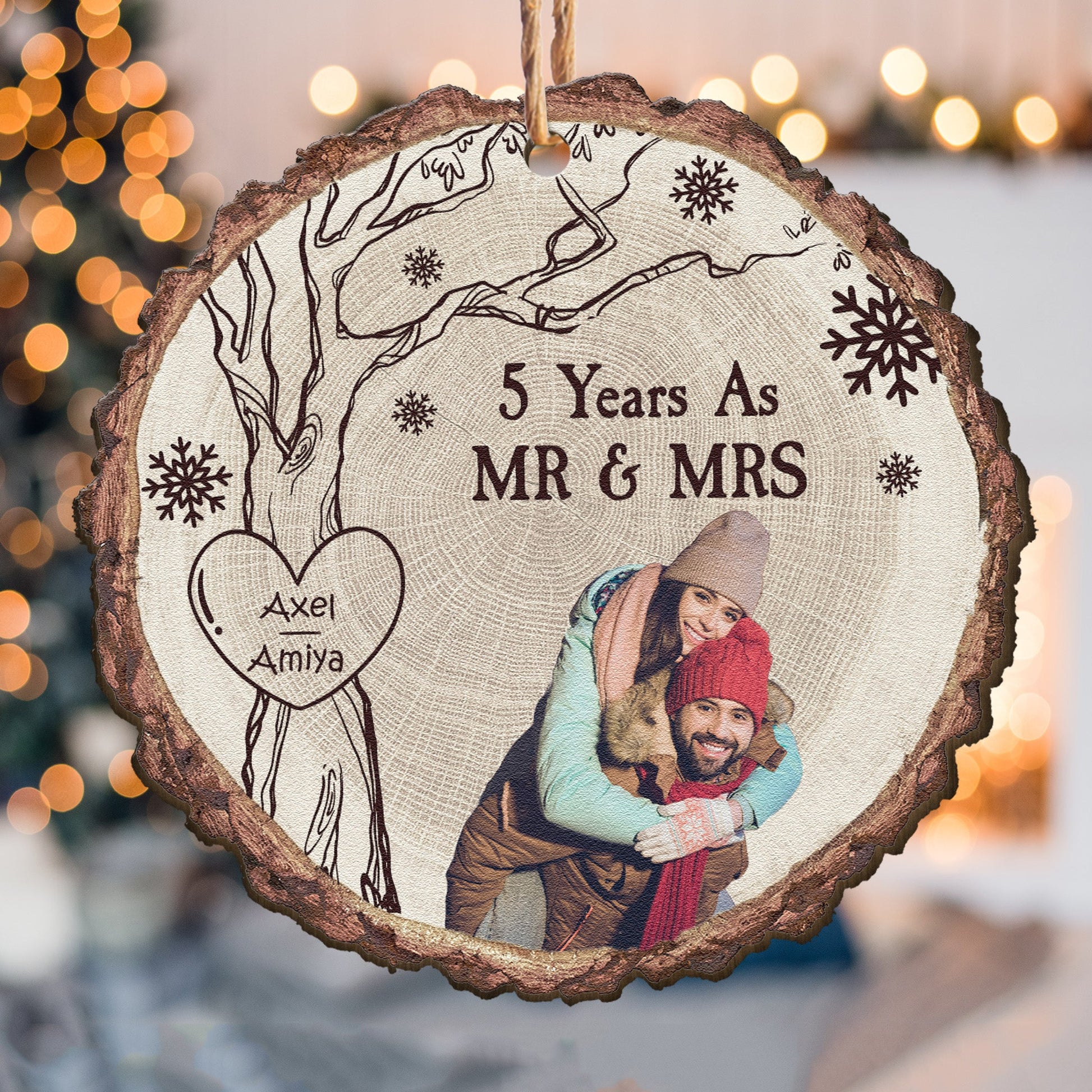 5th Anniversary As Mr & Mrs Christmas Gift - Personalized Wooden Photo Ornament