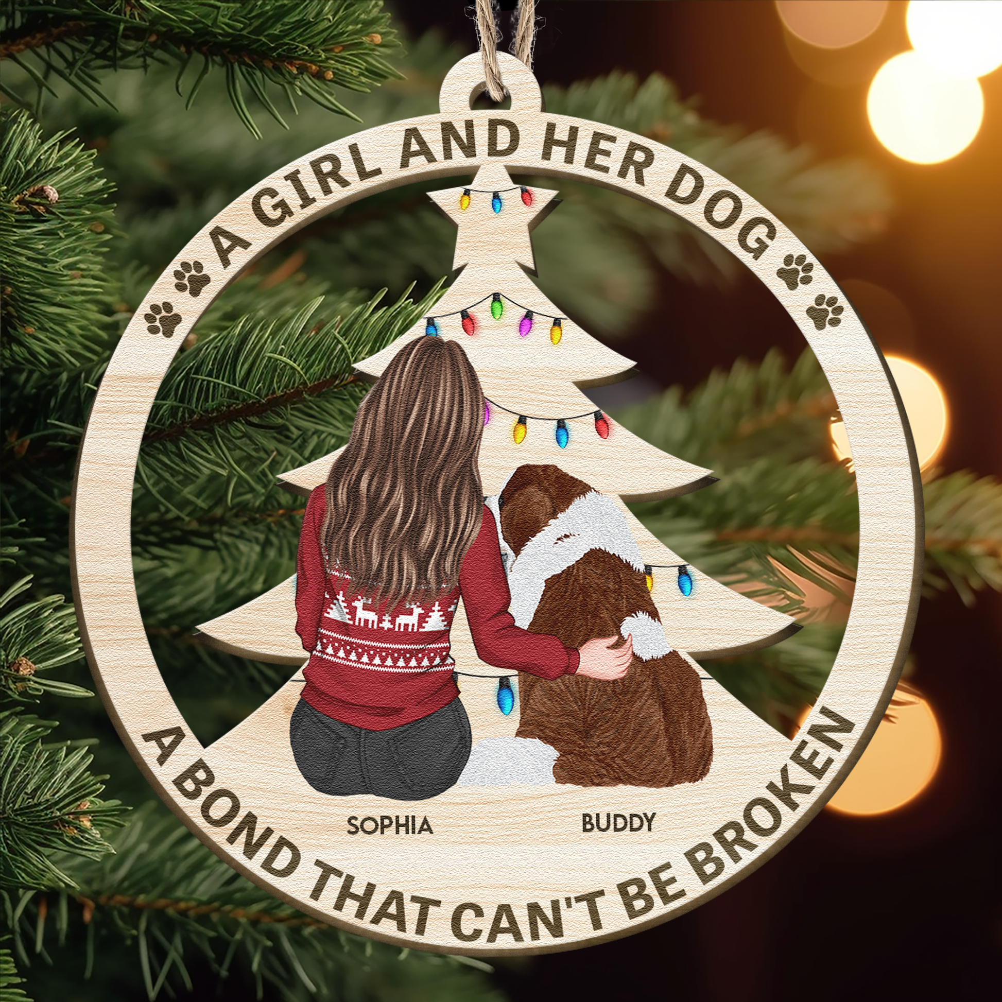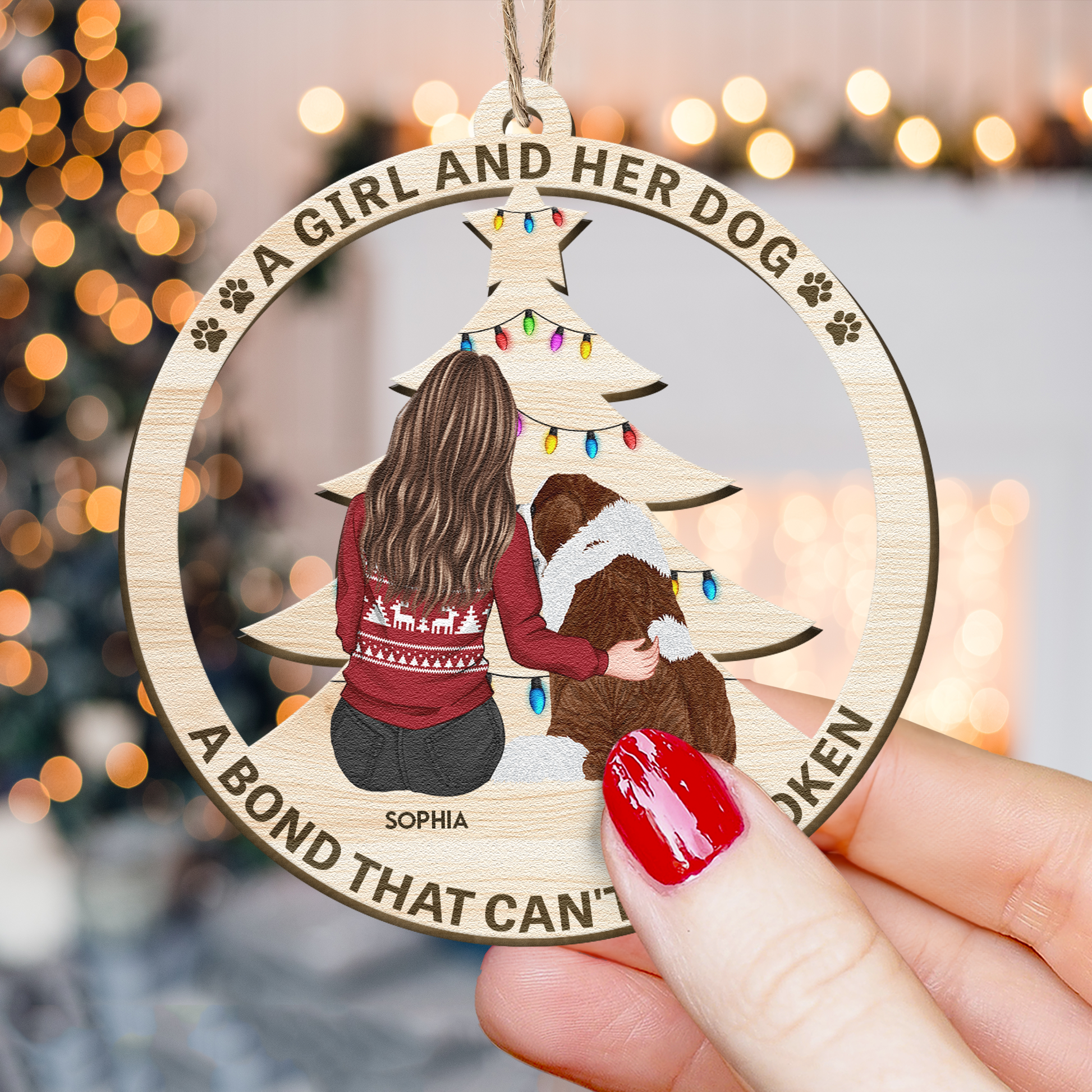 The touching message, "A girl and her dog a bond that can't be broken," adds an extra layer of warmth, making this ornament a perfect tribute to the pets that fill your life with love and joy. Whether you're decorating your own tree or gifting it to a fellow pet lover, this ornament is sure to capture hearts and become a cherished keepsake for years to come. Perfect for celebrating the unconditional love between you and your pet this holiday season!