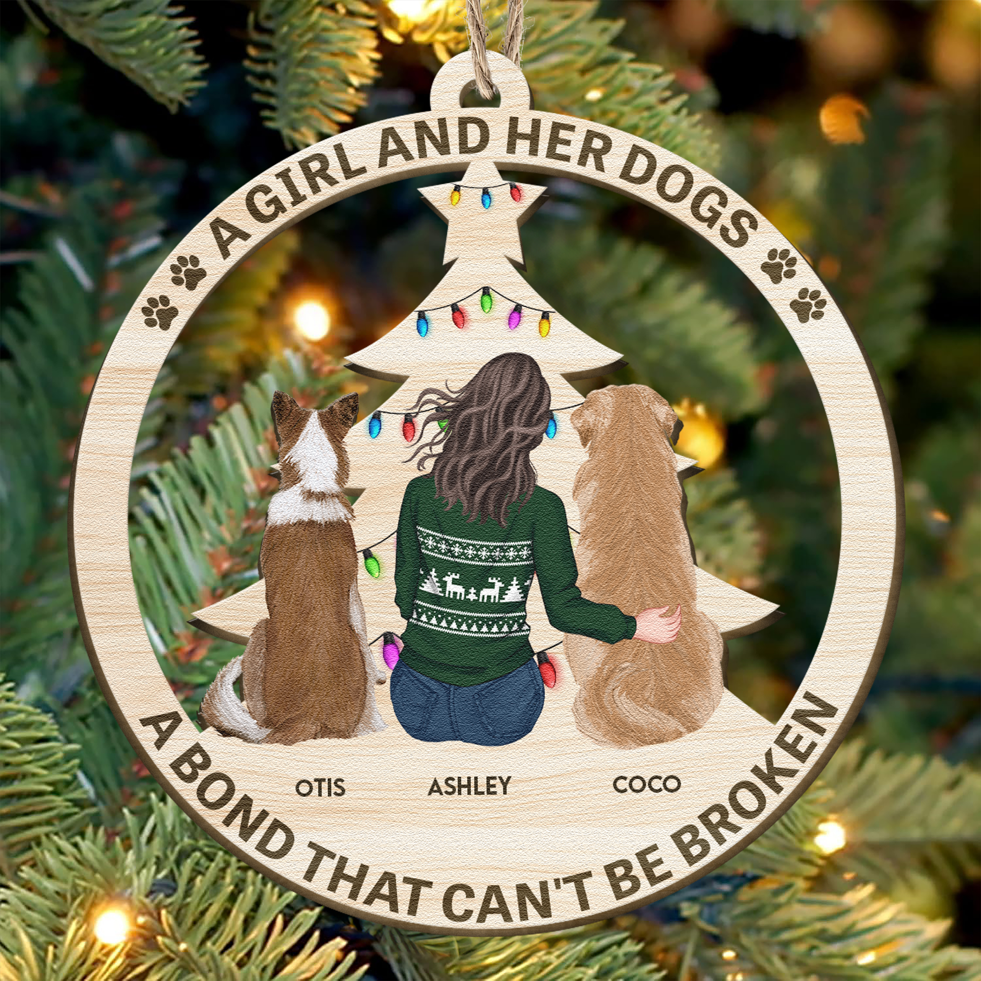 A Girl And Her Dogs - Personalized Wooden Ornament