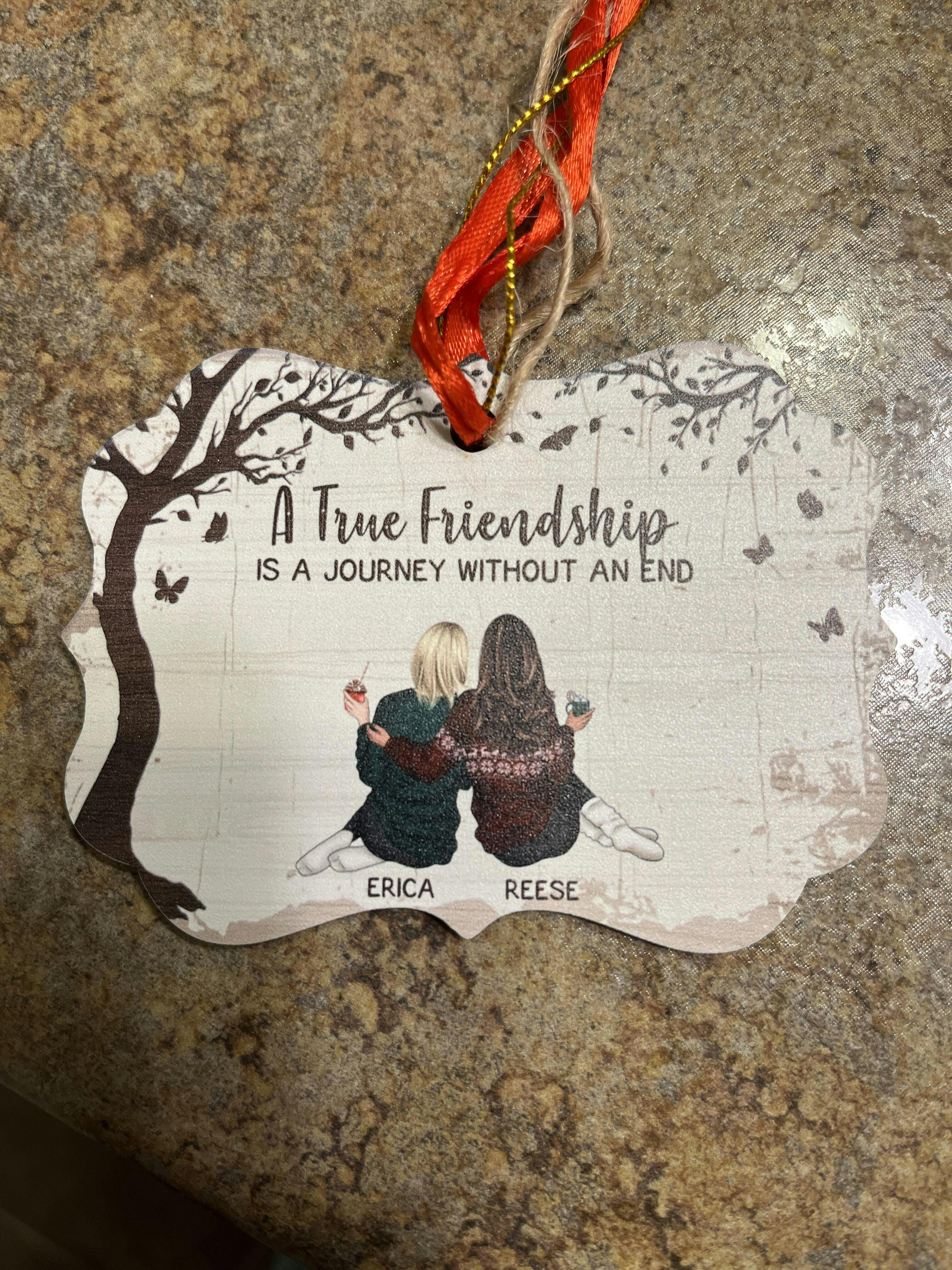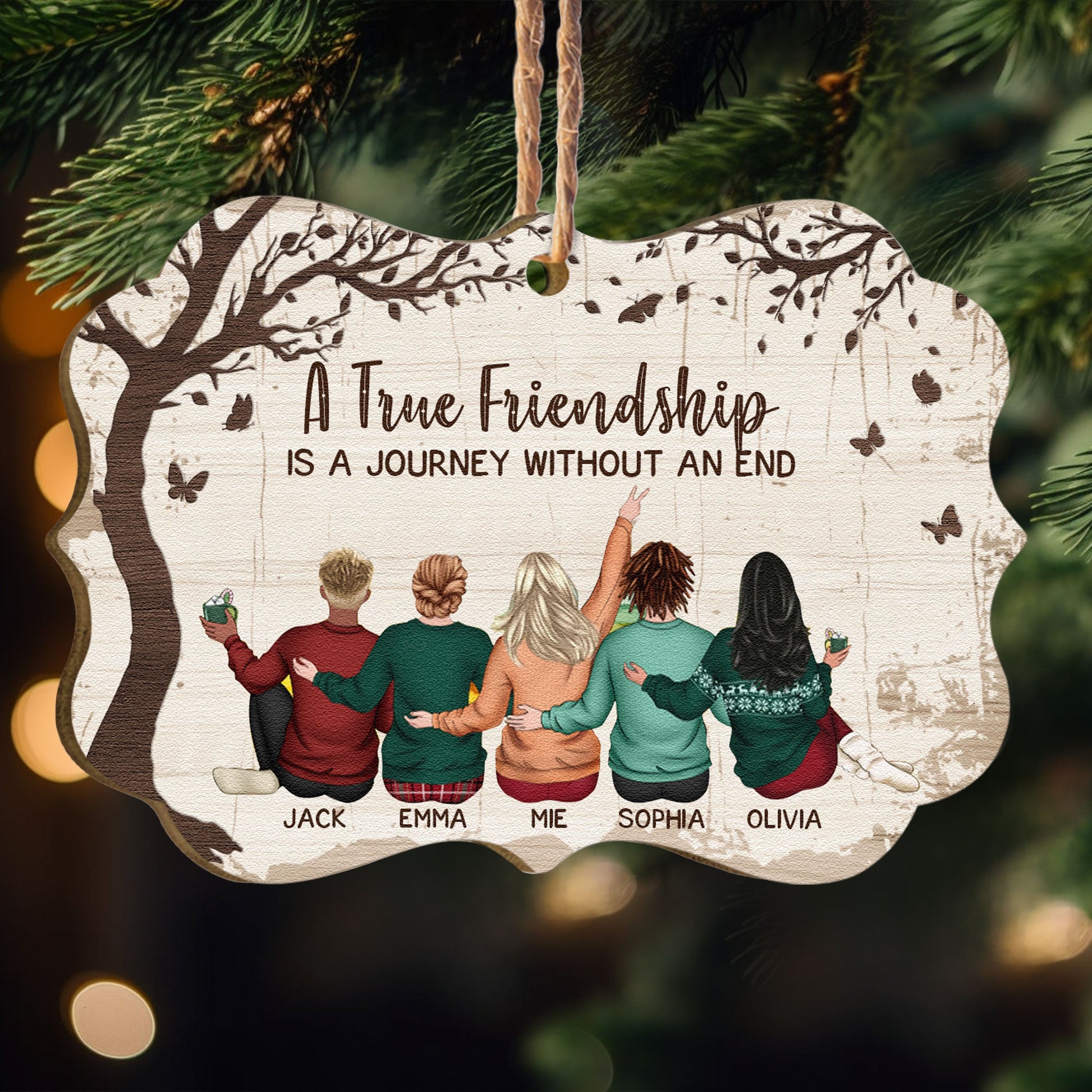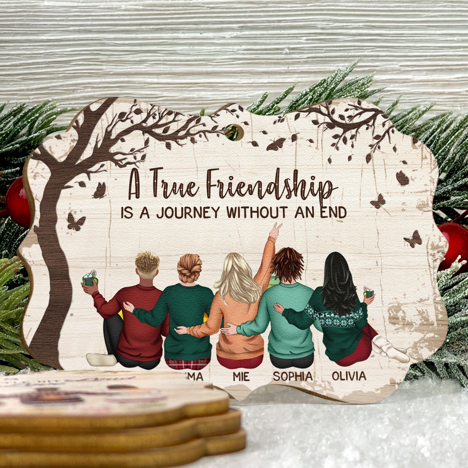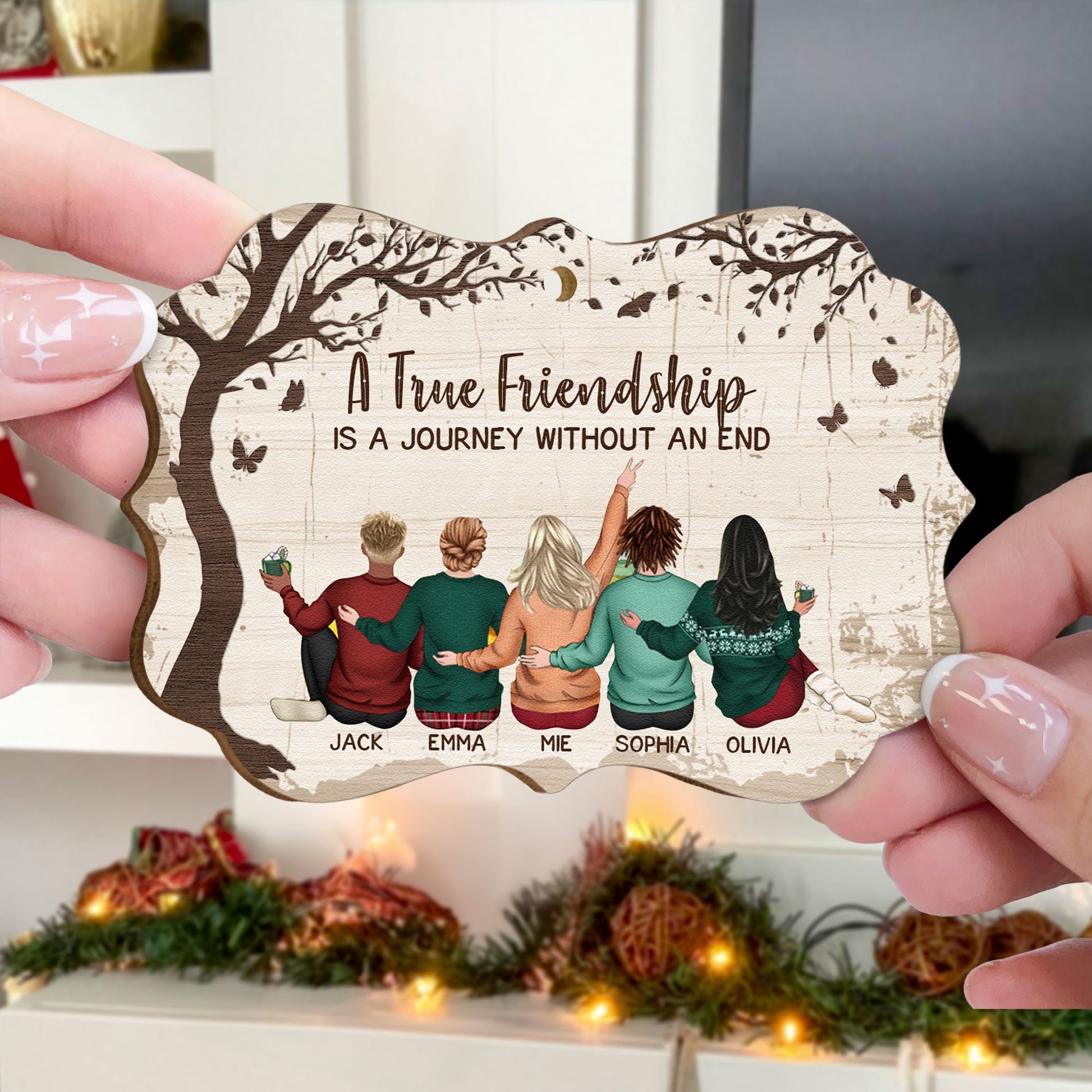 A True Friendship Is A Journey Without An End - Personalized Wooden Ornament
