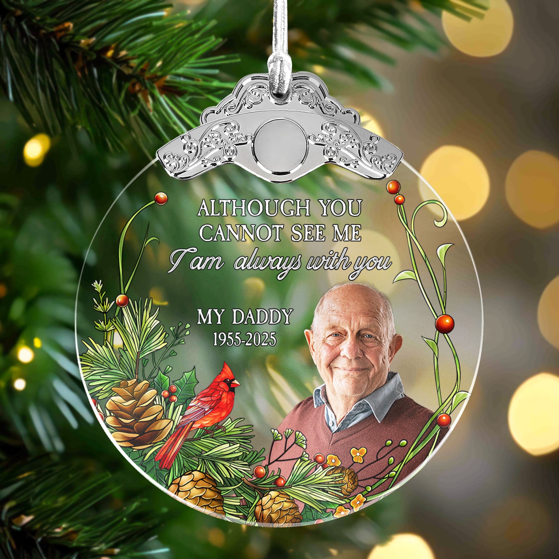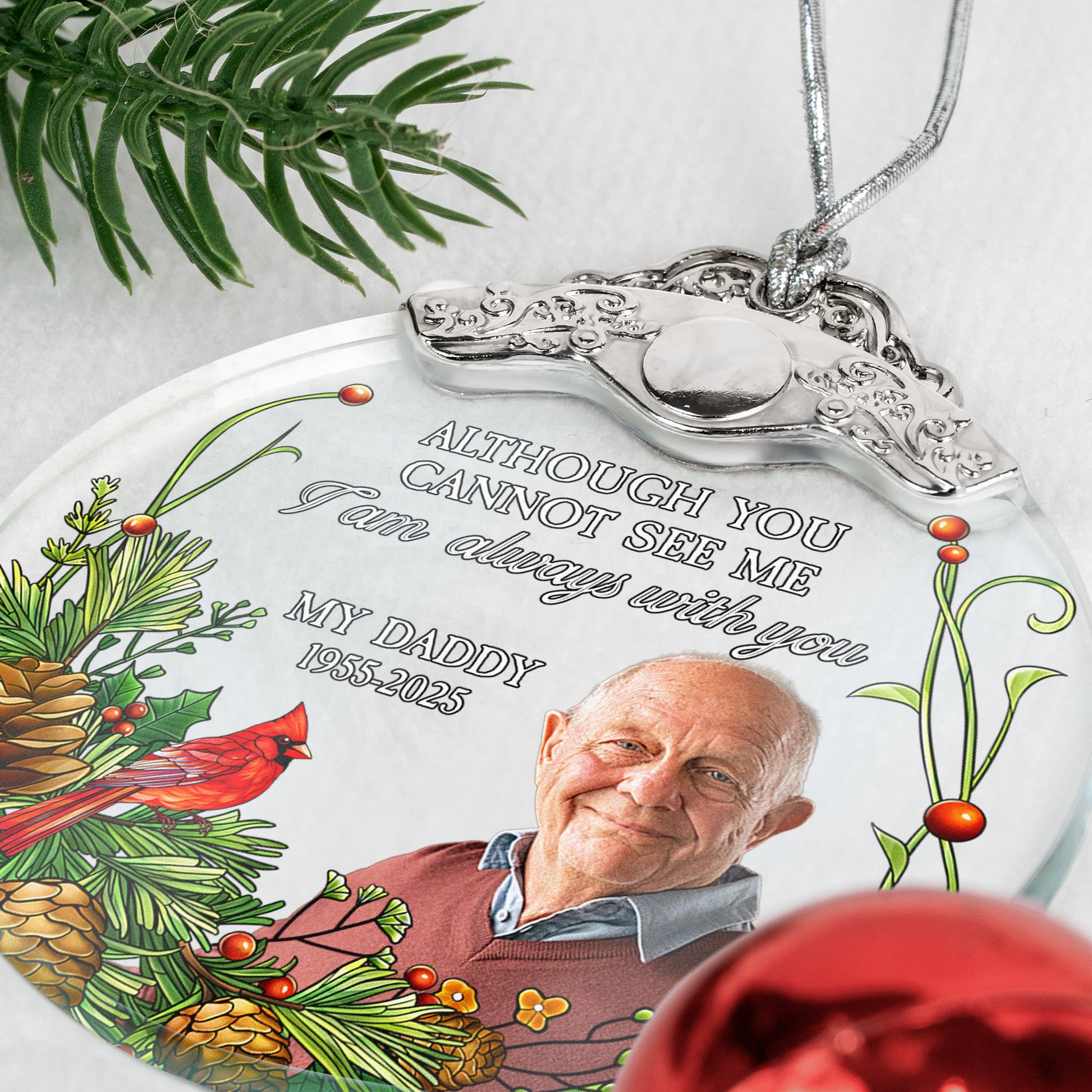 Although You Cannot See Me I'm Always With You - Personalized Glass Photo Ornament With Silver Cap