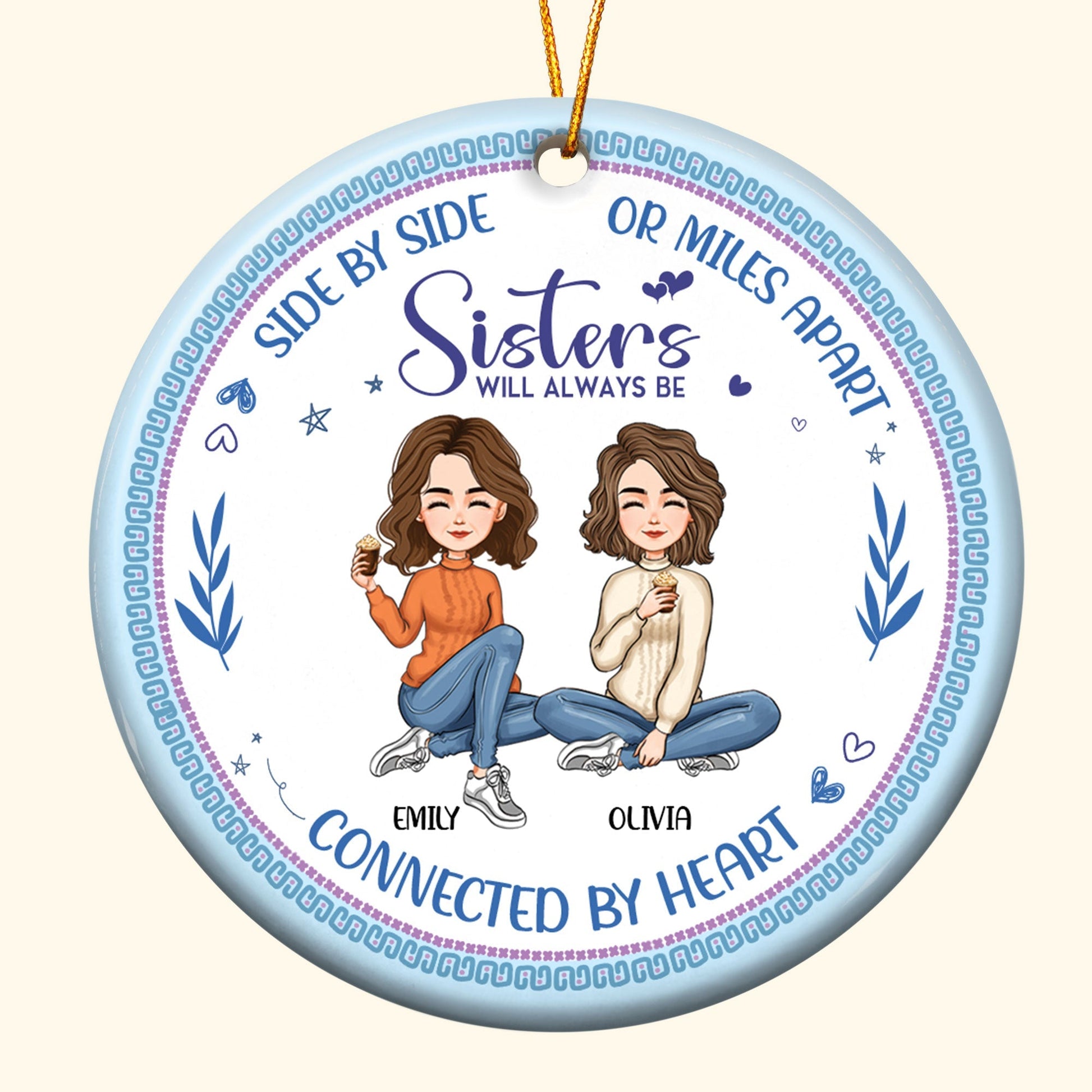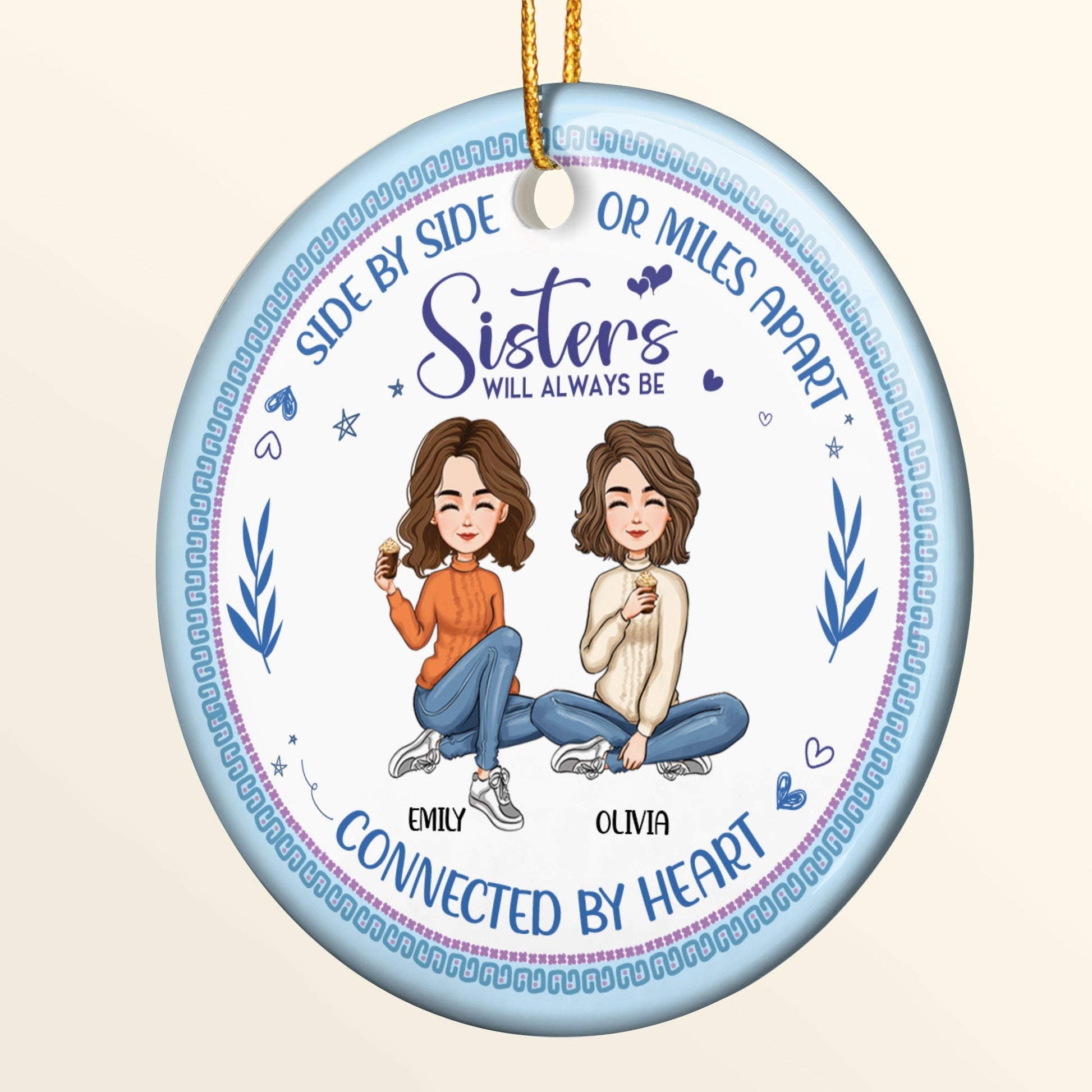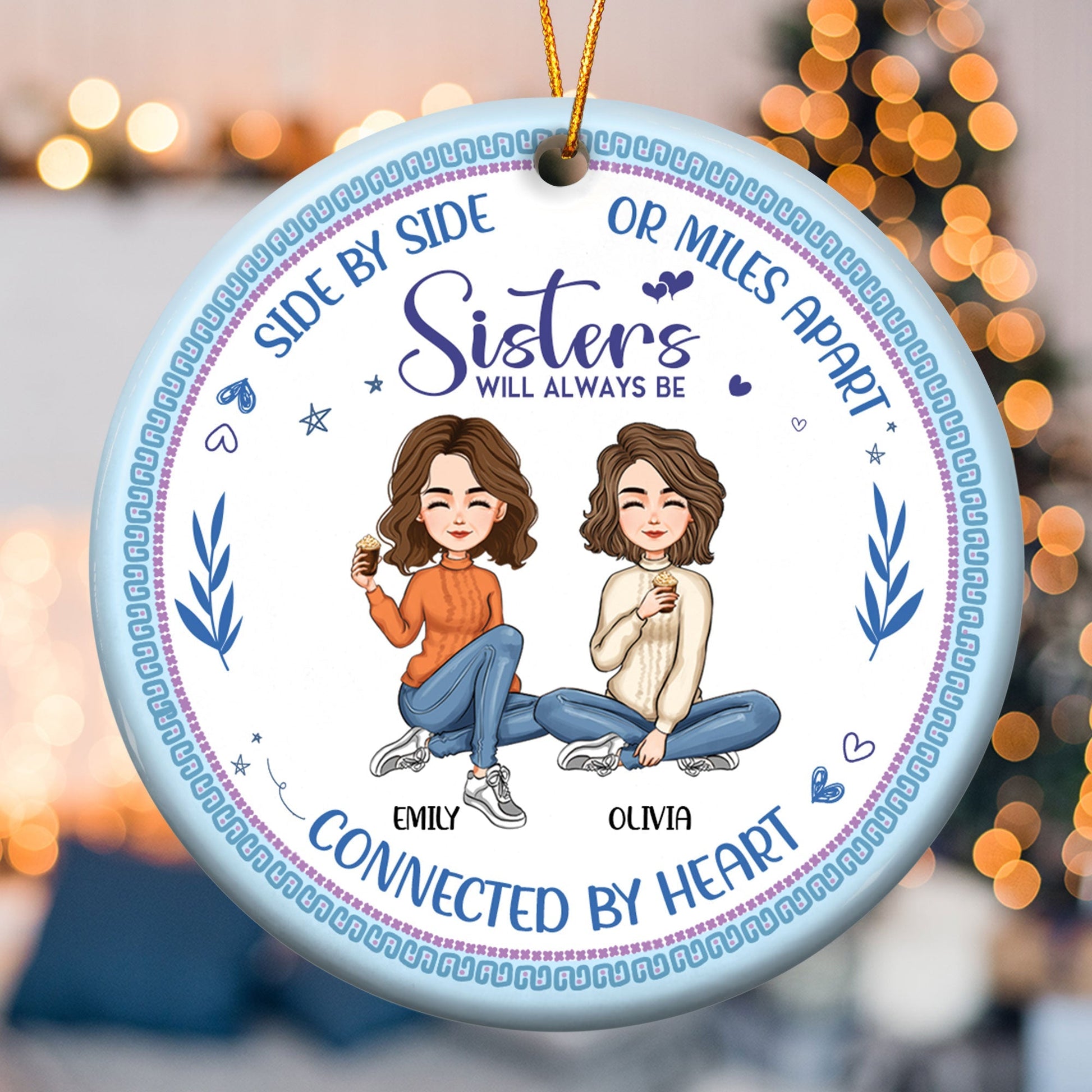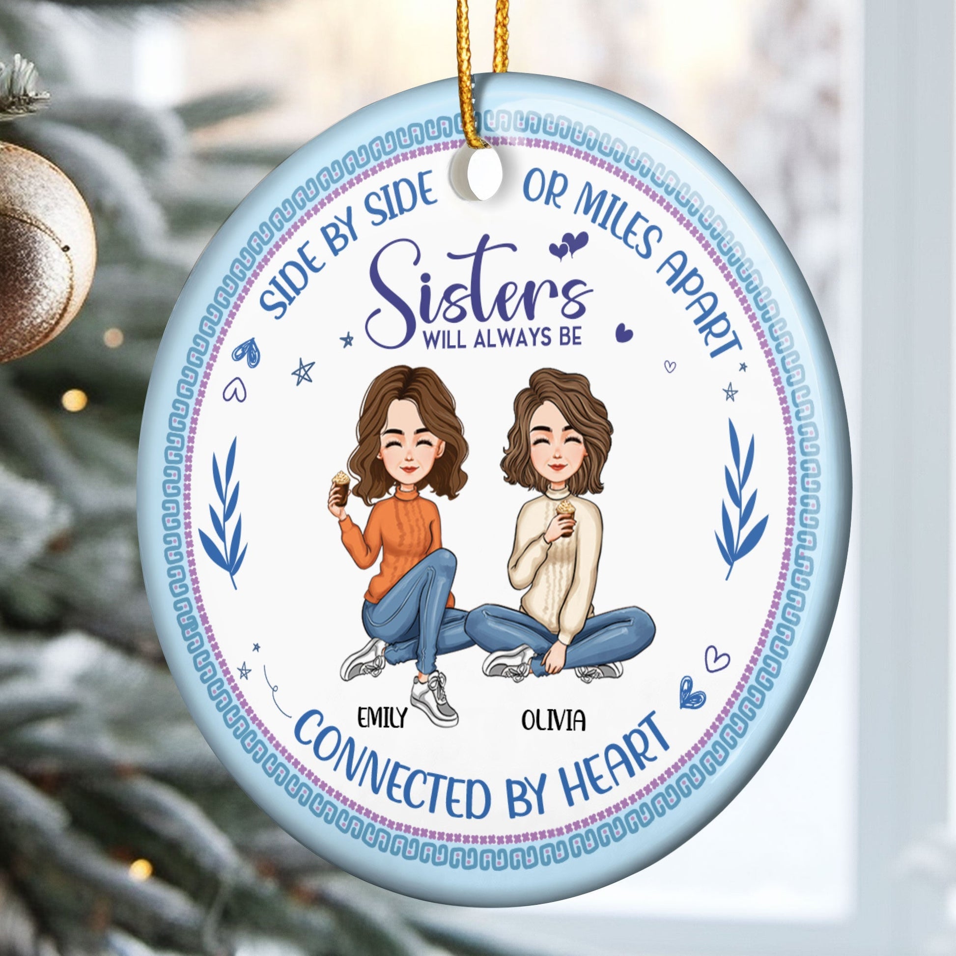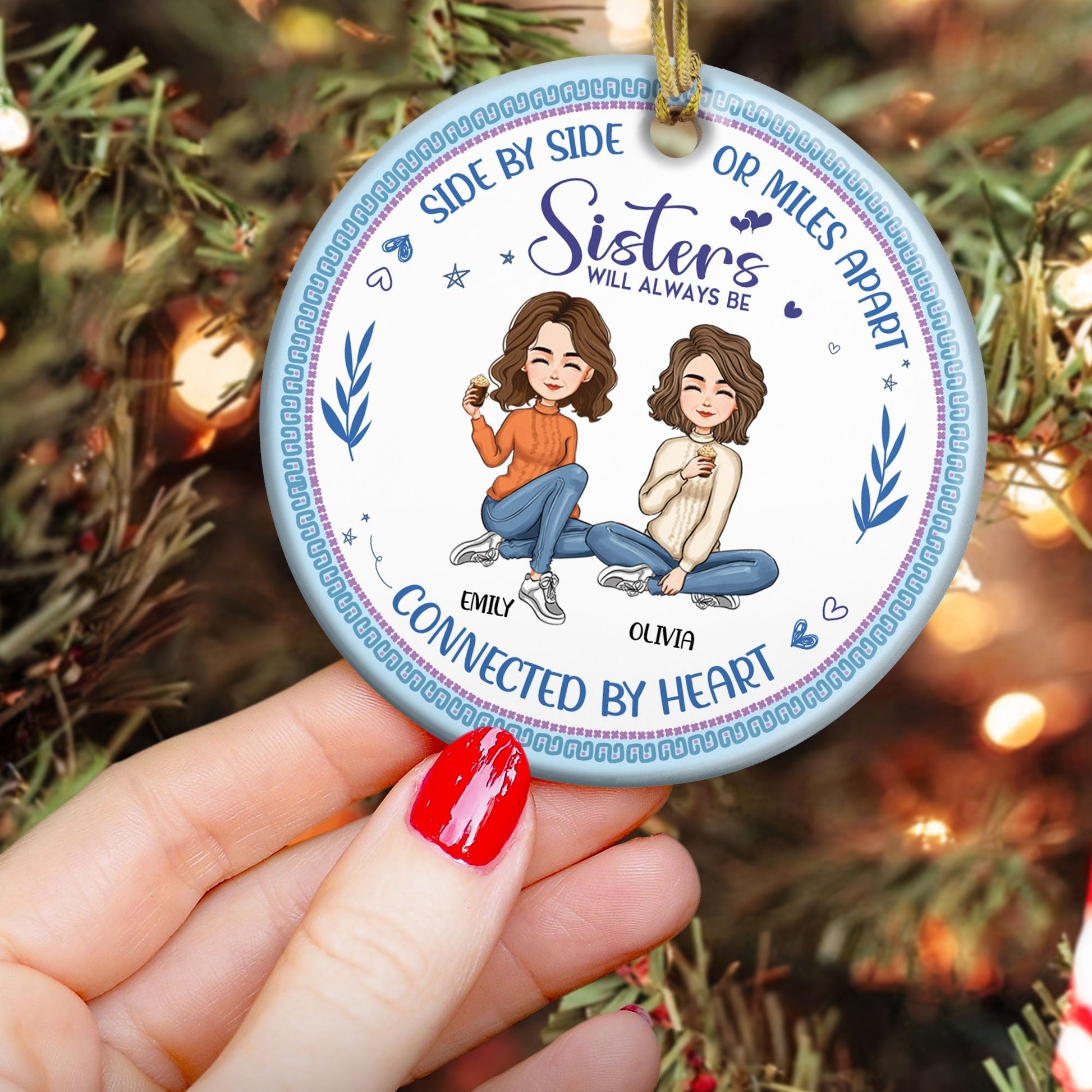 Always Be Connected By Heart - Personalized Ceramic Ornament
