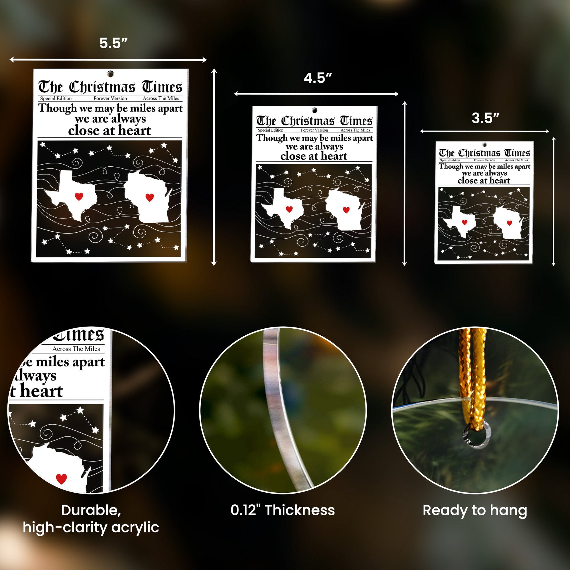 Always Close At Heart Long Distance Relationship Custom State To State - Personalized Acrylic Ornament