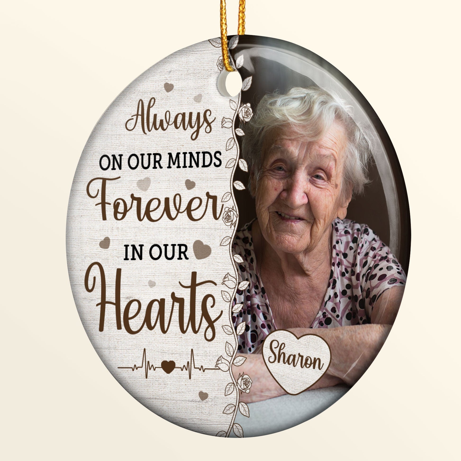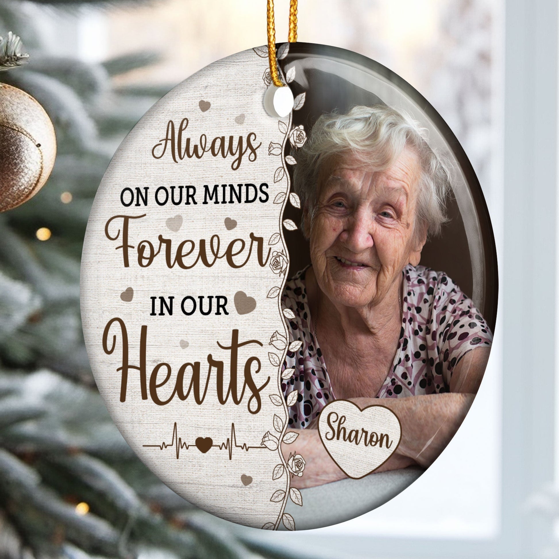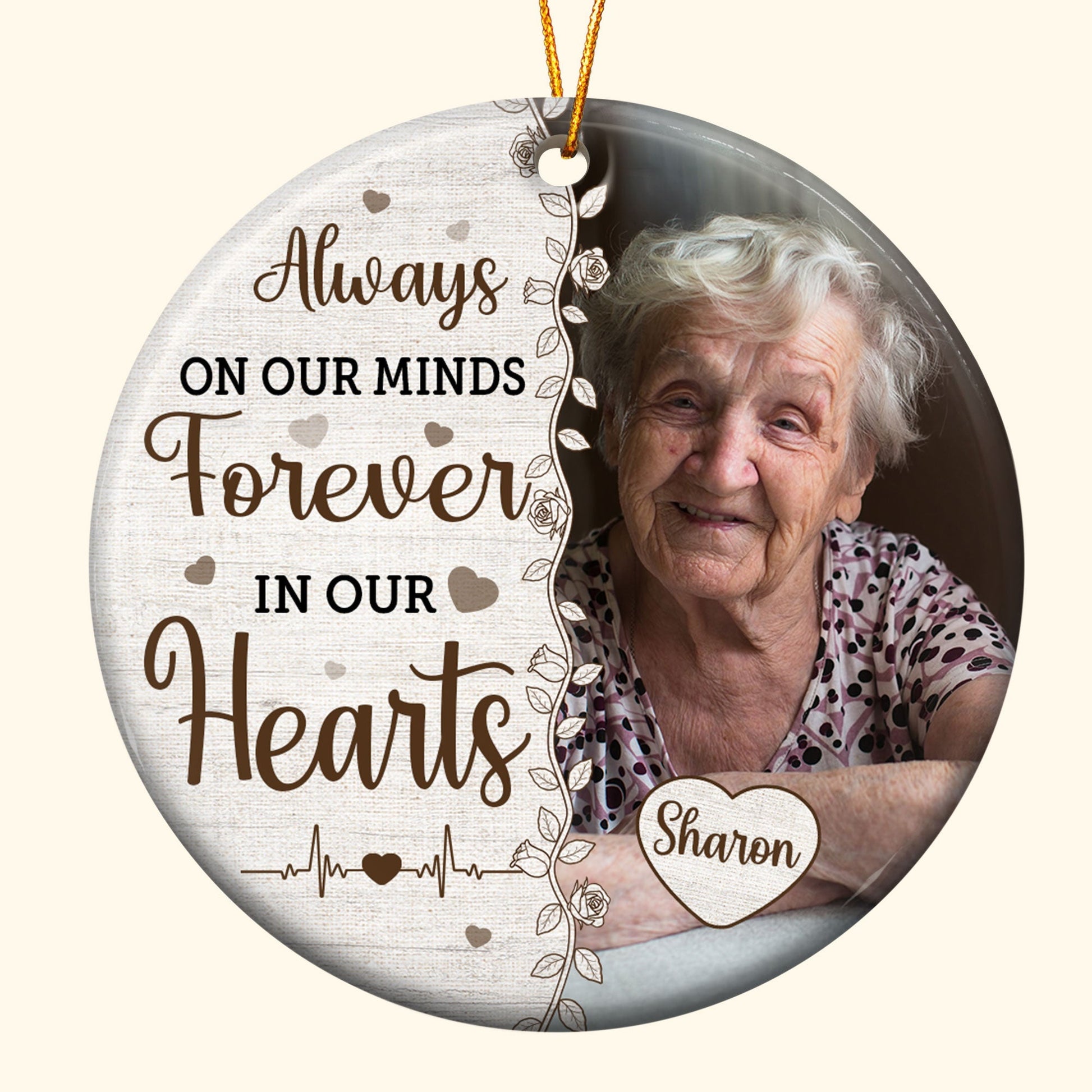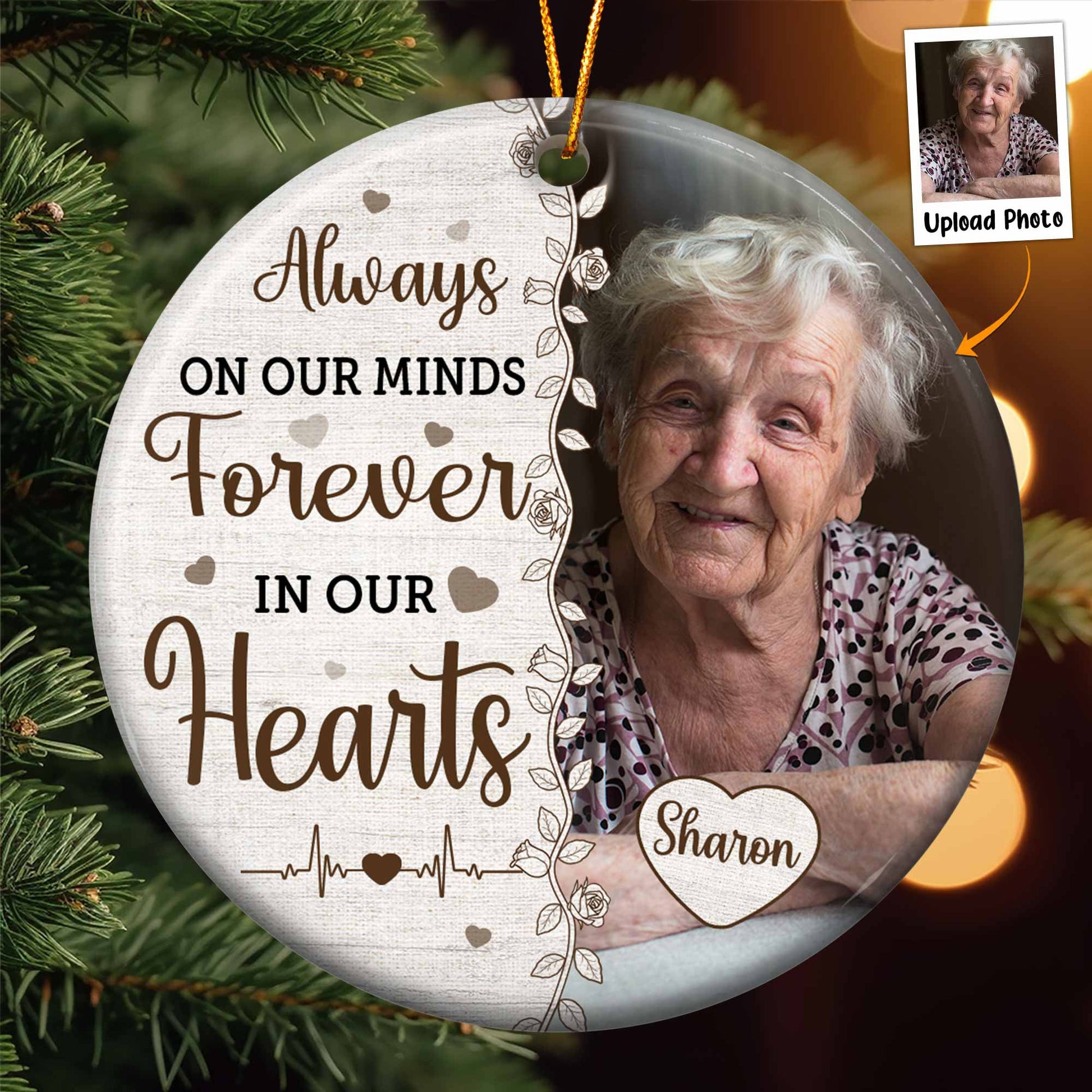 Always On Our Minds Forever In Our Hearts - Personalized Ceramic Photo Ornament