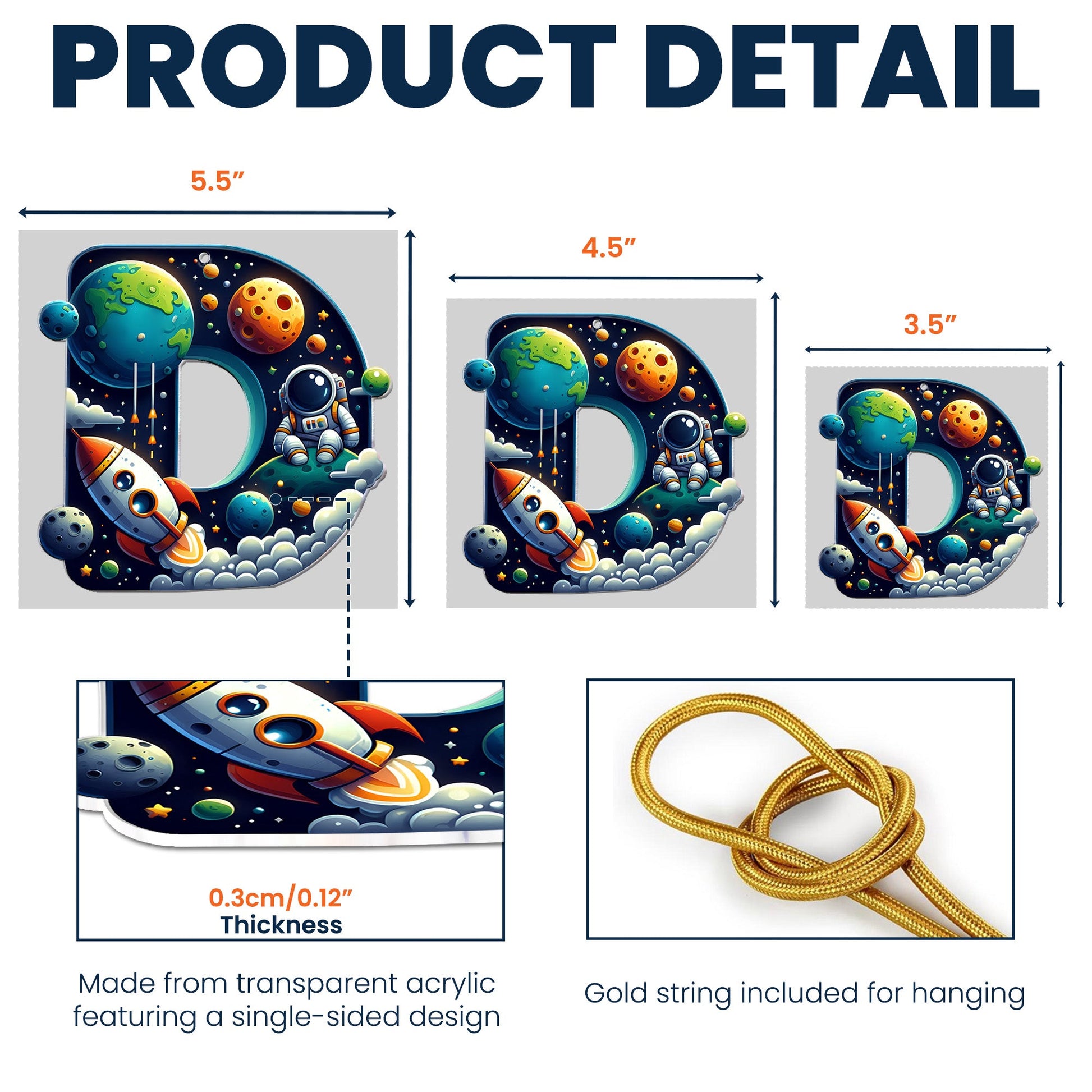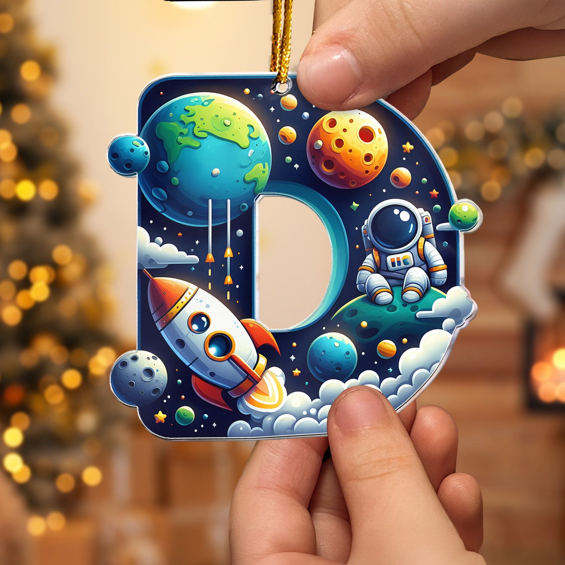 Introduce your little ones to the wonders of the universe with our Astronaut Space Theme Letters, the perfect custom shaped acrylic ornament for your Christmas tree. The decoration is designed specifically in thoughts of kids and their love for outer space. Imagine the joy on their faces as they find this personalized gift under the Christmas tree, signifying their name and their passion. Ideal for Christmas, it could also be a perfect gift for birthdays or any occasion to show your love and appreciation to your child.