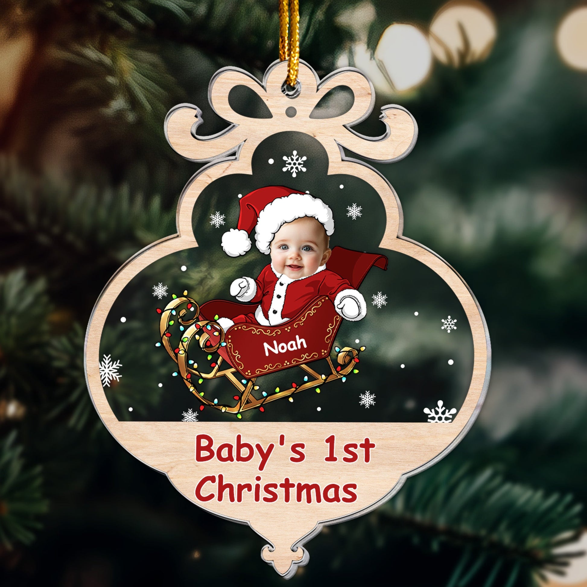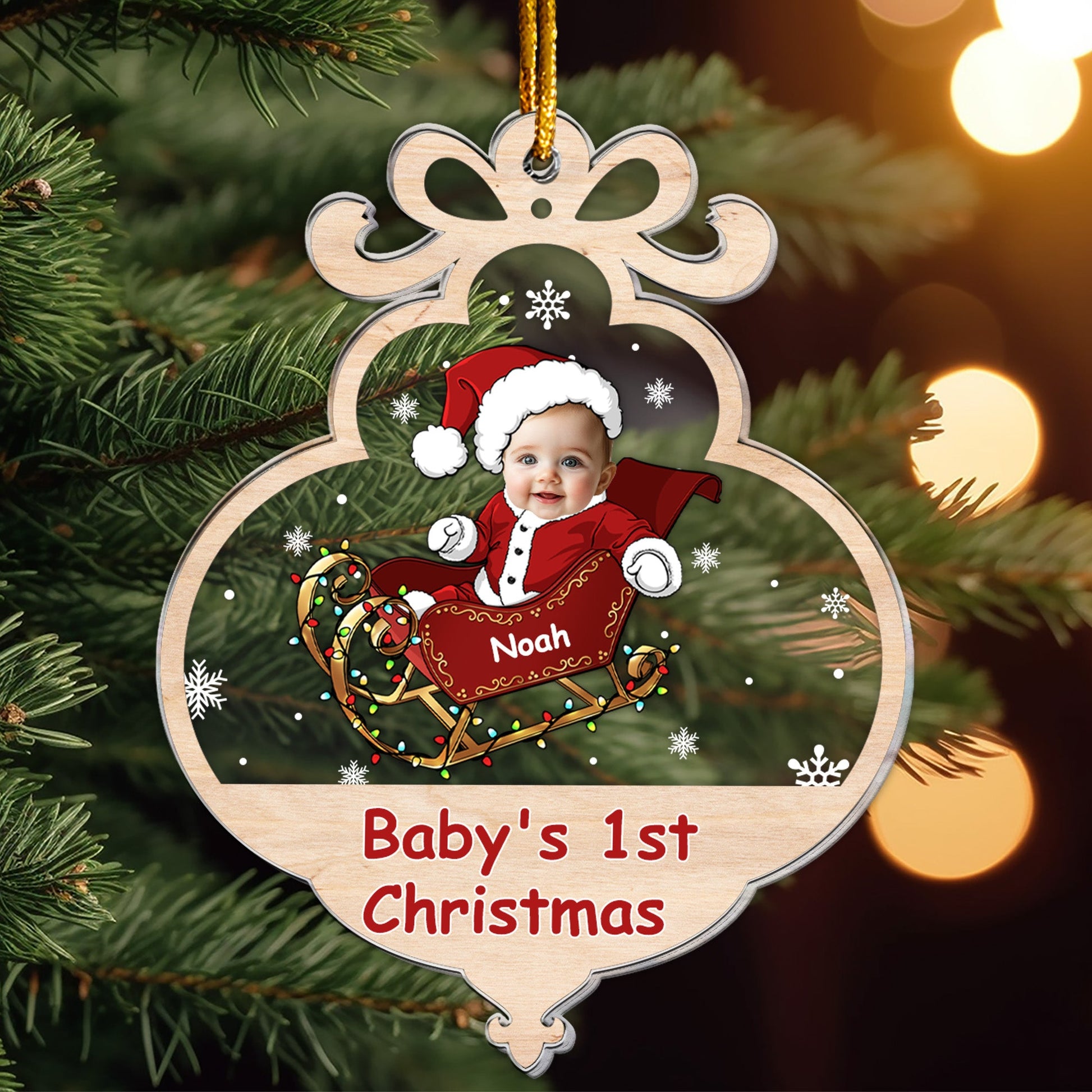 Baby First Christmas With Adorable Santa Sleigh - Personalized Acrylic Photo Ornament