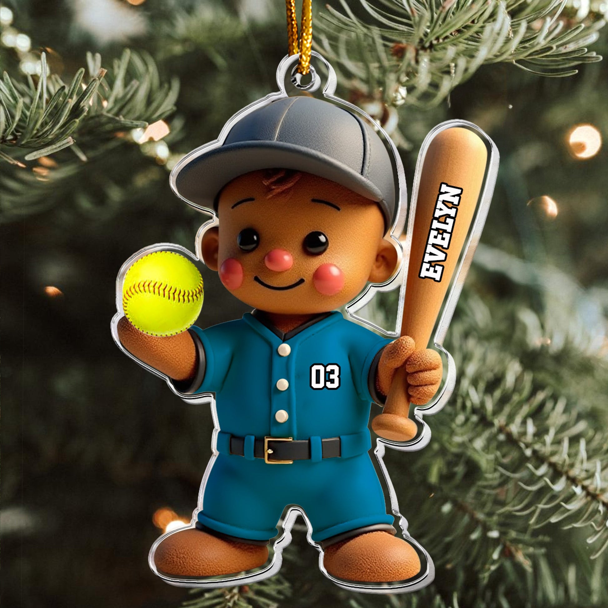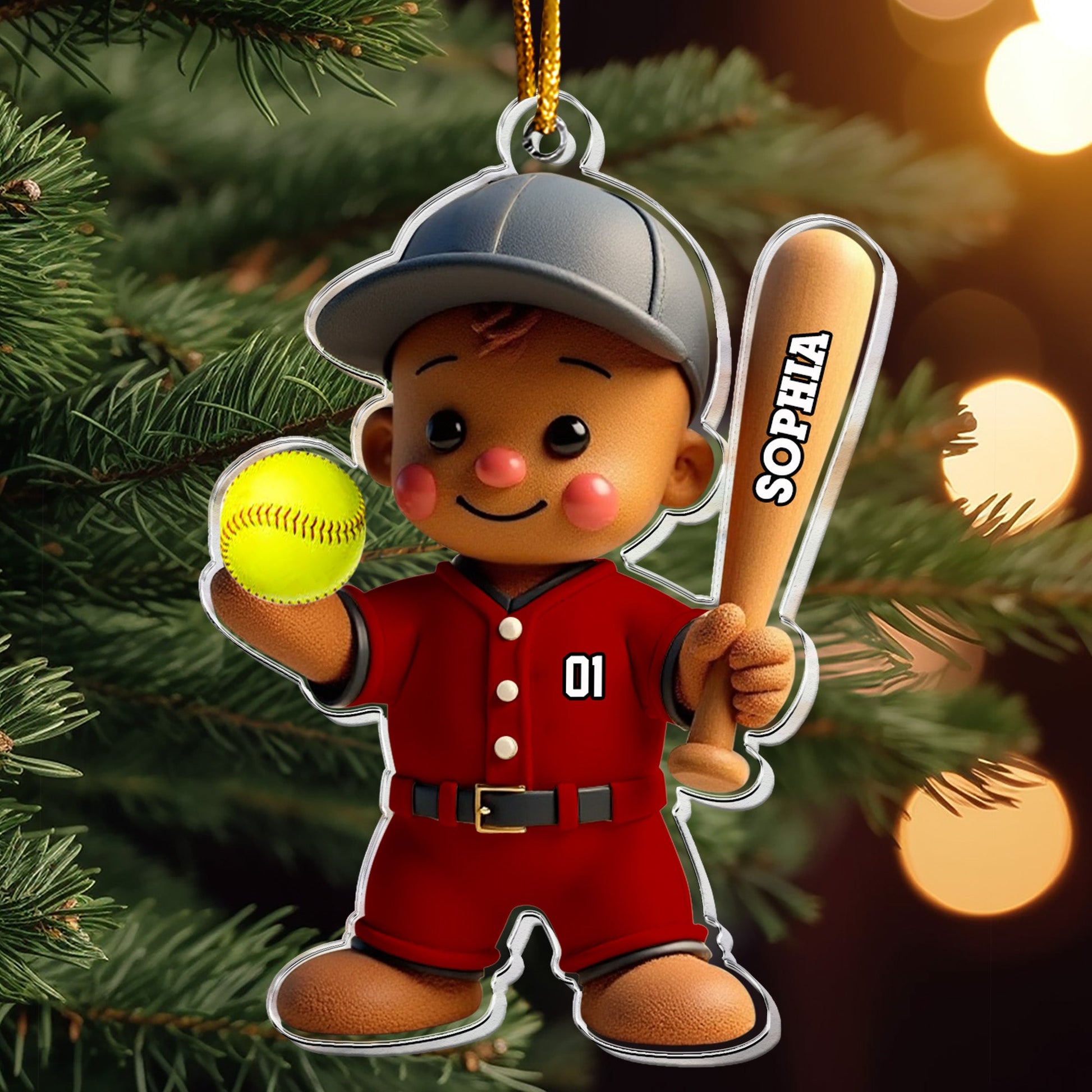 Baseball Gingerbread Christmas Ornament Gift For Kid, Baseball Lover - Personalized Acrylic Ornament