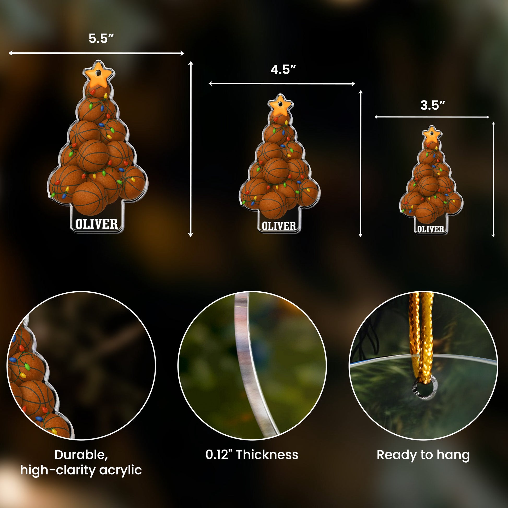 Show some love to your basketball enthusiast friends or family with our custom shaped Acrylic Ornament - the Basketball Christmas Tree. It's a wonderful option that bonds basketball fandom with holiday celebrations, making it a significant addition to your Christmas décor. Perfect for basketball games, birthdays, Christmas, anniversaries, or any occasion, this ornament radiates passion for the sport while adding a festive touch to your tree.