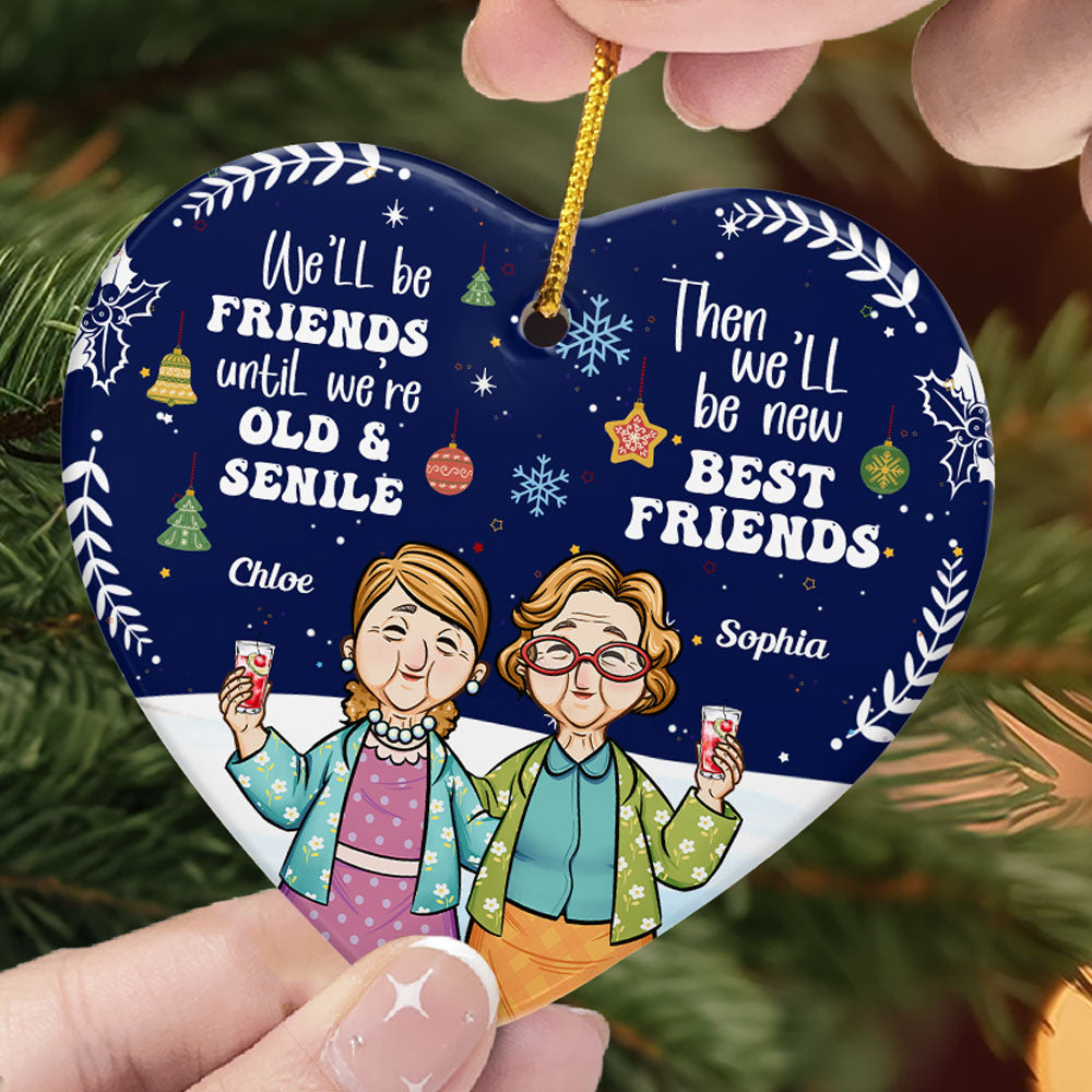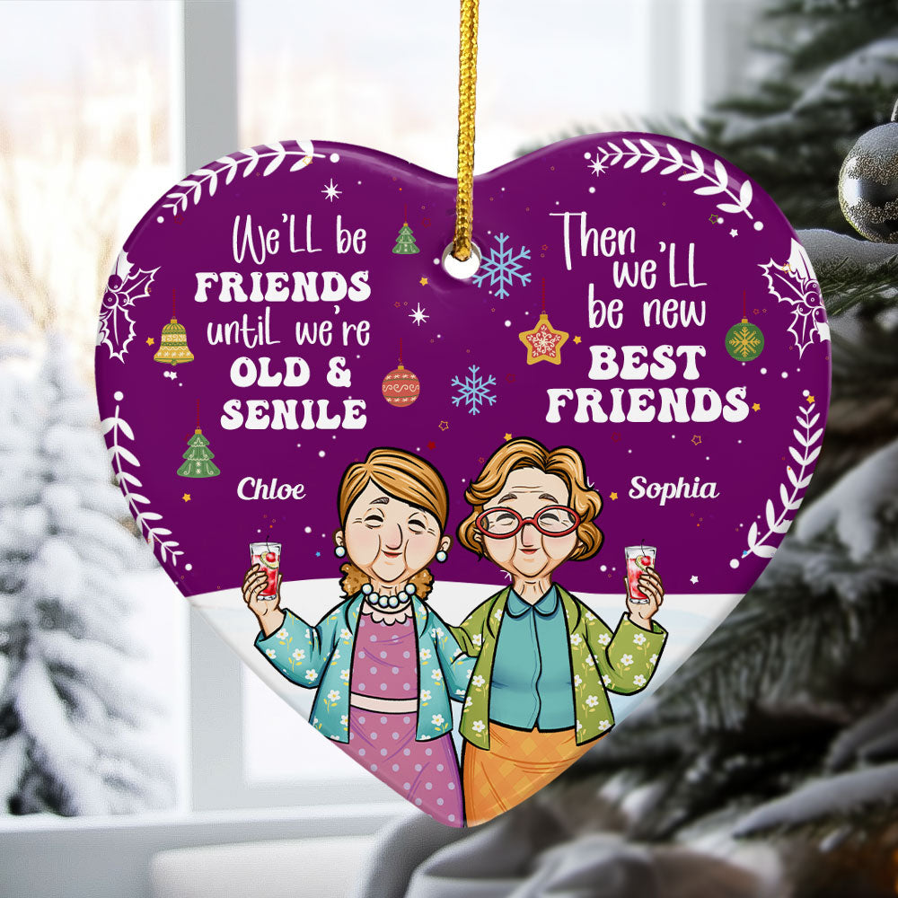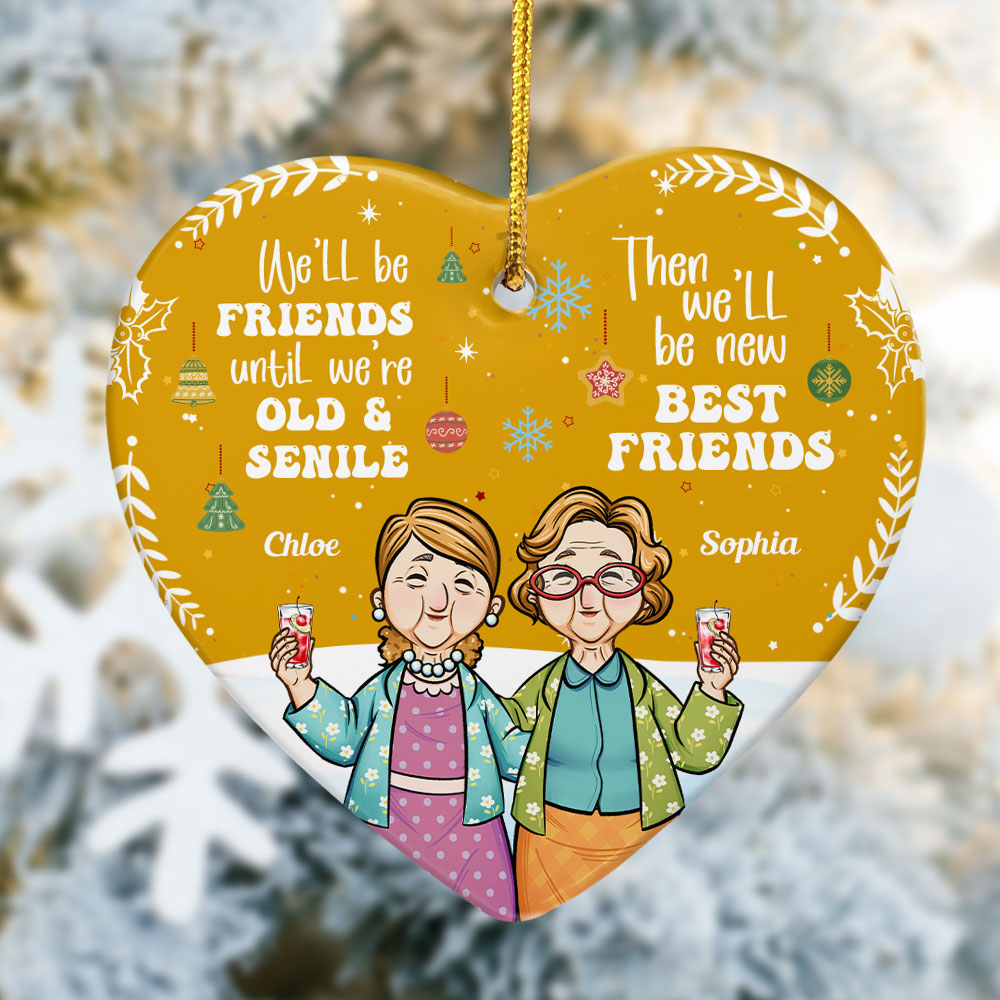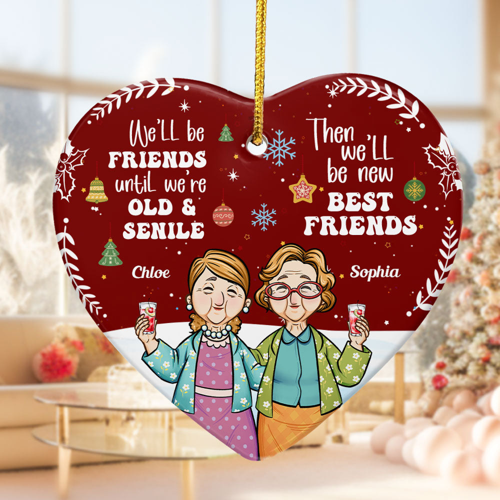 Be Friends 'Till We're Senile - Personalized Heart Shaped Ceramic Ornament