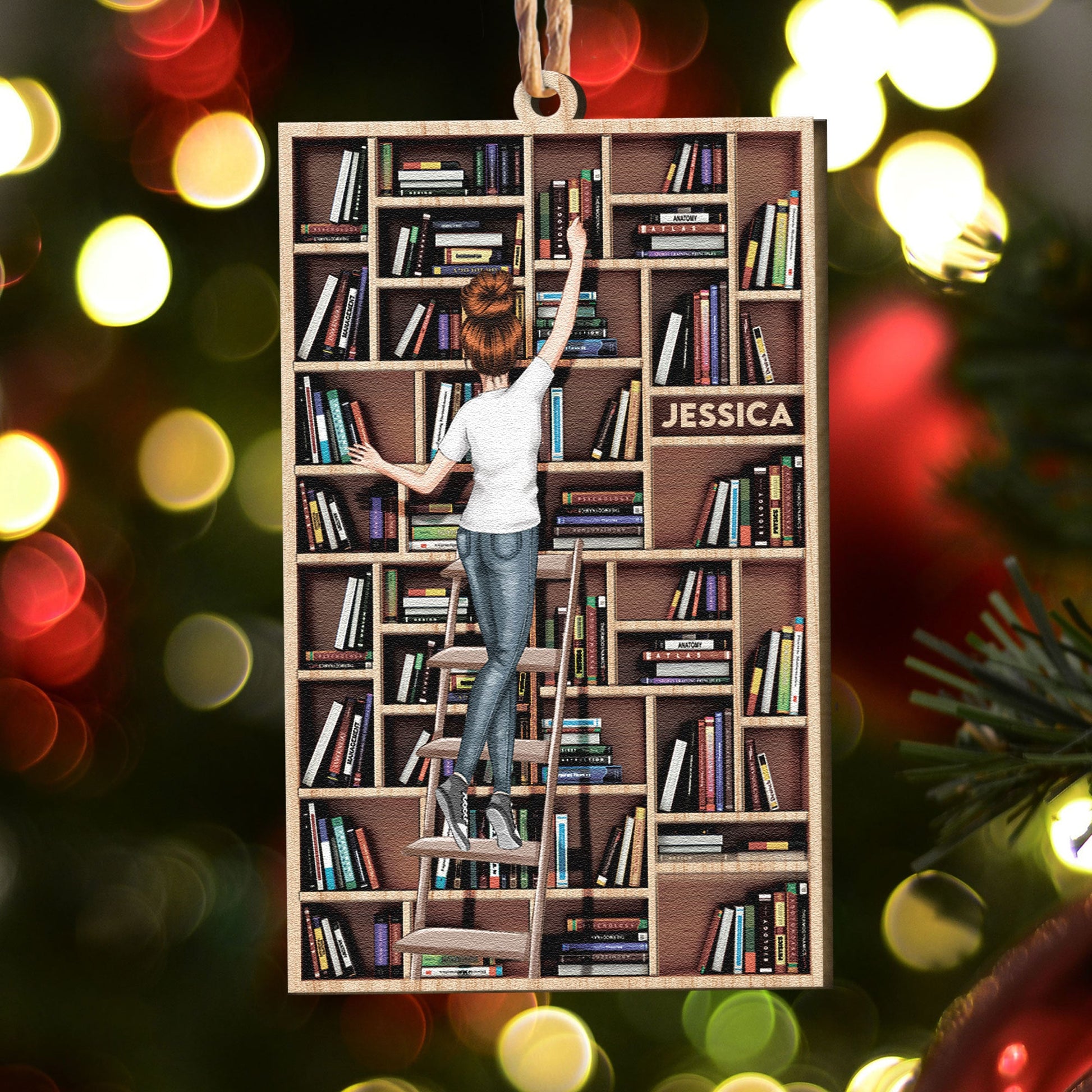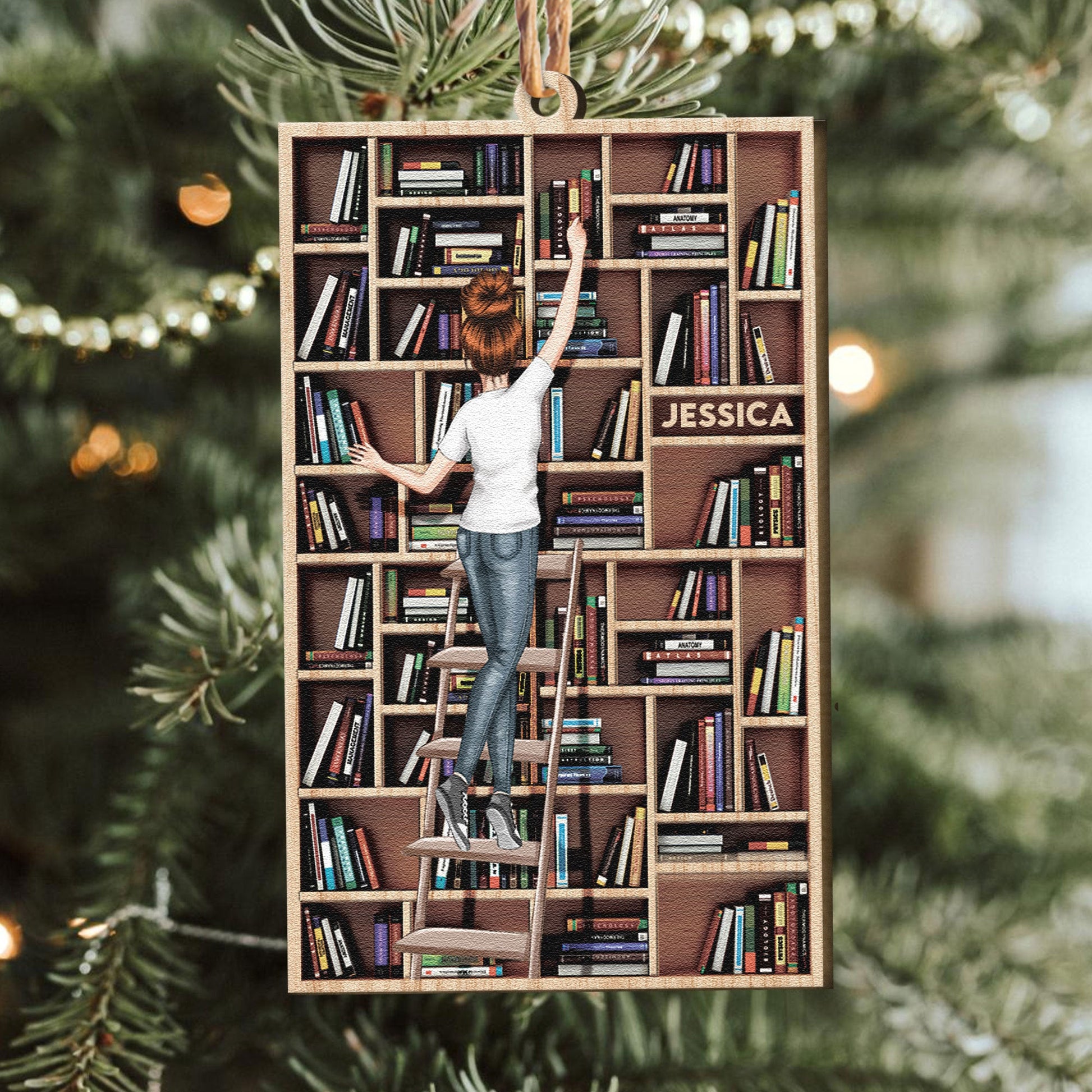 Introducing the Girl Under Book Christmas Tree - Personalized Book Xmas Tree Shaped Acrylic Ornament – a unique Xmas delight. Crafted in wooden, this ornament portrays a girl engrossed in a bookcase, celebrating the magic of reading during the festive season. Customize your appearance and name to add a personal touch to this bookcase-shaped ornament. It's an ideal gift for book lovers, fitting for daughters, moms, friends, sisters, daughter-in-law, coworkers, and even your boss. This ornament captures the essence of women who adore books, making it a thoughtful and cherished present. Also available as a book-themed keychain, this customized gift embodies the joy of reading, adding a literary charm to your holiday decorations.
