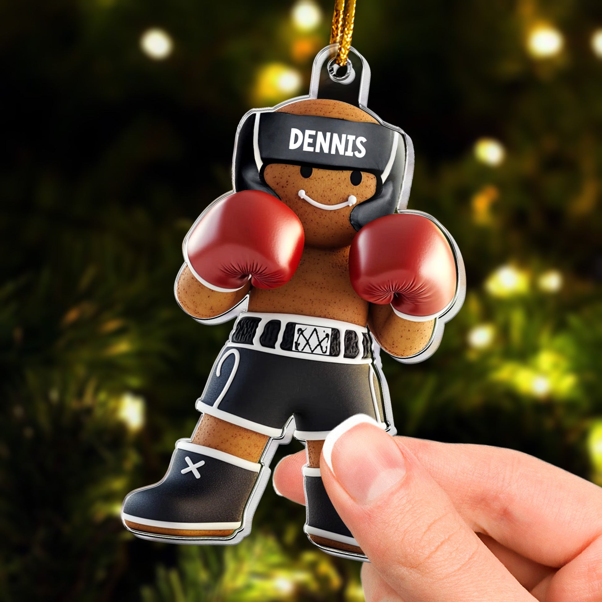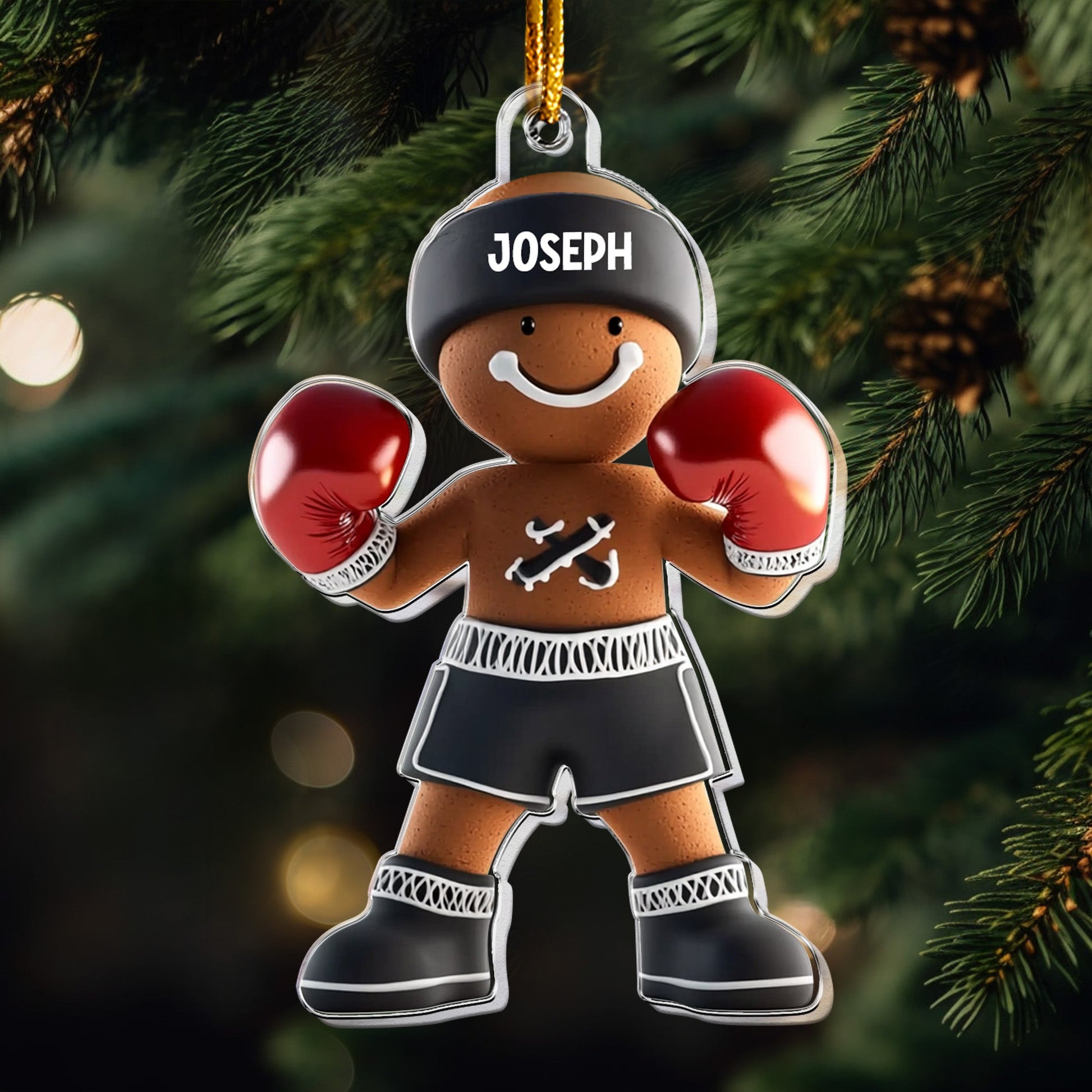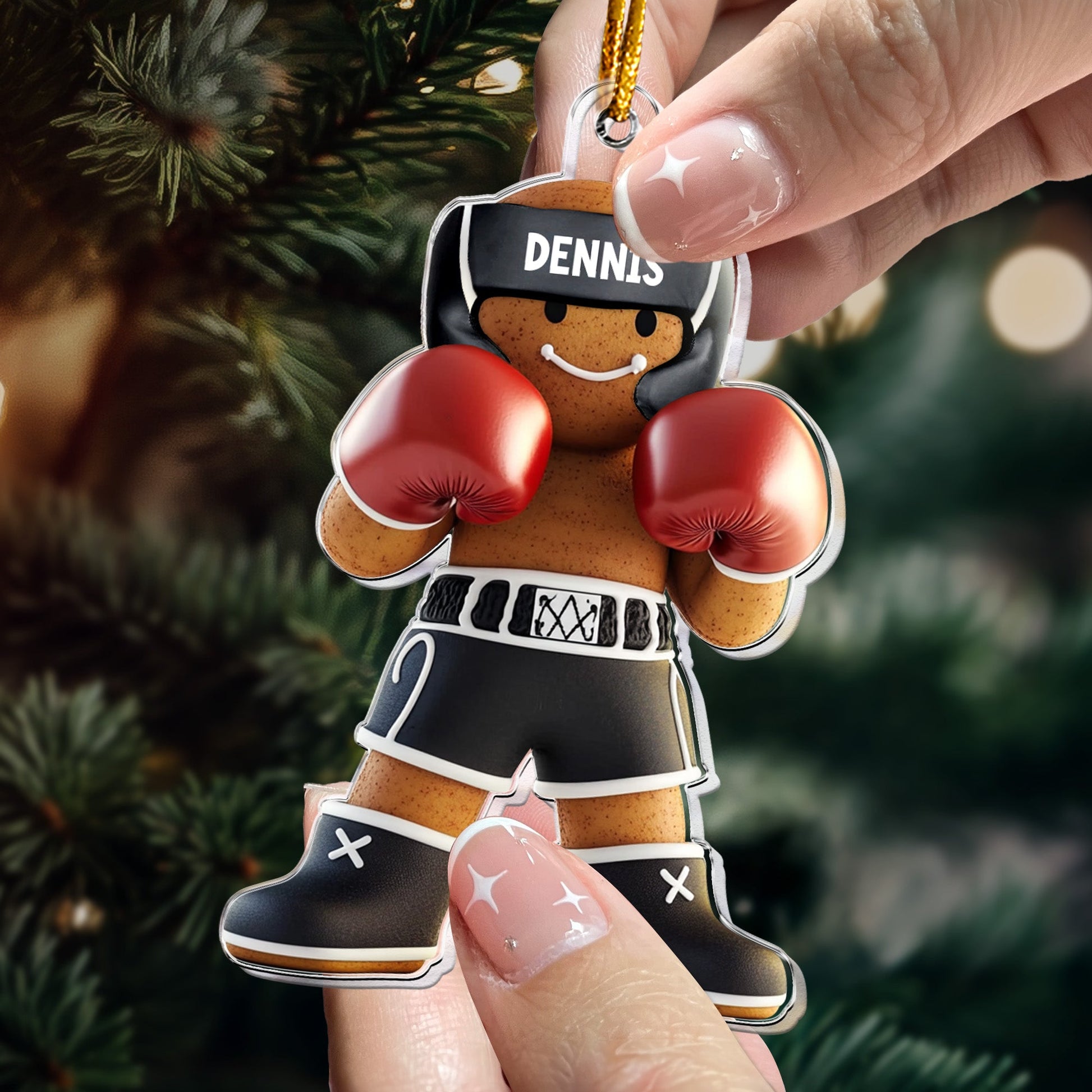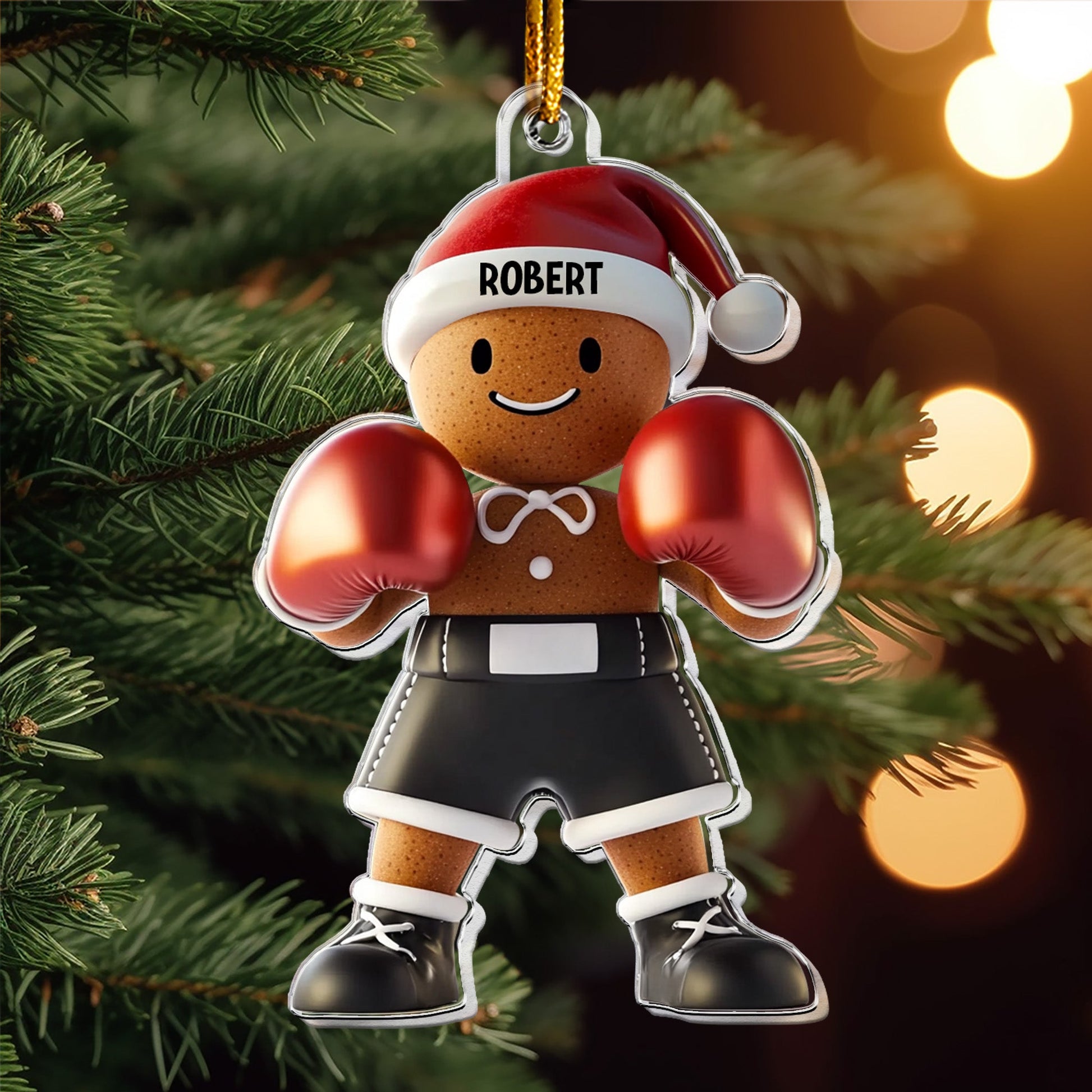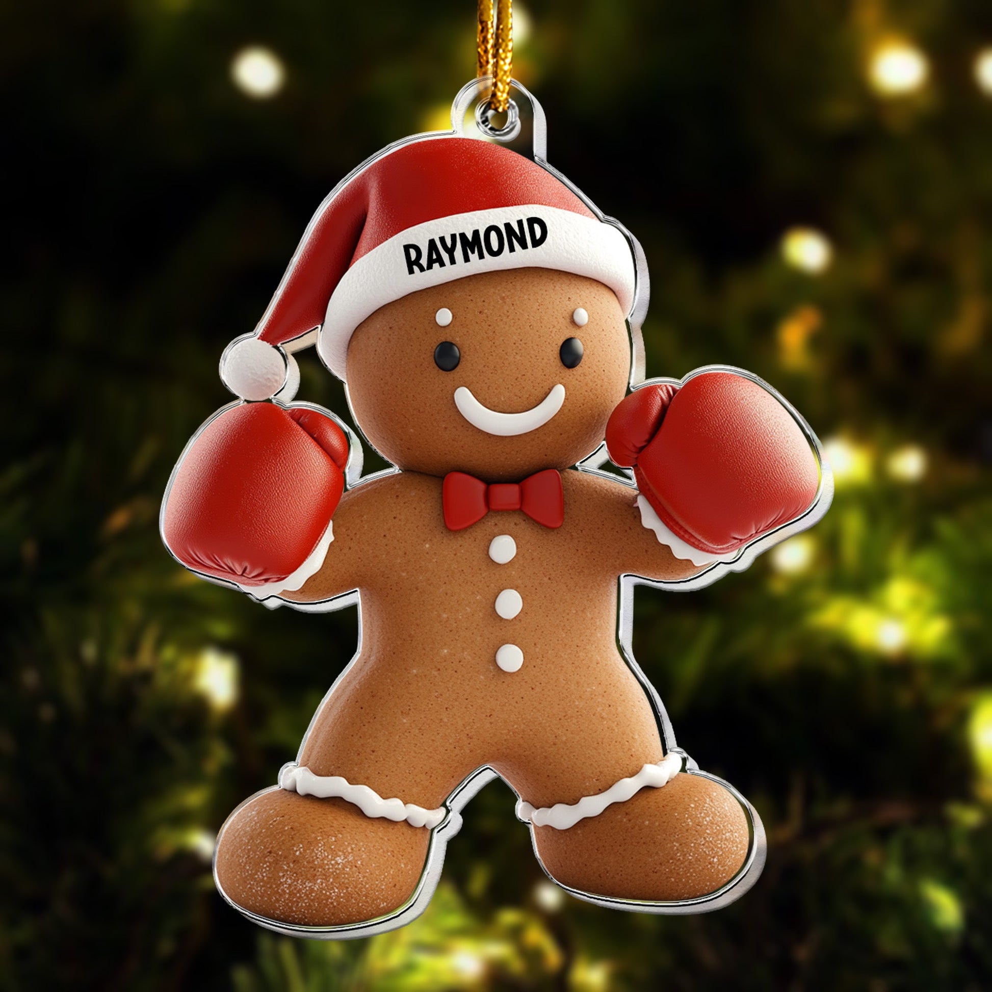 Boxing Gingerbread Man Christmas Ornament - Personalized Acrylic Ornament