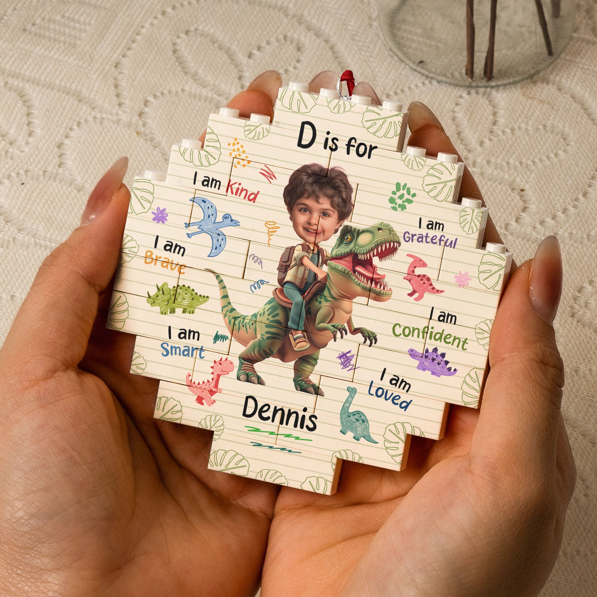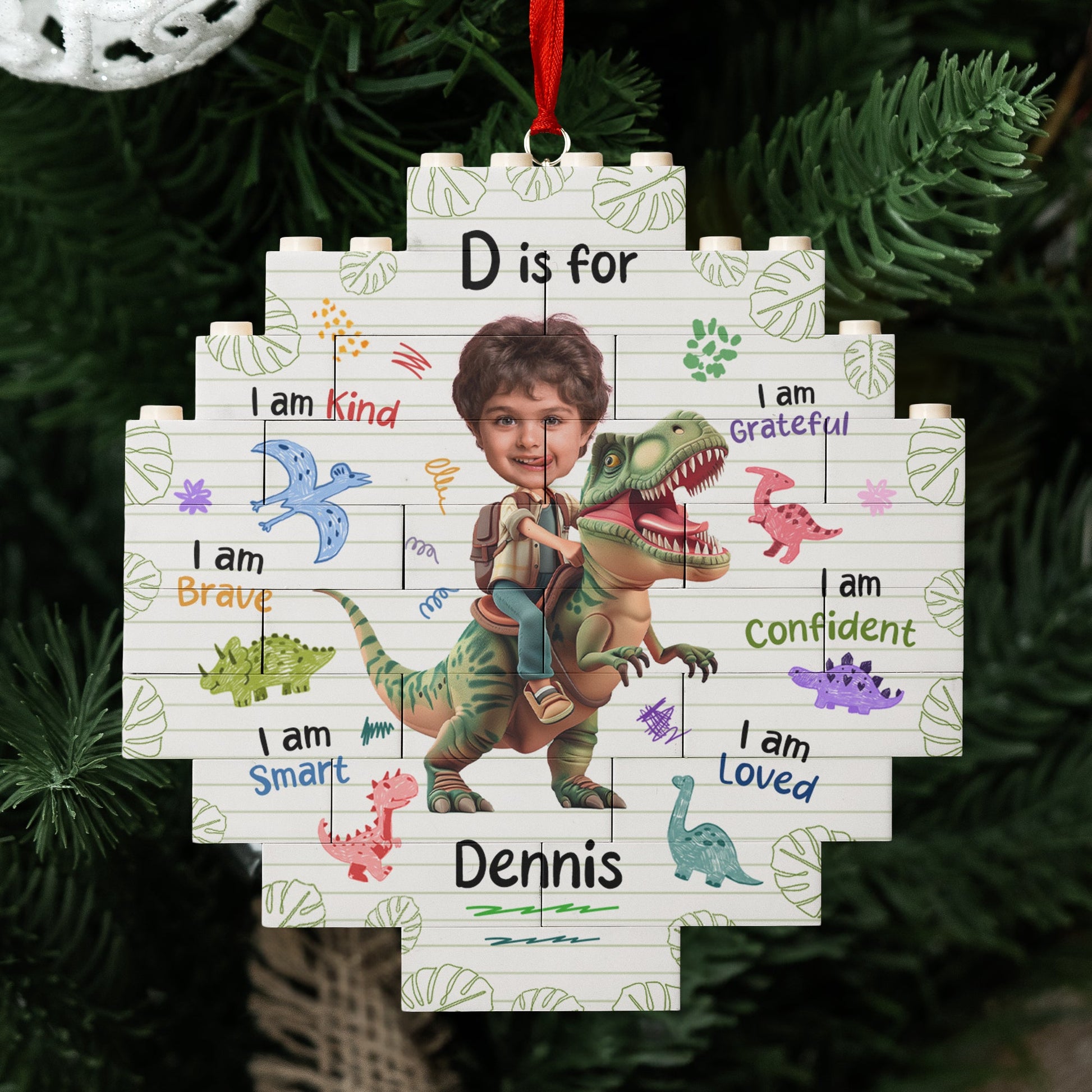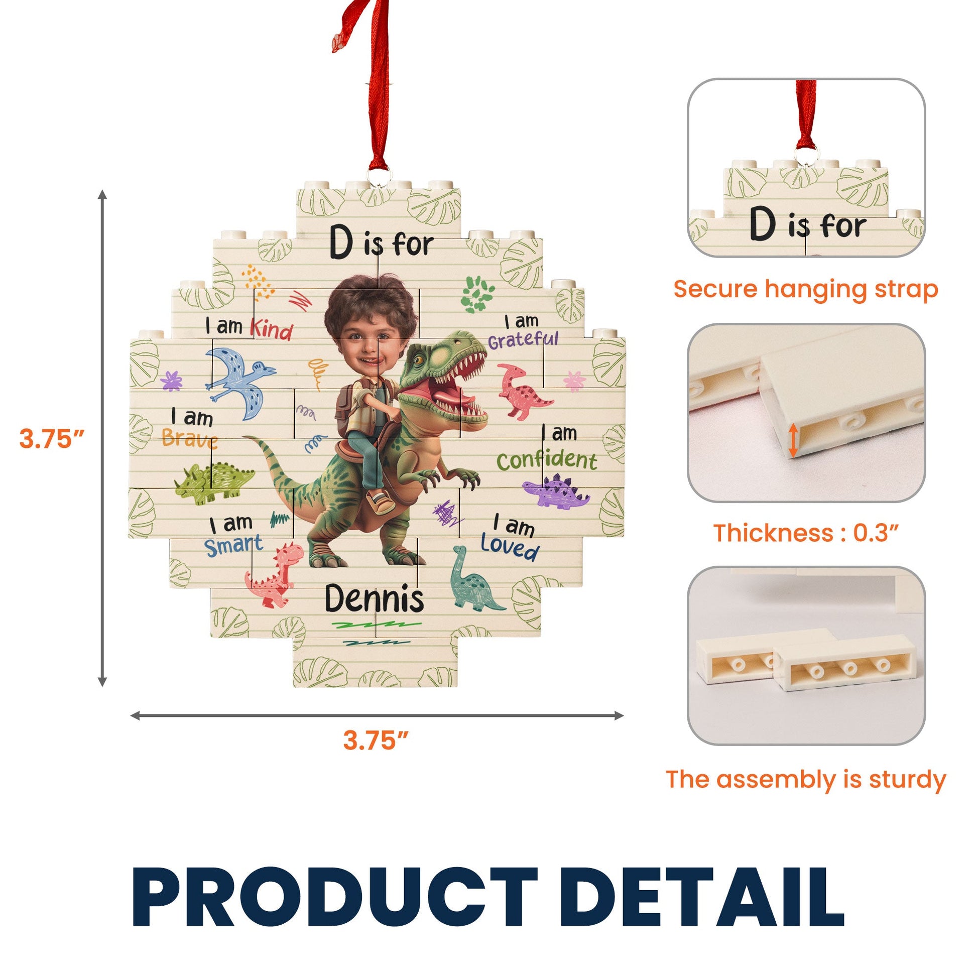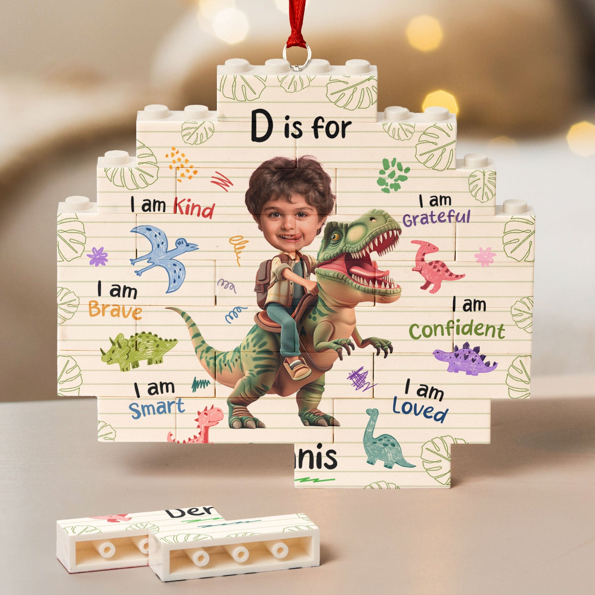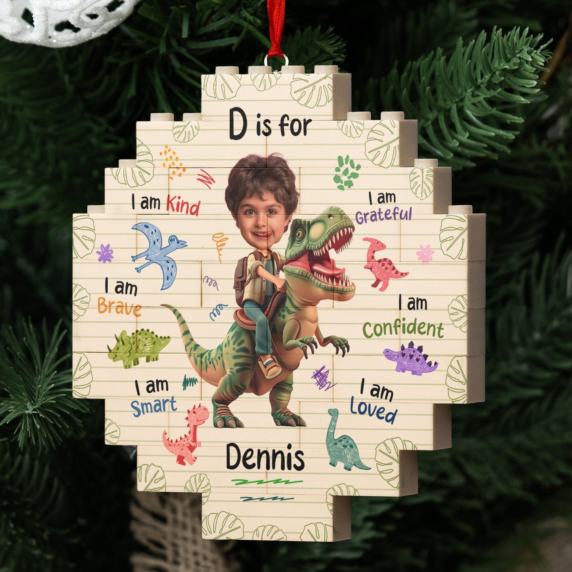 Boy Riding Dinosaur - Christmas Gifts For Kids - Custom Buildable Christmas Photo Ornament
