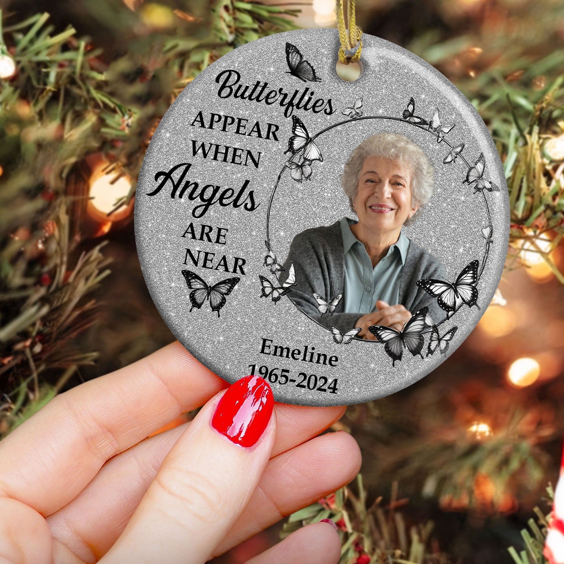Butterflies Appear When Angels Are Near - Personalized Ceramic Photo Ornament