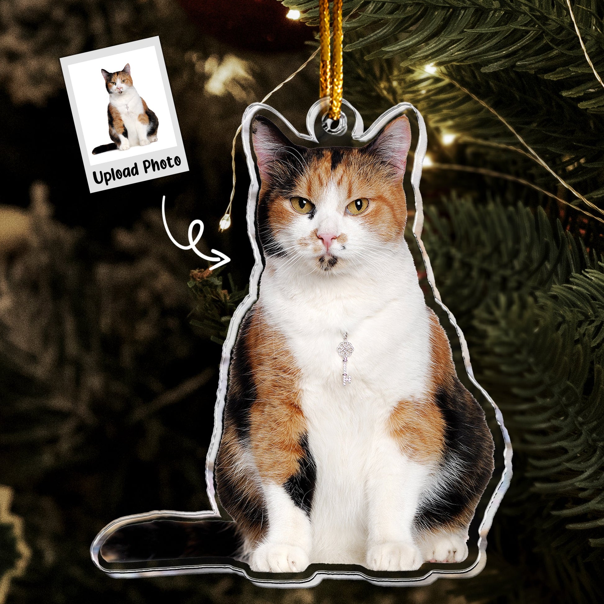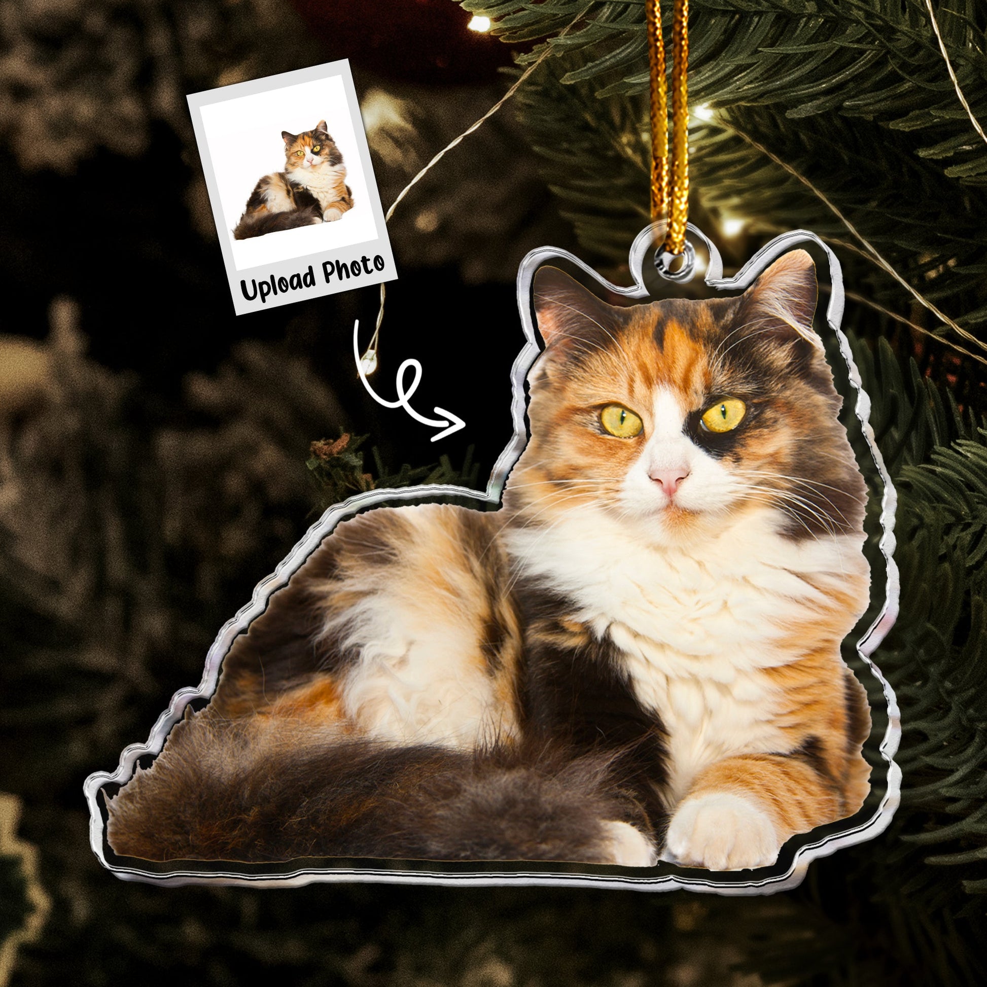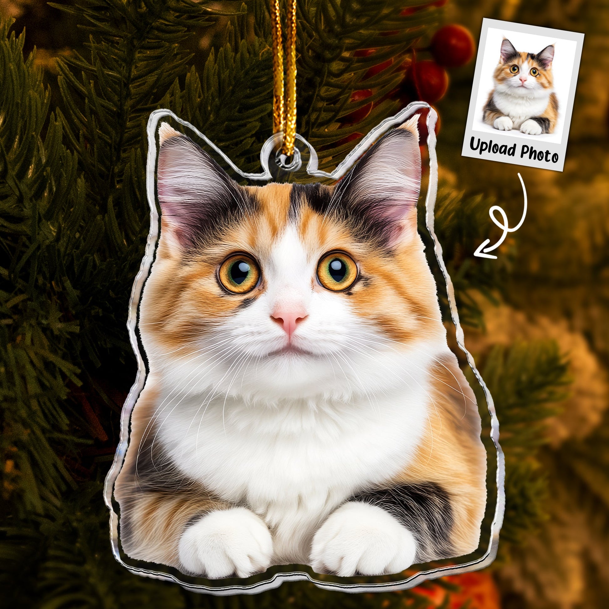 Calico Cat Ornament - Christmas Ornament Calico - Personalized Acrylic Photo Ornament