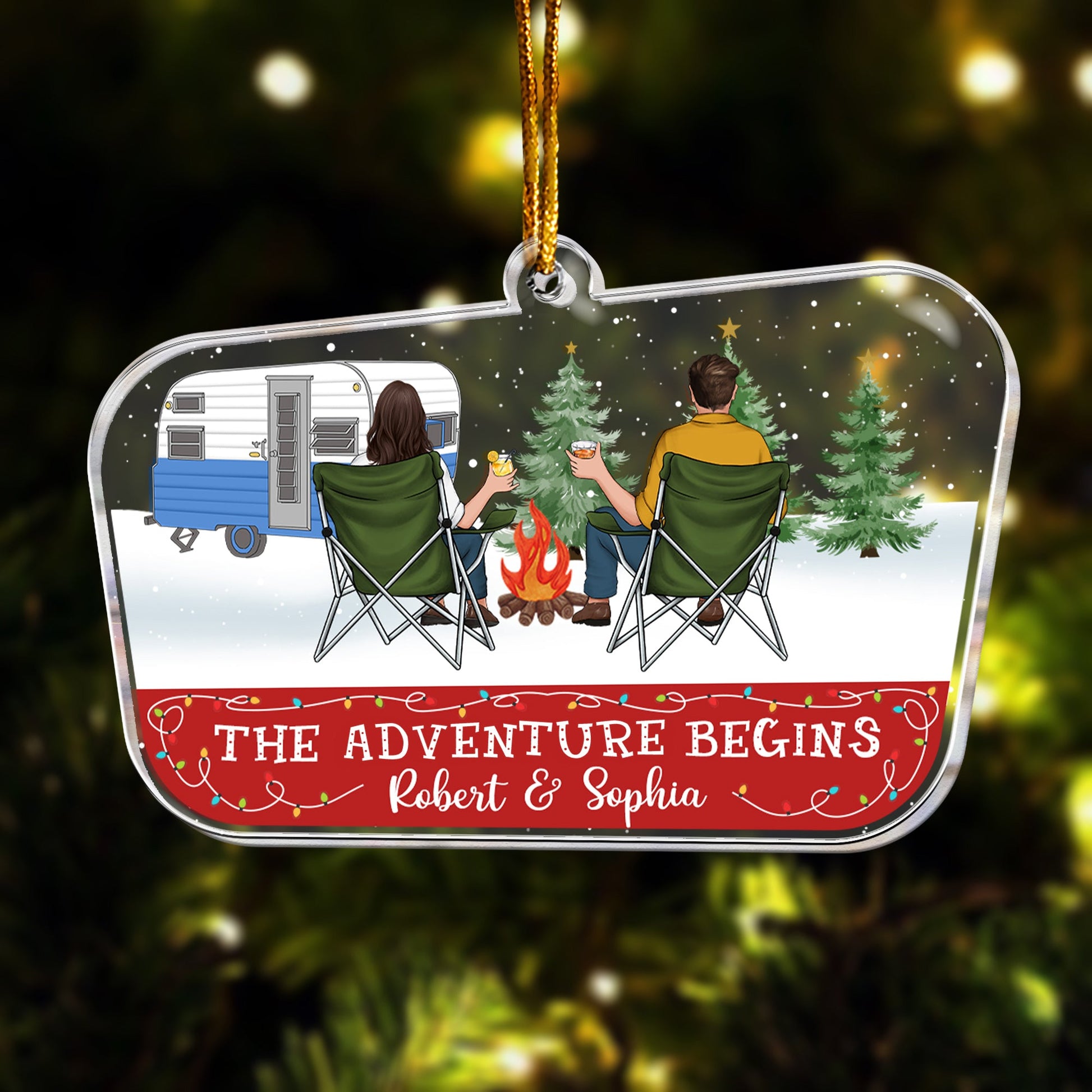 Camping Couple The Adventure Begins - Personalized Acrylic Ornament