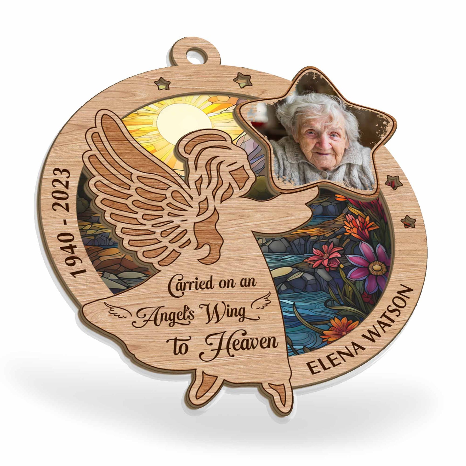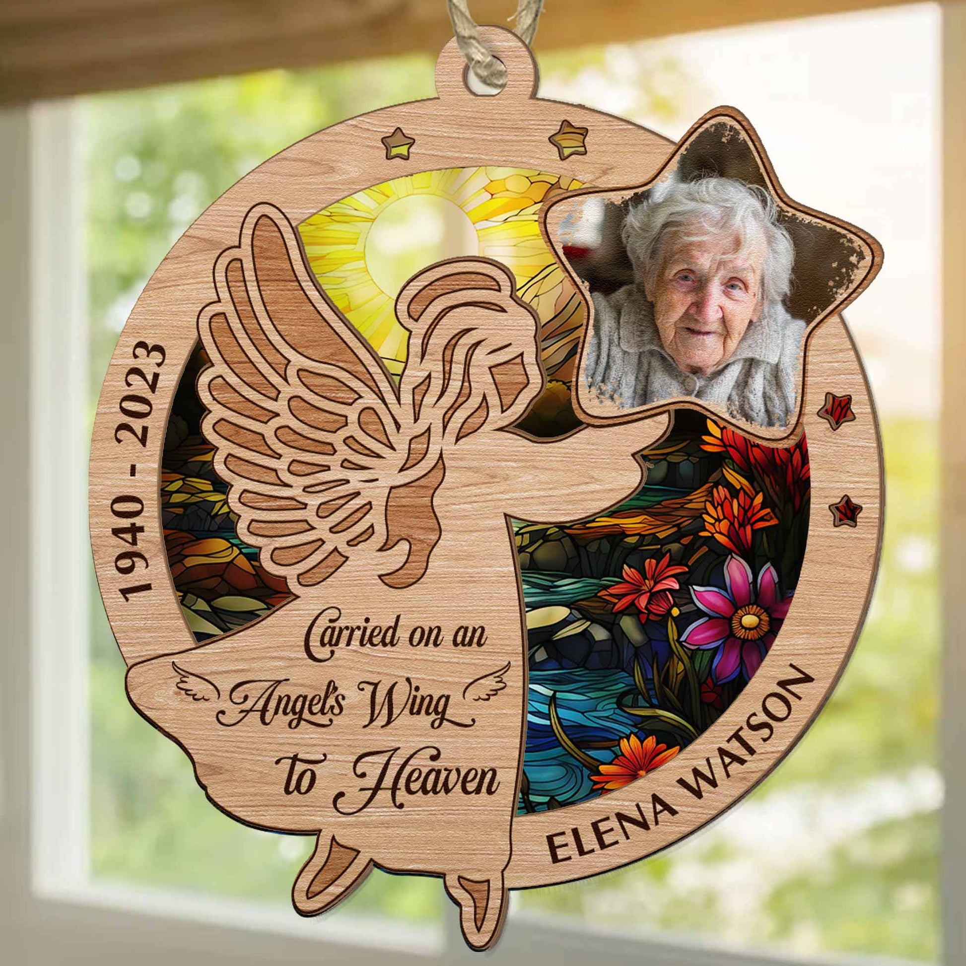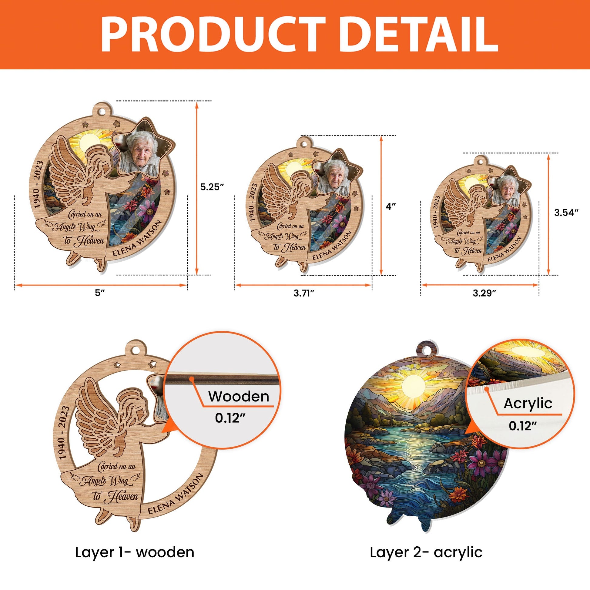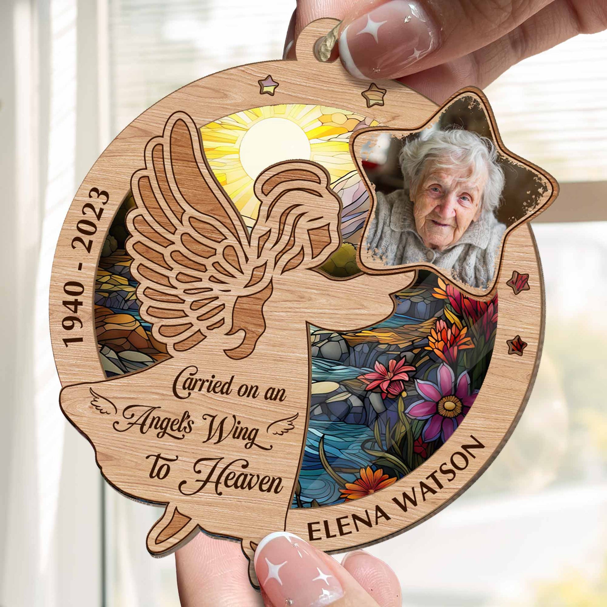 Carried On An Angel'S Wing To Heaven - Personalized Suncatcher Ornament