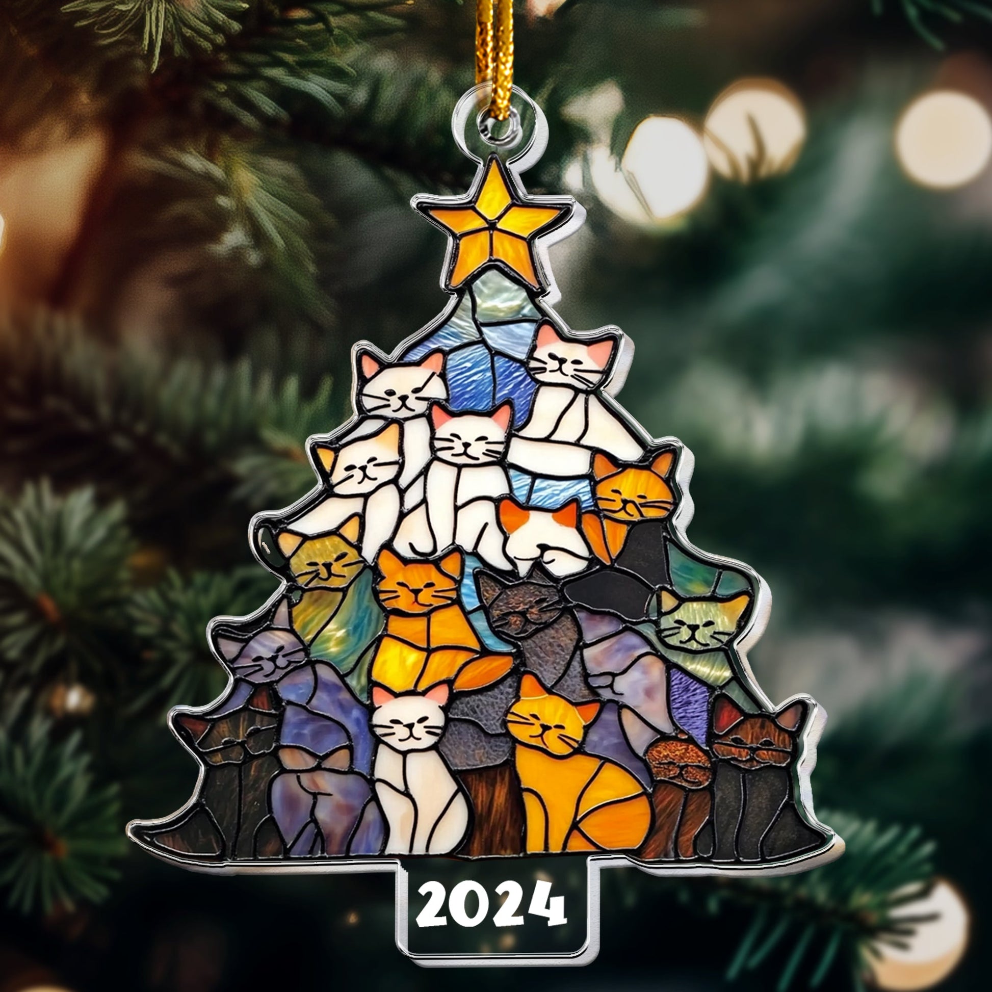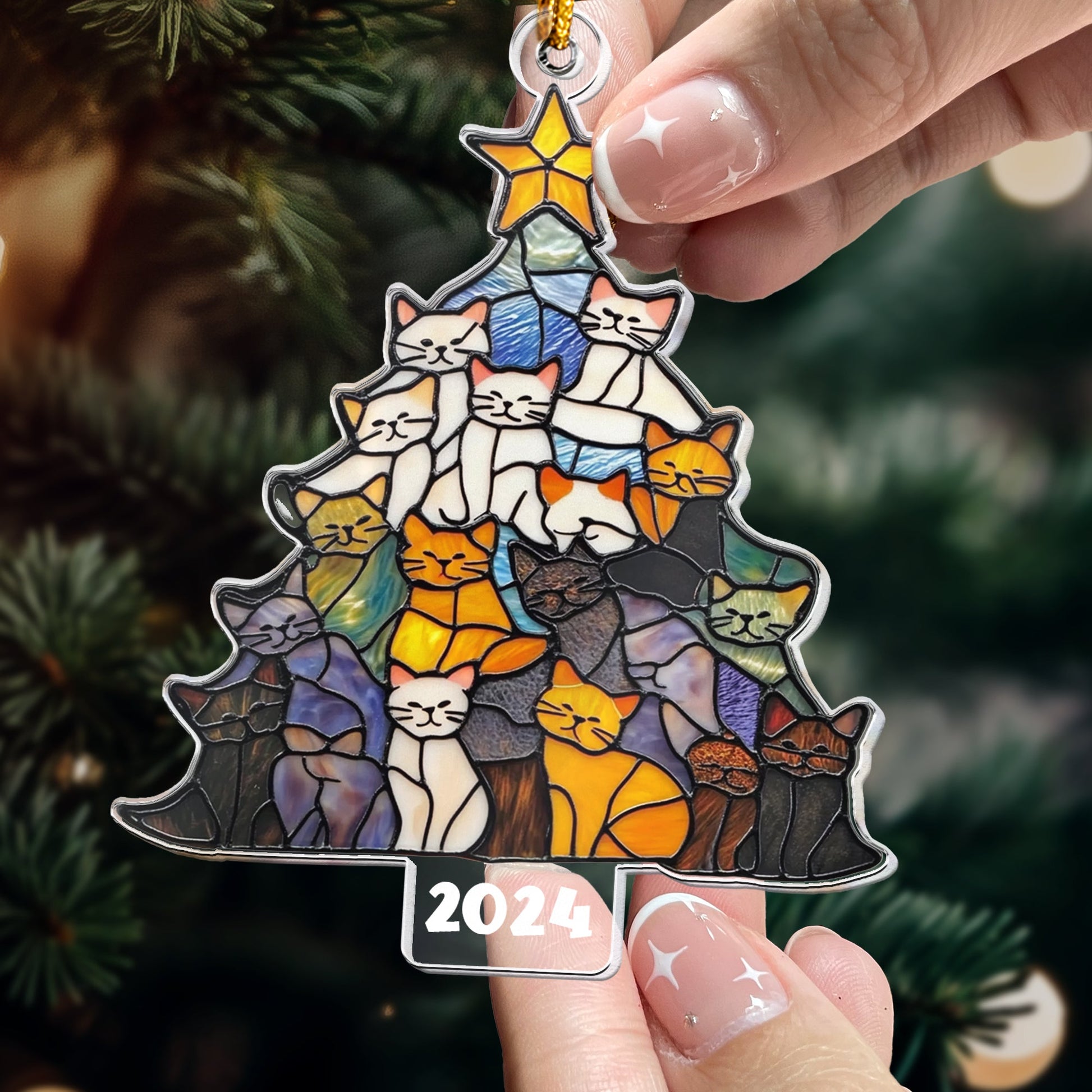 Cat Christmas Tree Flatten Stained Glass Style - Personalized Acrylic Ornament