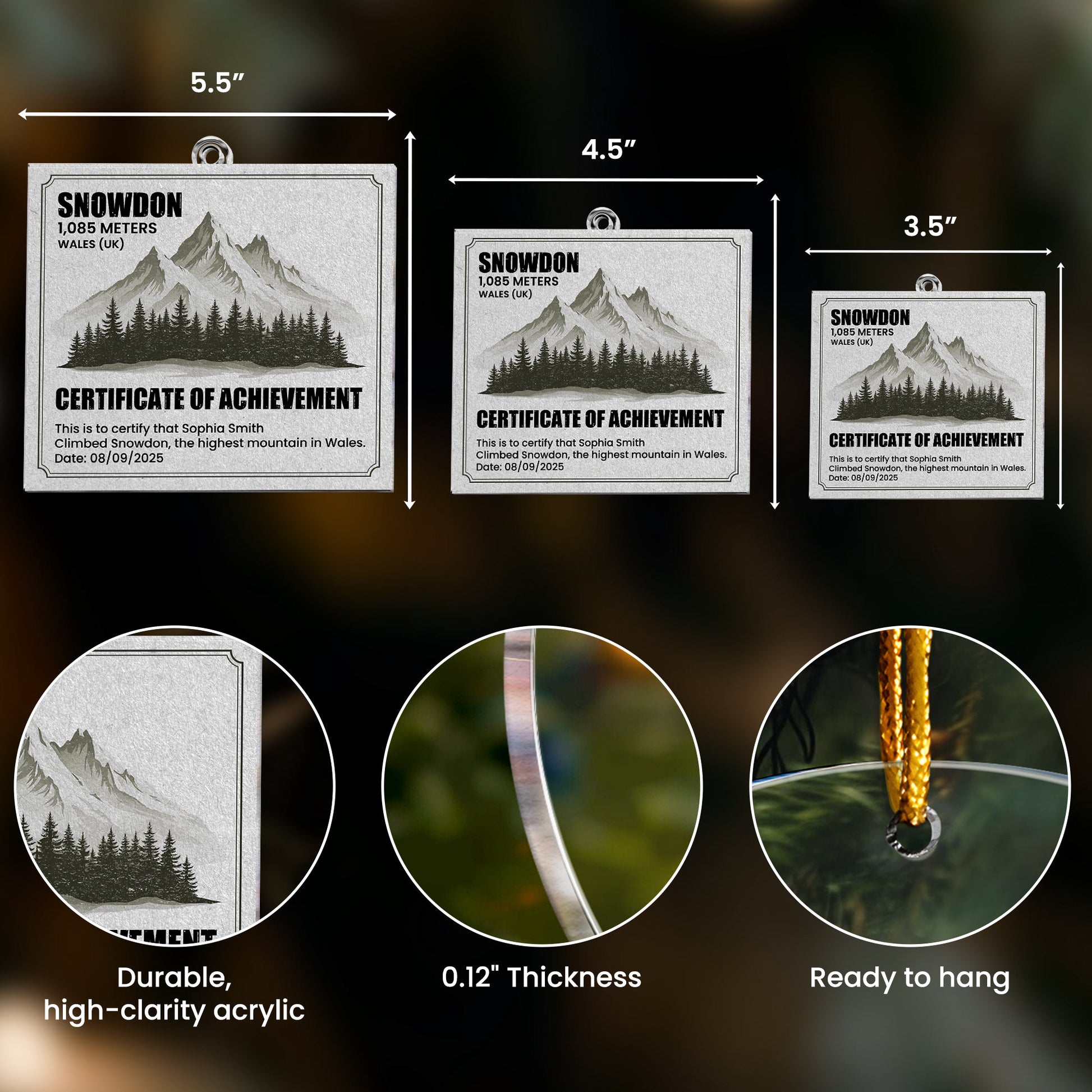 Celebrate the spirit of adventure and the joy of hiking with this Certificate Of Achievement Hiking- Personalized Acrylic Ornament. This custom shaped acrylic ornament is more than just a decoration, it's a testament of resilience, endurance and love for outdoor sports. Perfect for Christmas, birthdays, anniversaries or any occasion that calls for a nod to achievements in sports.