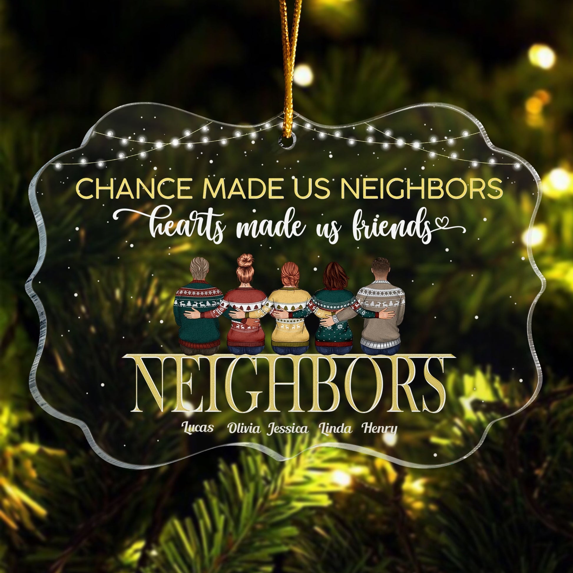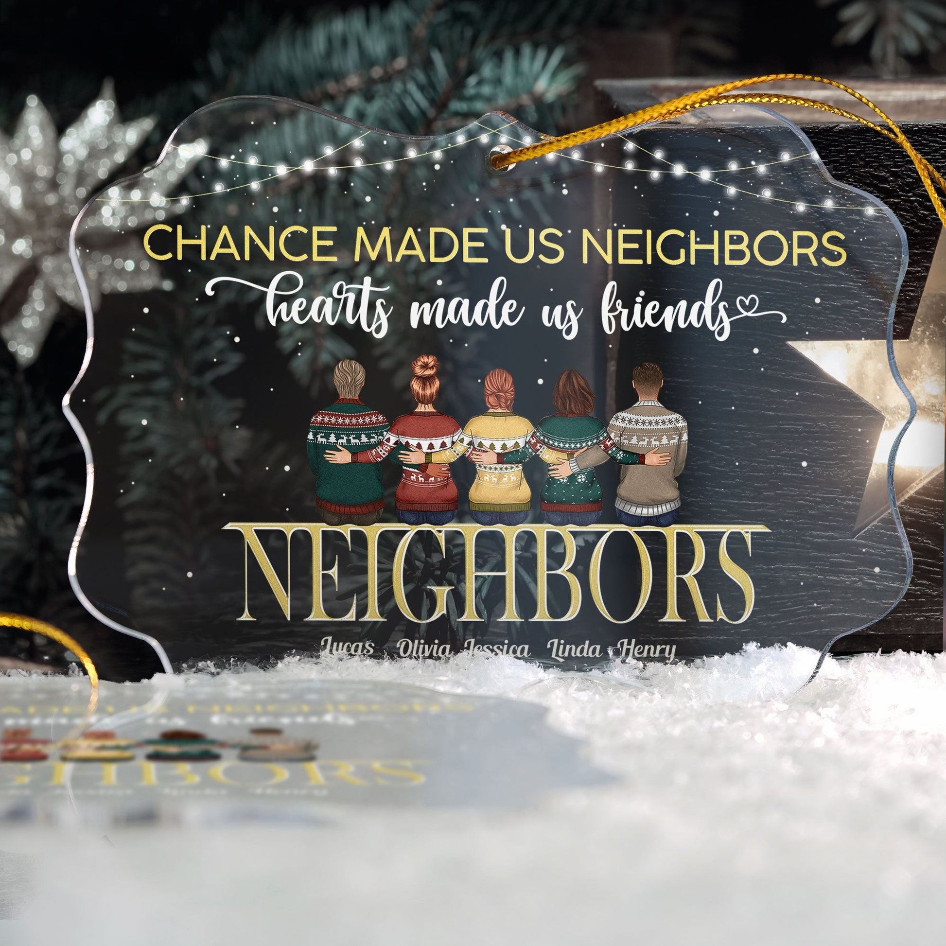 Chance Made Us Neighbors Hearts Made Us Friends - Personalized Acrylic Ornament - Christmas Gift For Neighbors, Neighbours, Friends