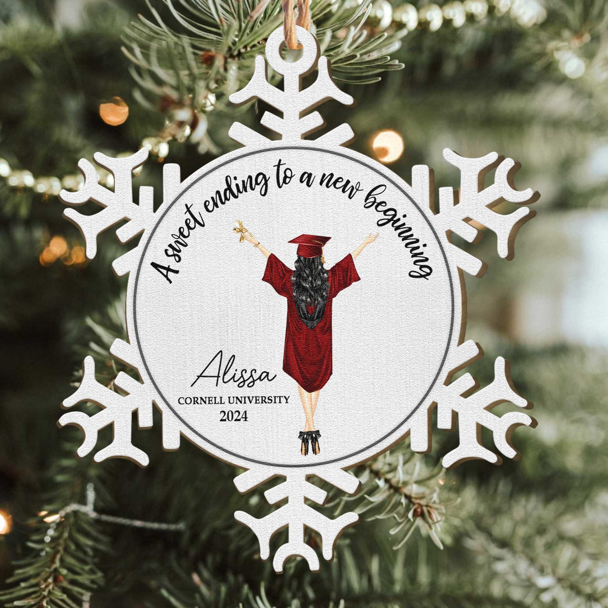 Commemorate the significant milestone of a 2024 graduate's journey with a personalized Graduate ornament. This enchanting Christmas ornament doubles as a cherished keepsake and a celebration of accomplishment. With its intricate design, the Collage Graduation motif beautifully captures the essence of the graduate's educational voyage – from high school to college, Masters, PhD, or any academic achievement. This ornament isn't just decoration; it's a symbol of dedication and achievement. Adorned with "Class of 2024" and tailored to the individual, this ornament is the perfect Graduation Gift for anyone reaching for the stars. Let this ornament grace the tree, serving as a year-round reminder of success and the limitless potential of the future. Perfect Christmas Gifts for family, friends, co-workers, daughters, sons, sisters, soul-mates, etc.