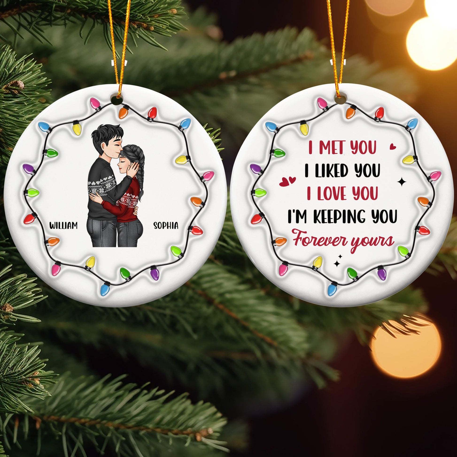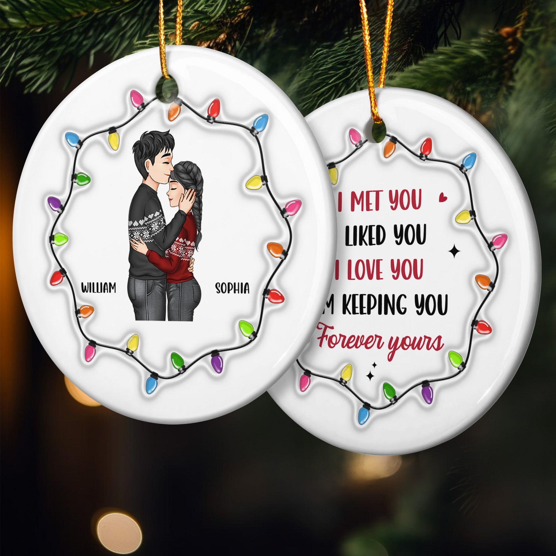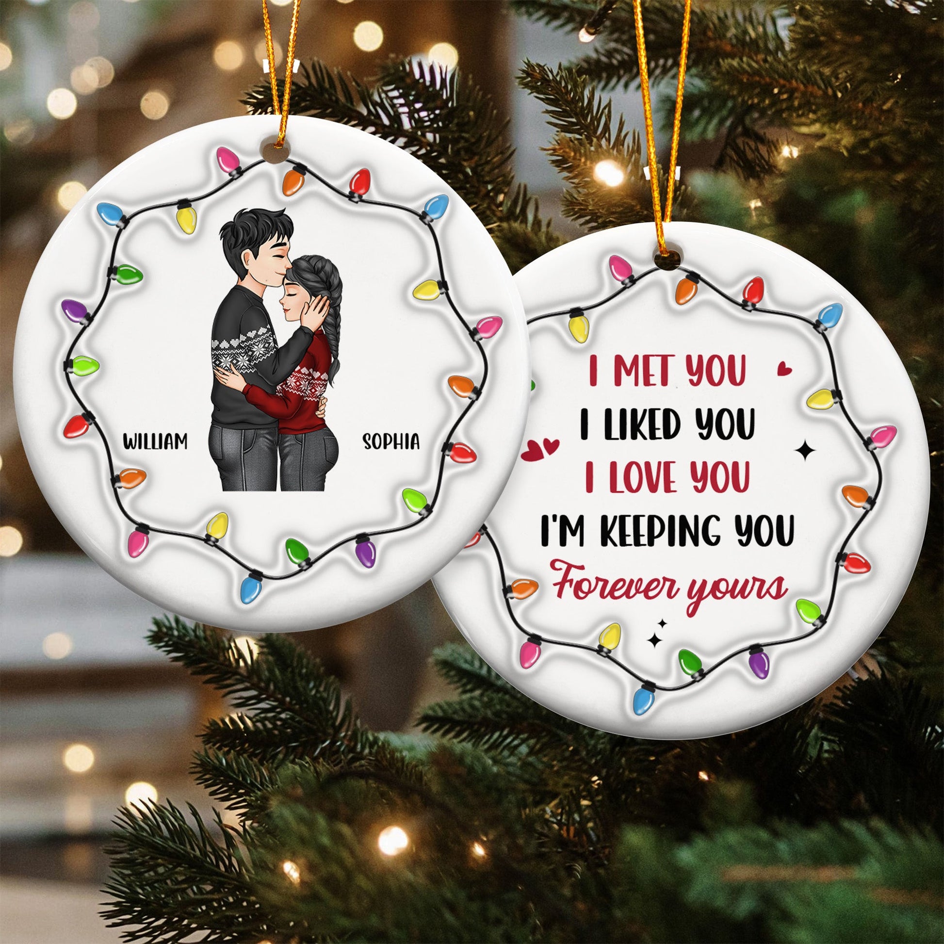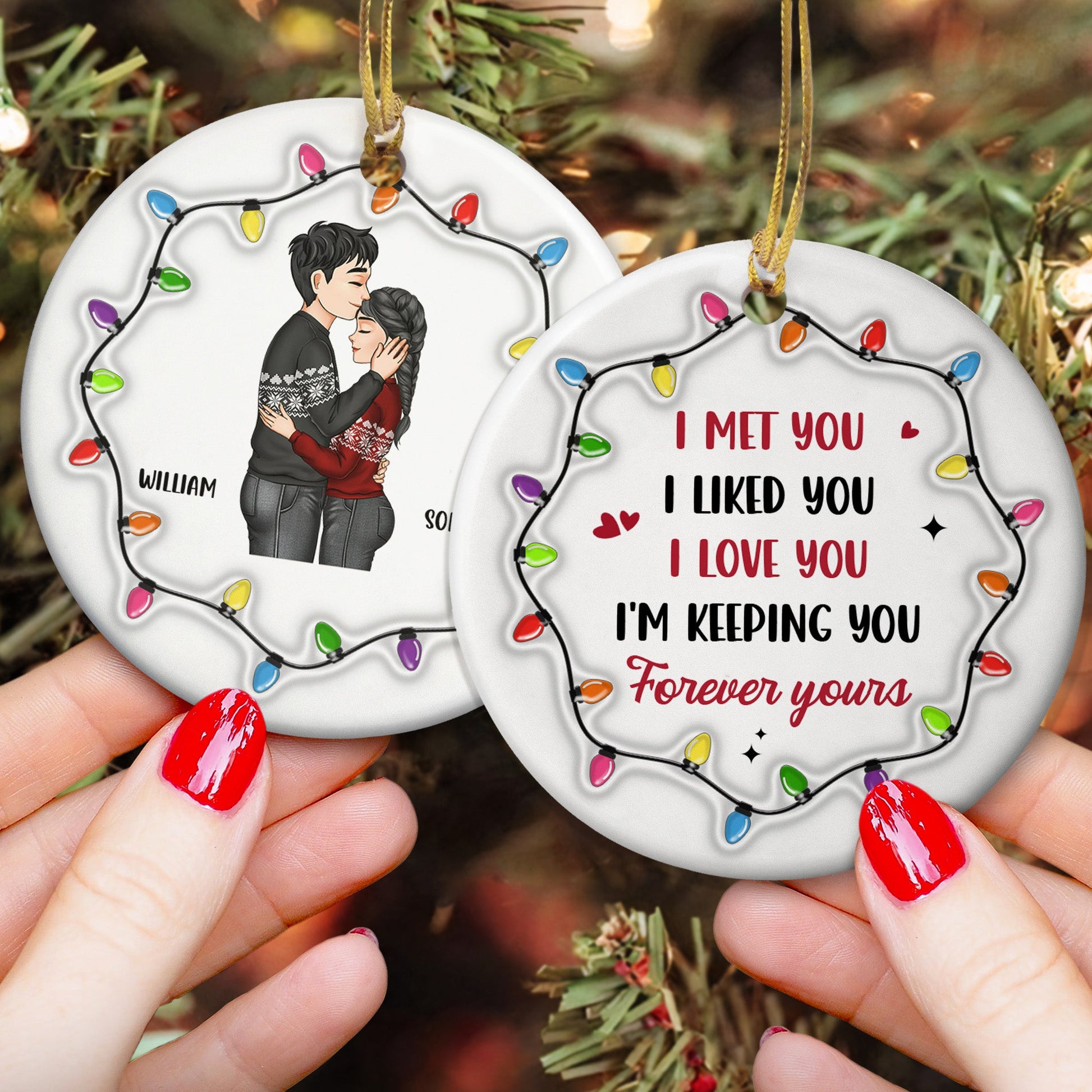 Christmas Couple I Met You I Liked You I Love You - Personalized Ceramic Ornament
