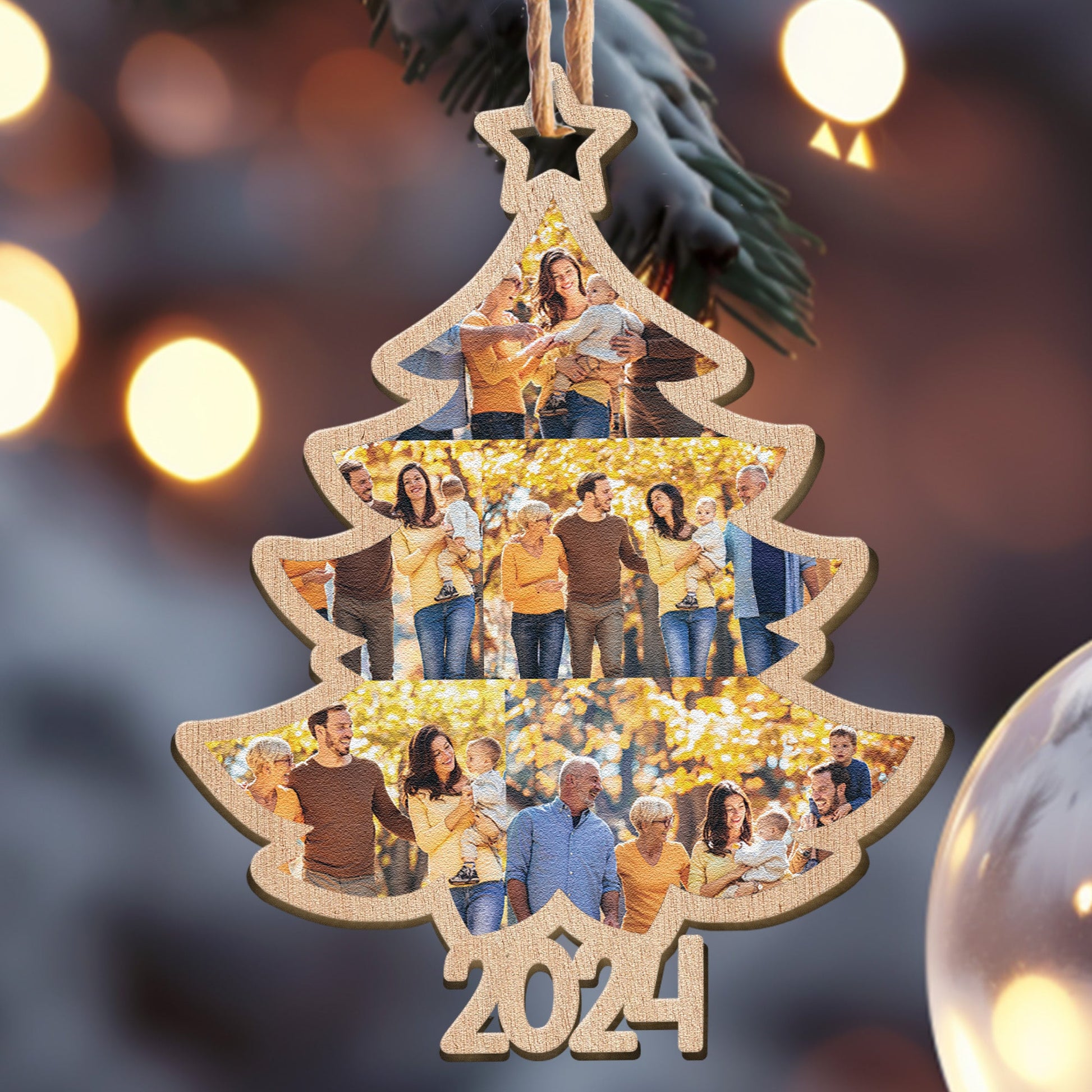 Christmas Custom Family Photo 2024 Christmas Tree - Personalized Wooden Ornament