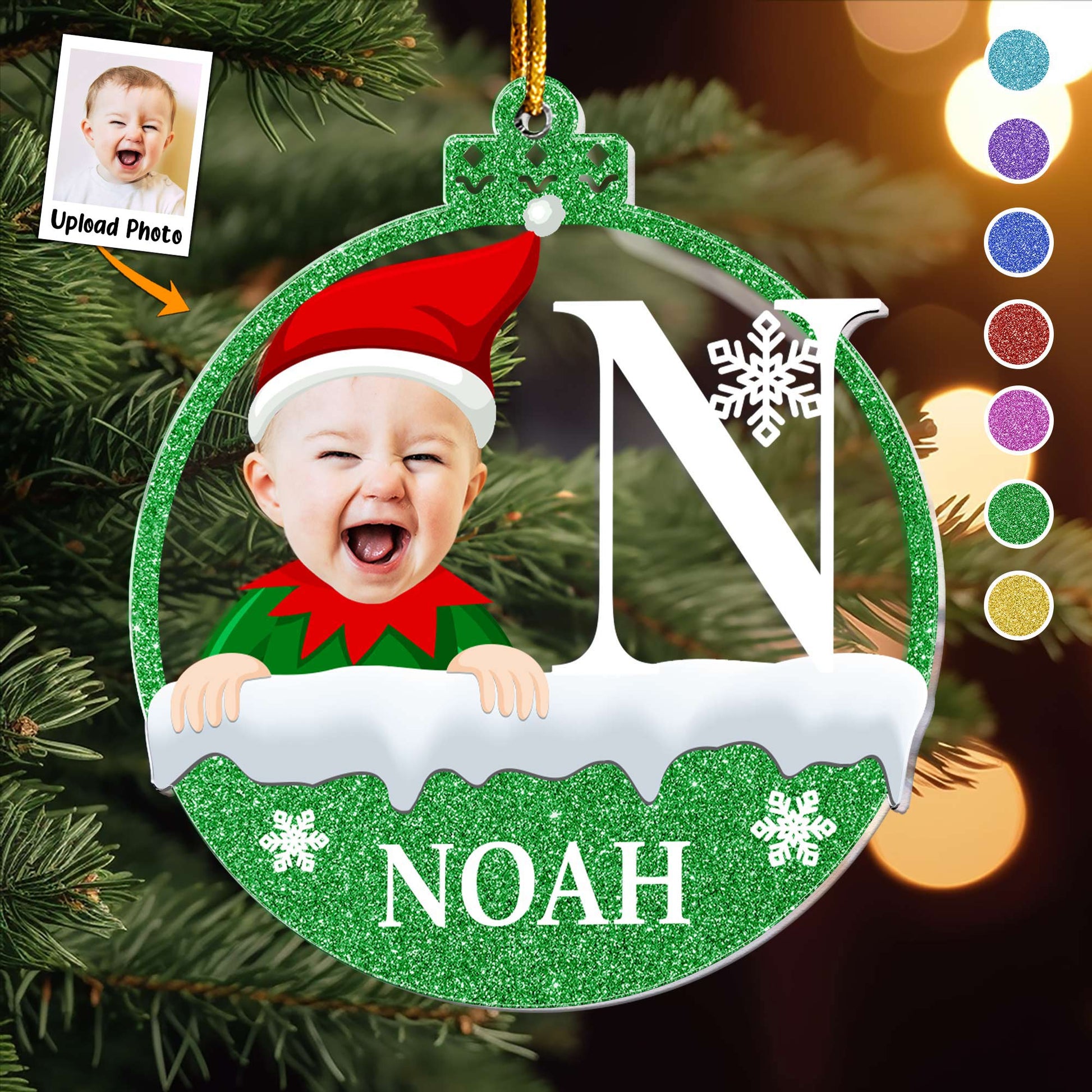 Capture the joy of your child's first Christmas with our Personalized Custom Shaped Acrylic Photo Ornament. This adorable ornament lets you showcase your little one's face photo, along with a custom monogram featuring the first letter of their name. Perfect for parents and grandparents who want to add a special touch to their holiday décor, this ornament will bring festive cheer to your tree.