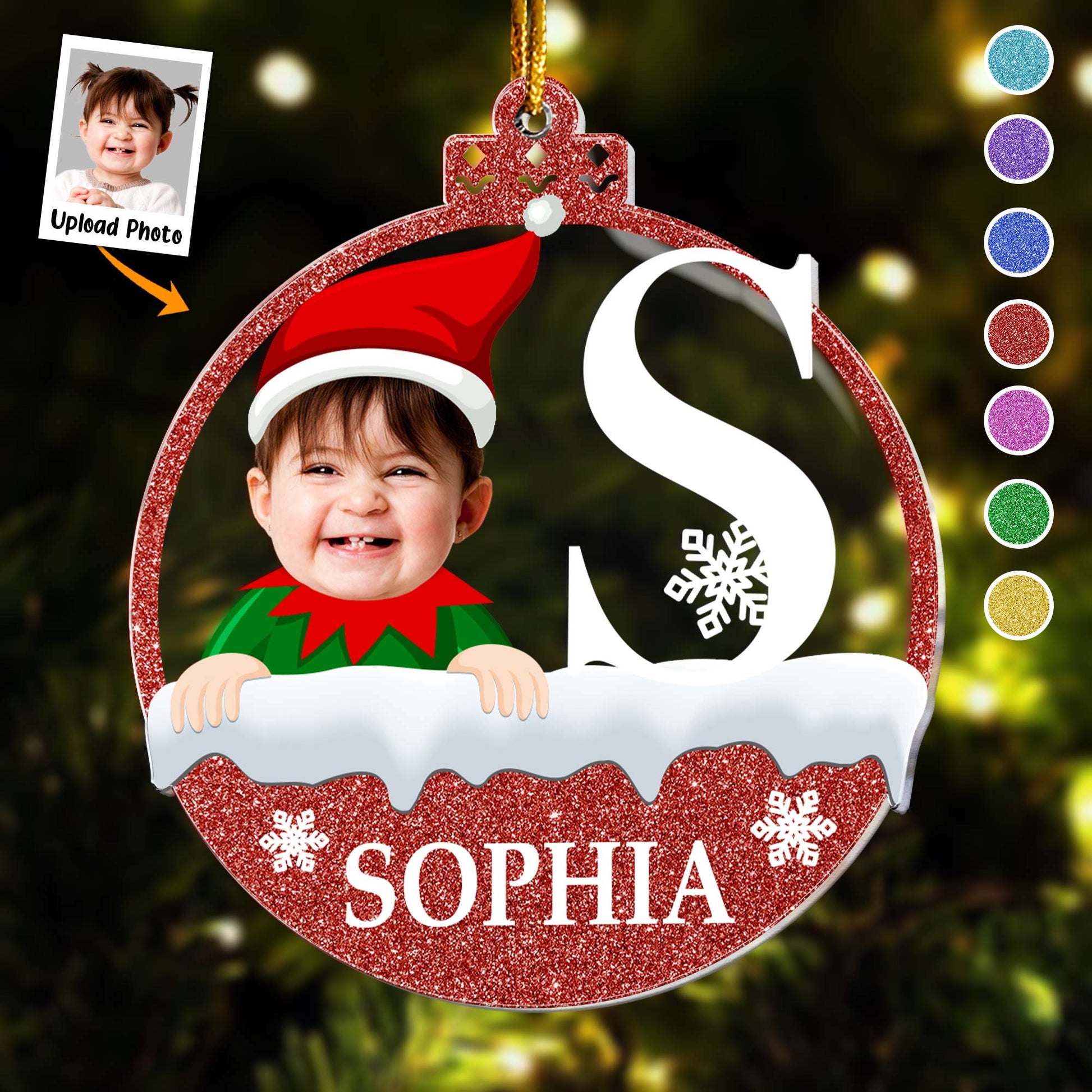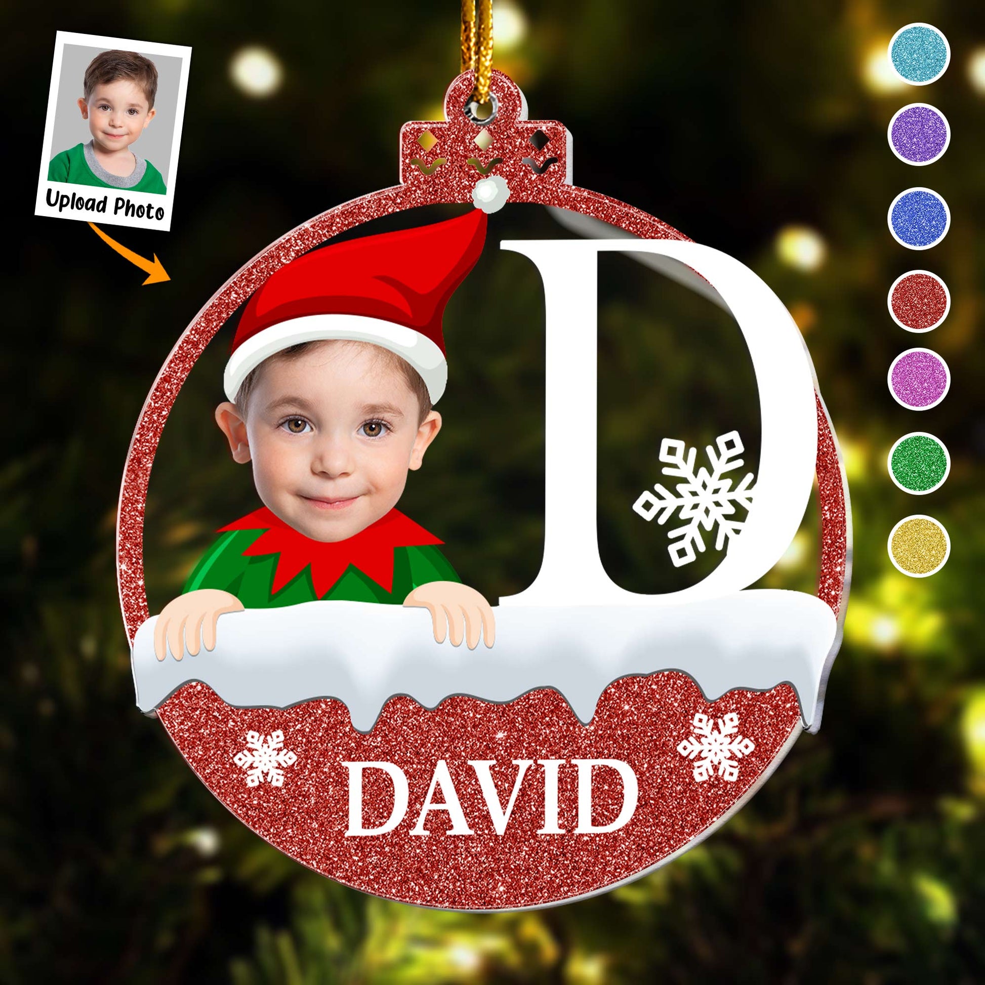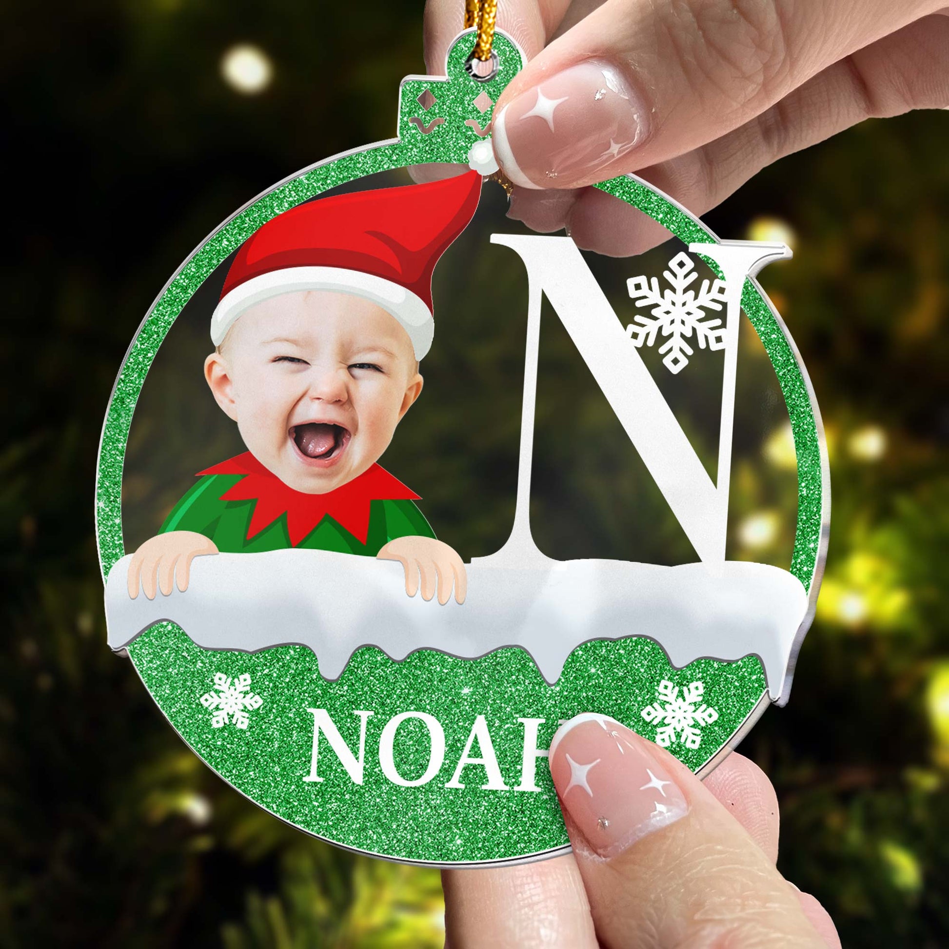 Christmas Elf Monogram Kid - Personalized Acrylic Photo Ornament