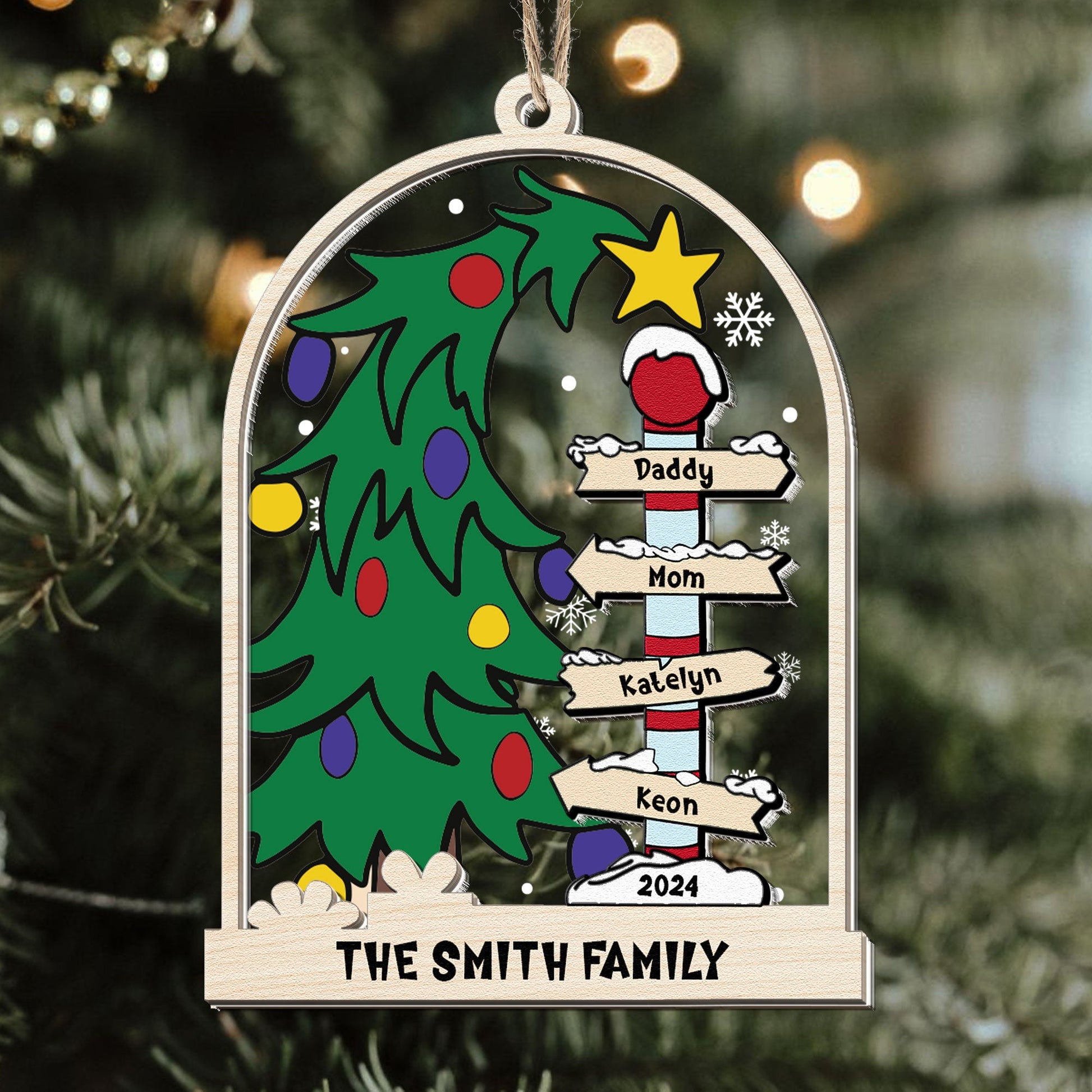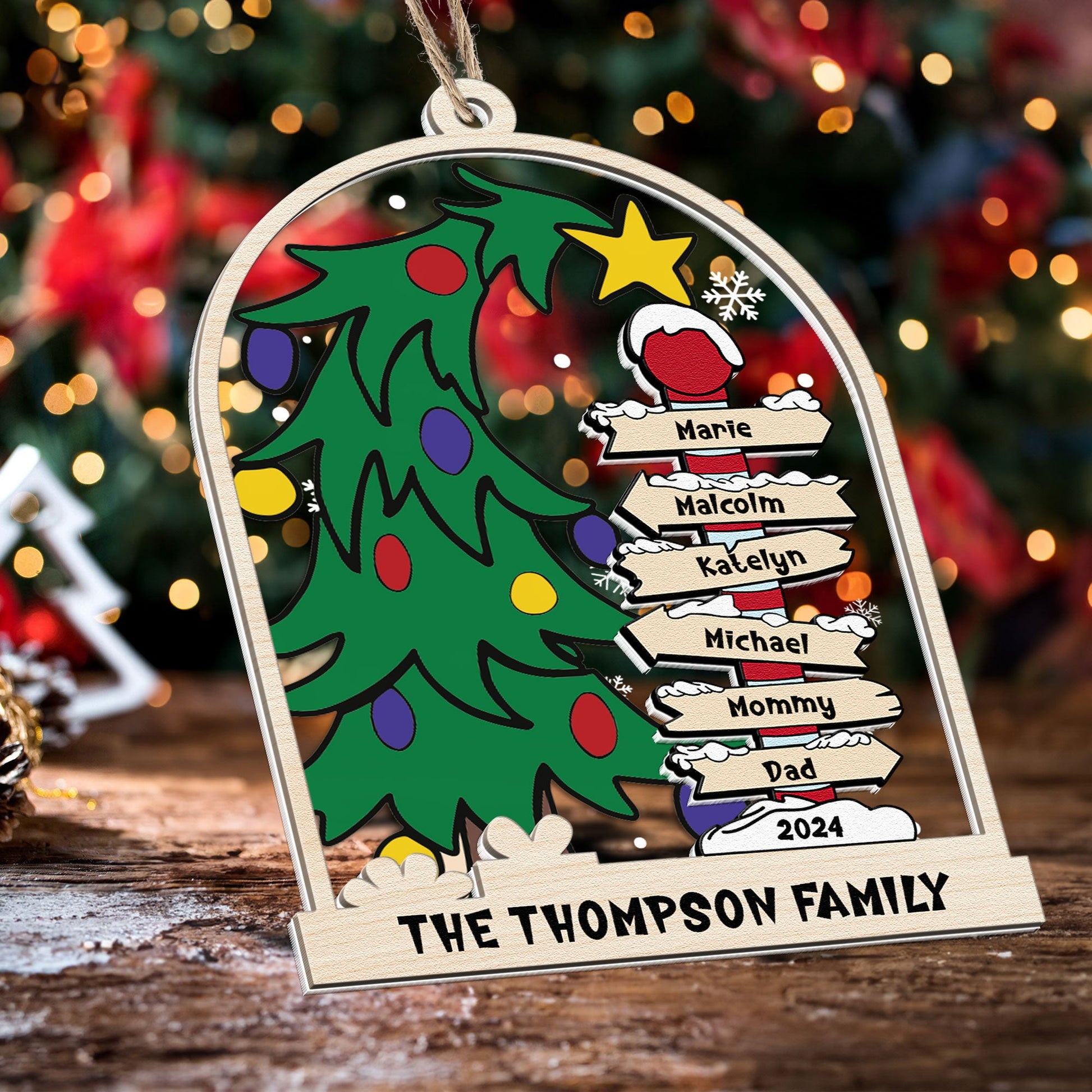 Christmas Family Tree - Personalized Wood And Acrylic Ornament