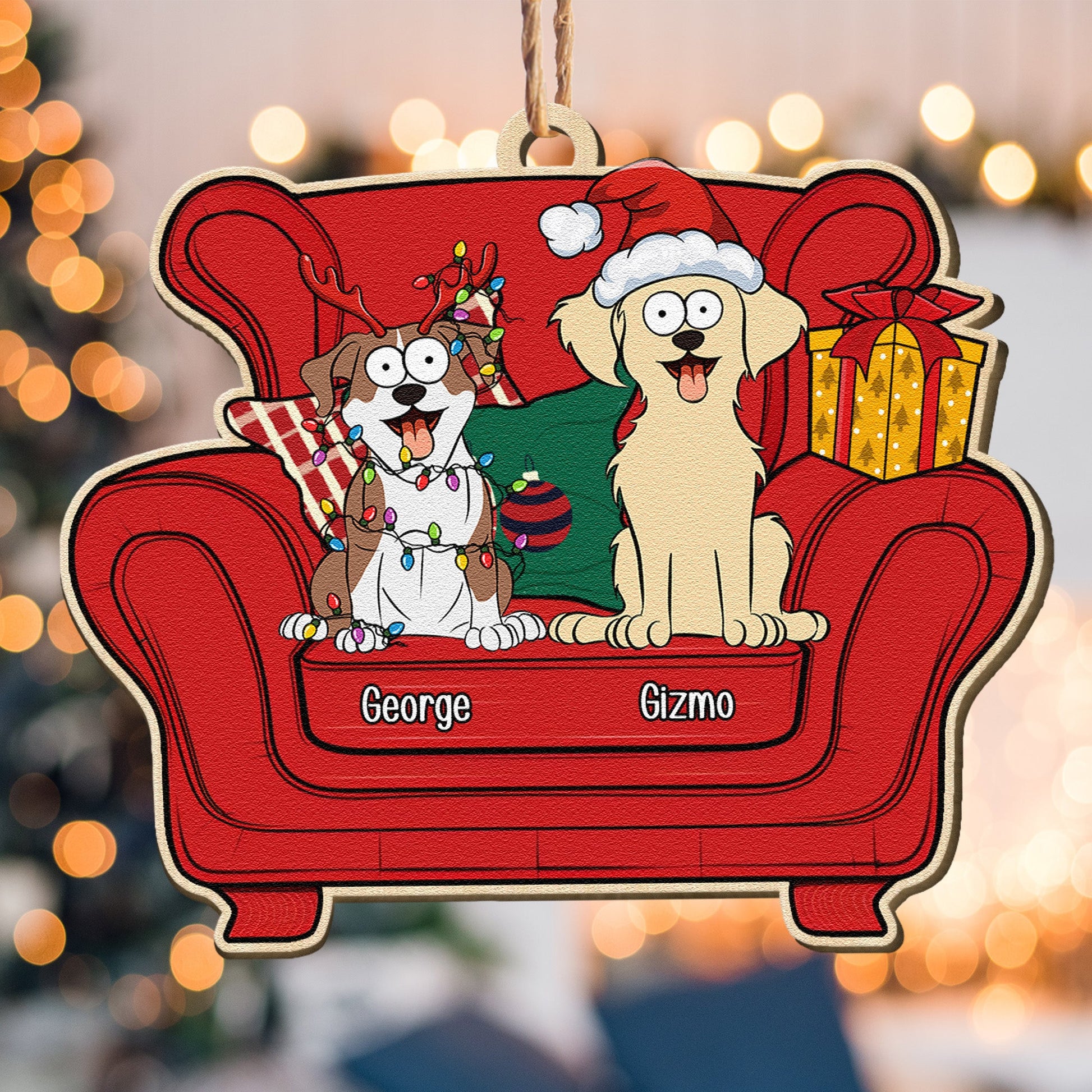 Christmas Funny Pet Sitting In Armchair - Personalized Wooden Ornament