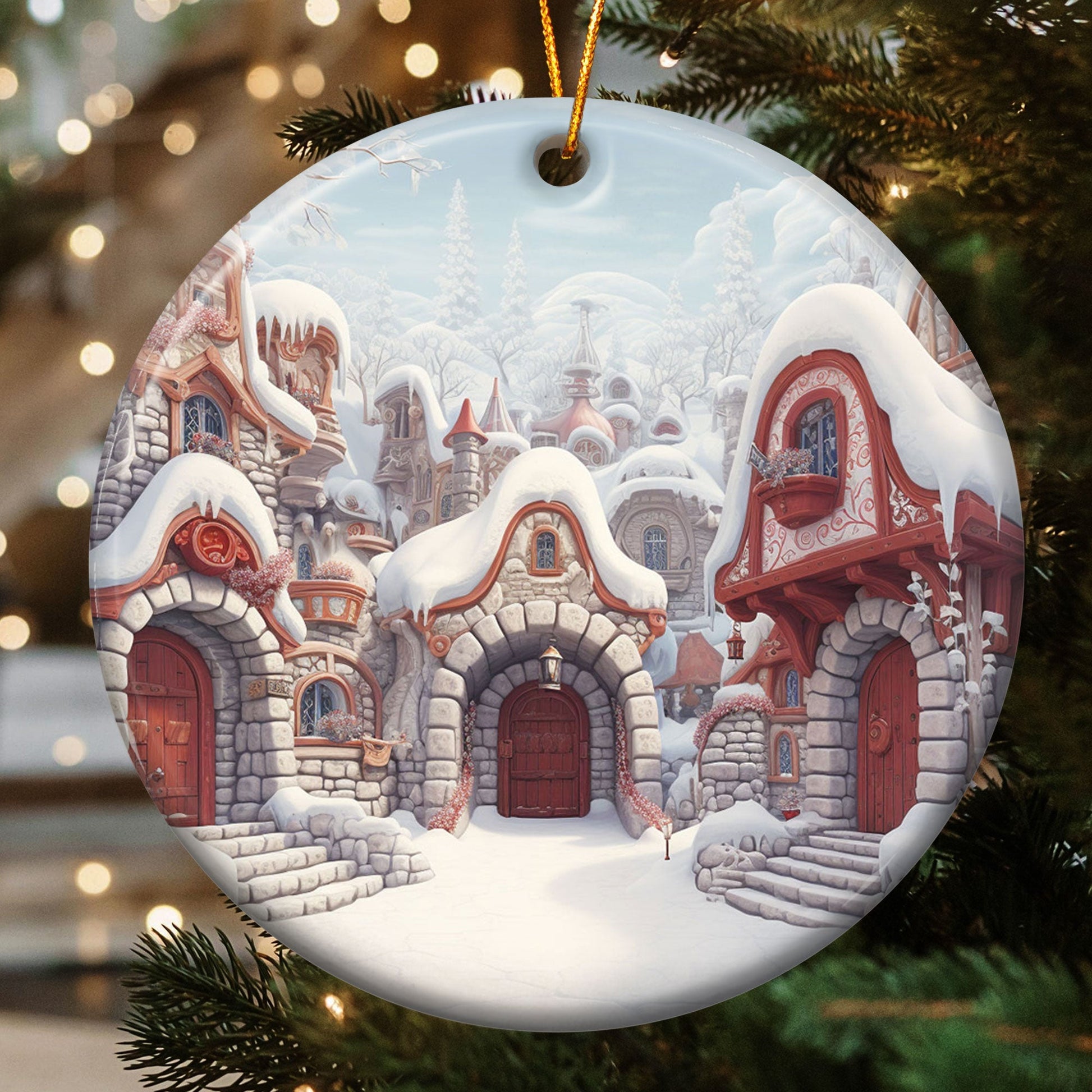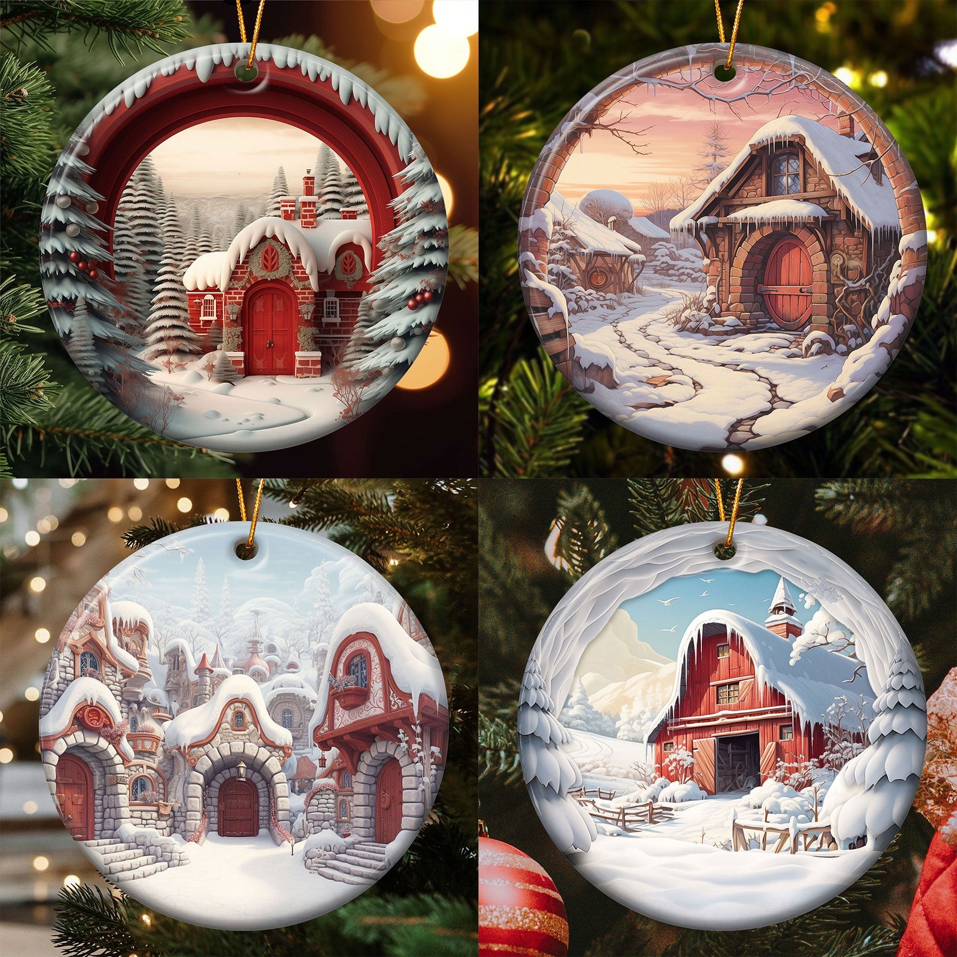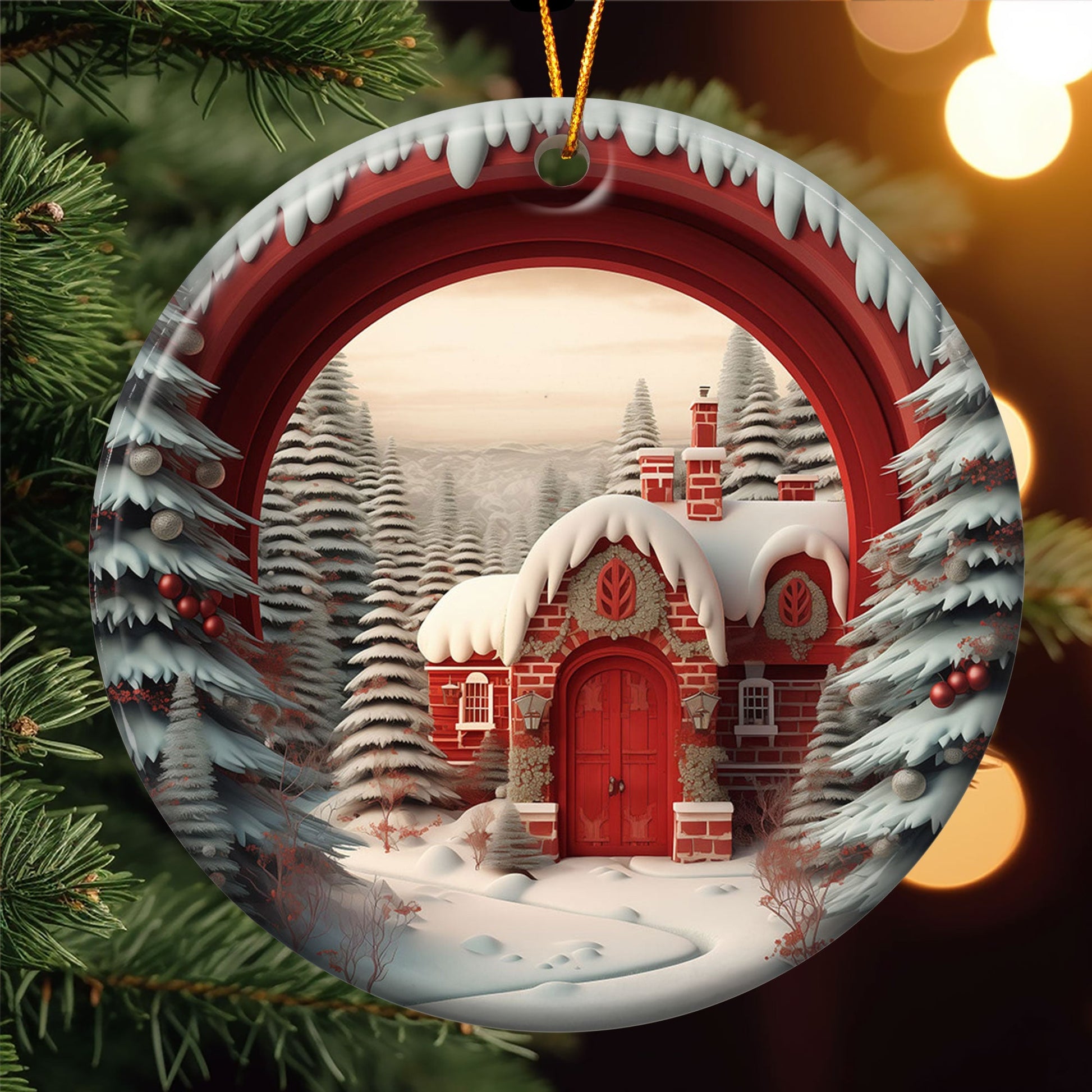 Christmas Snow 3D Look Non-Textured - Personalized Ceramic Ornament