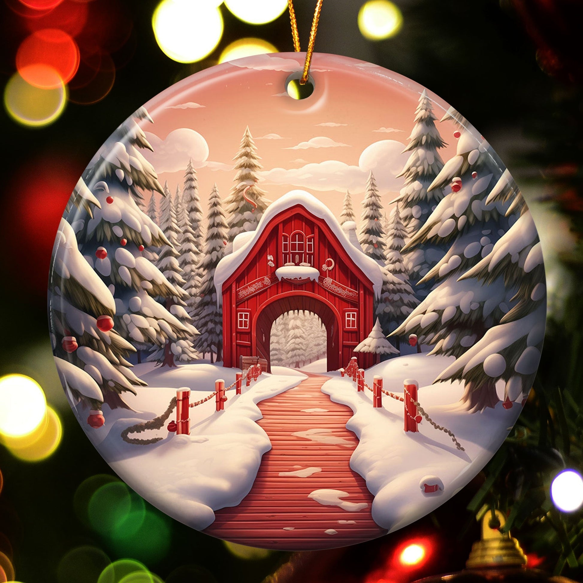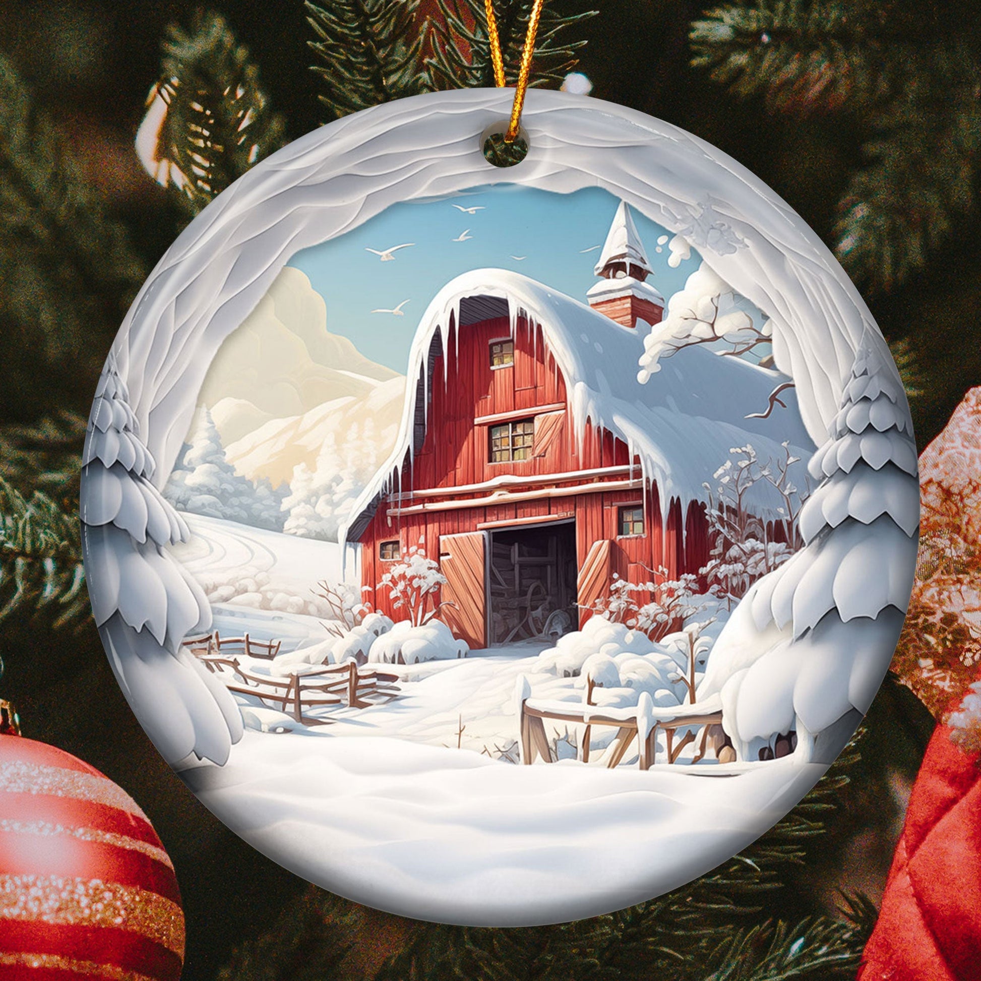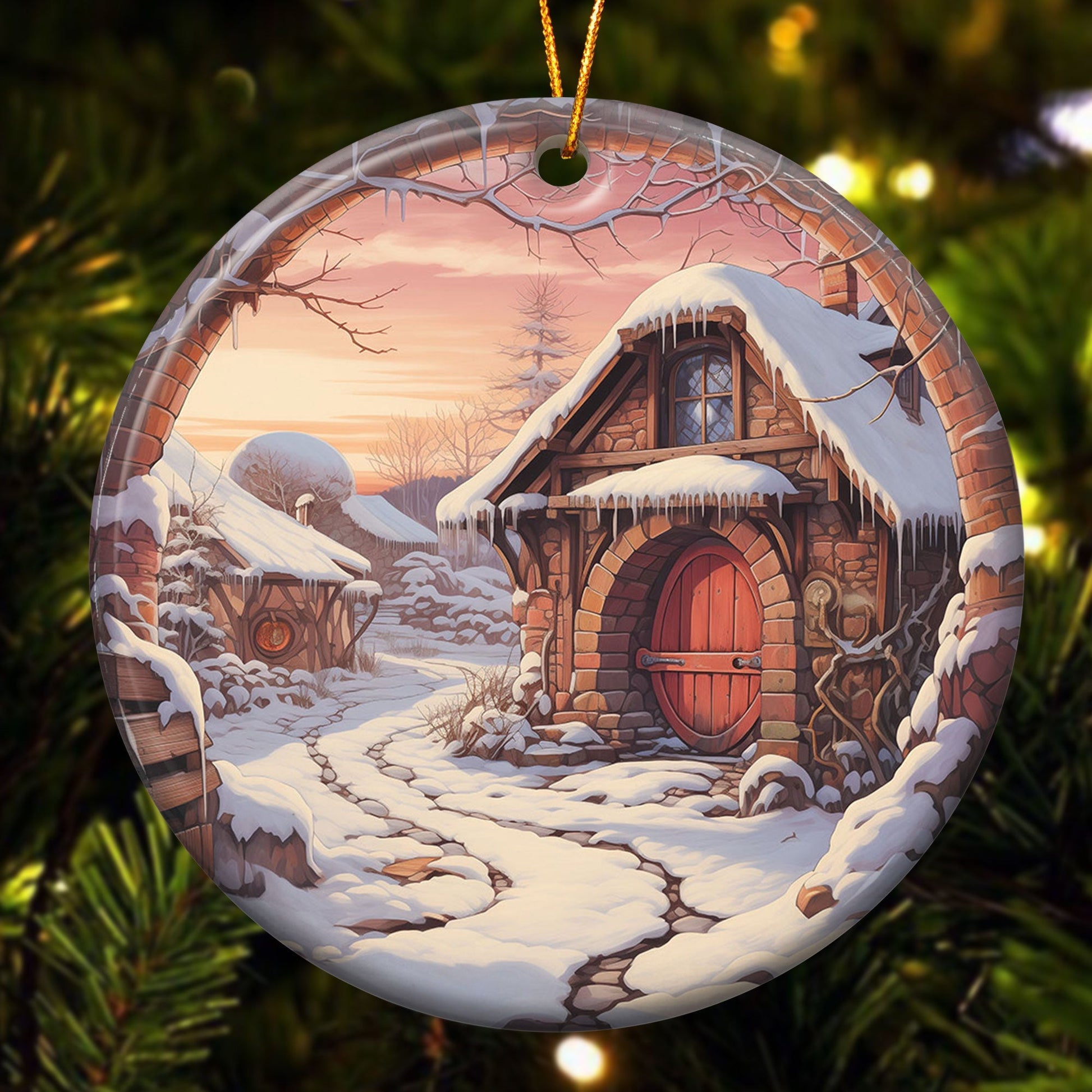 Christmas Snow 3D Look Non-Textured - Personalized Ceramic Ornament