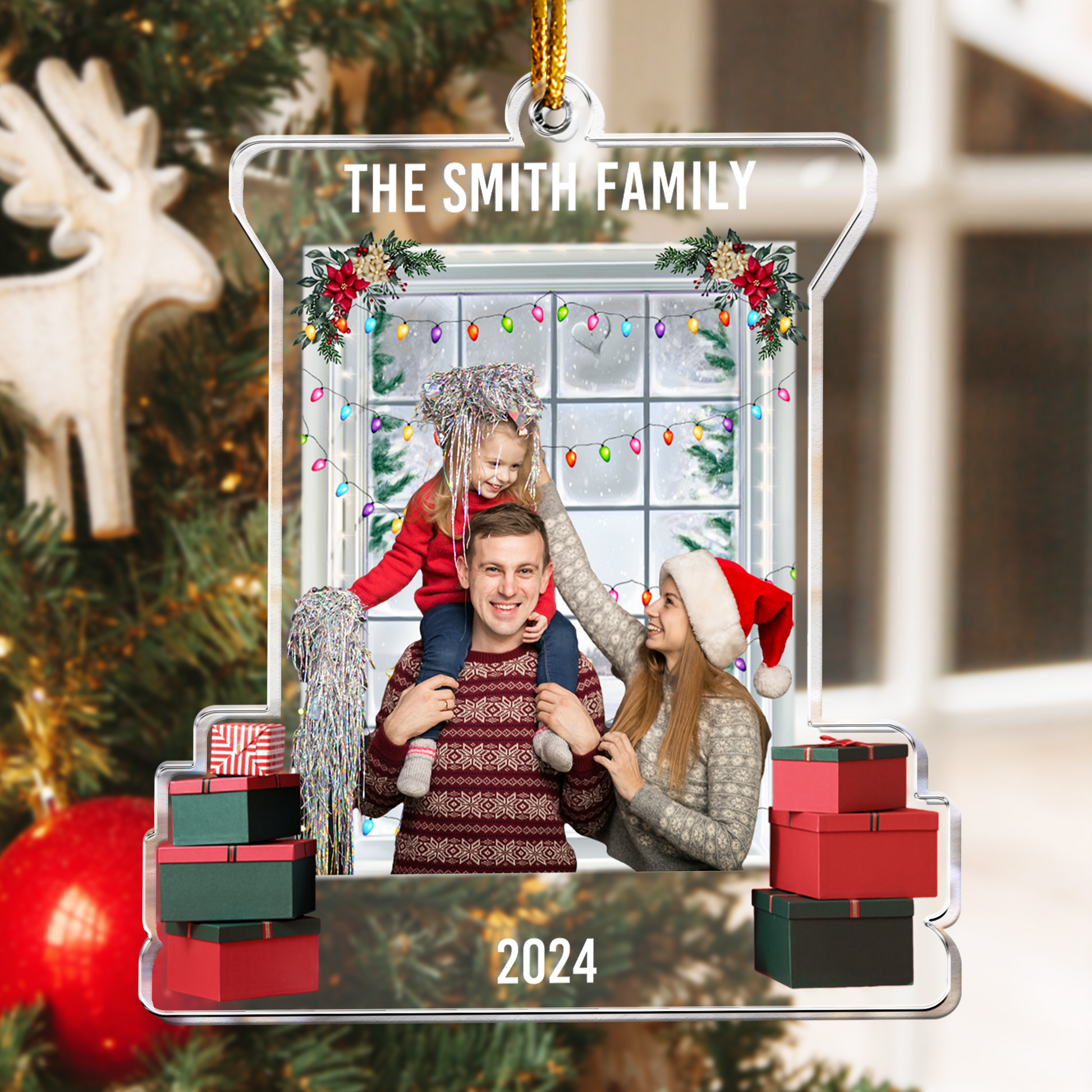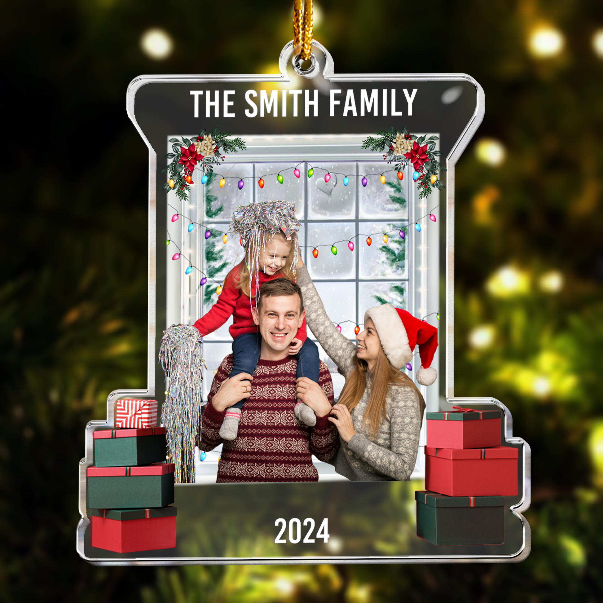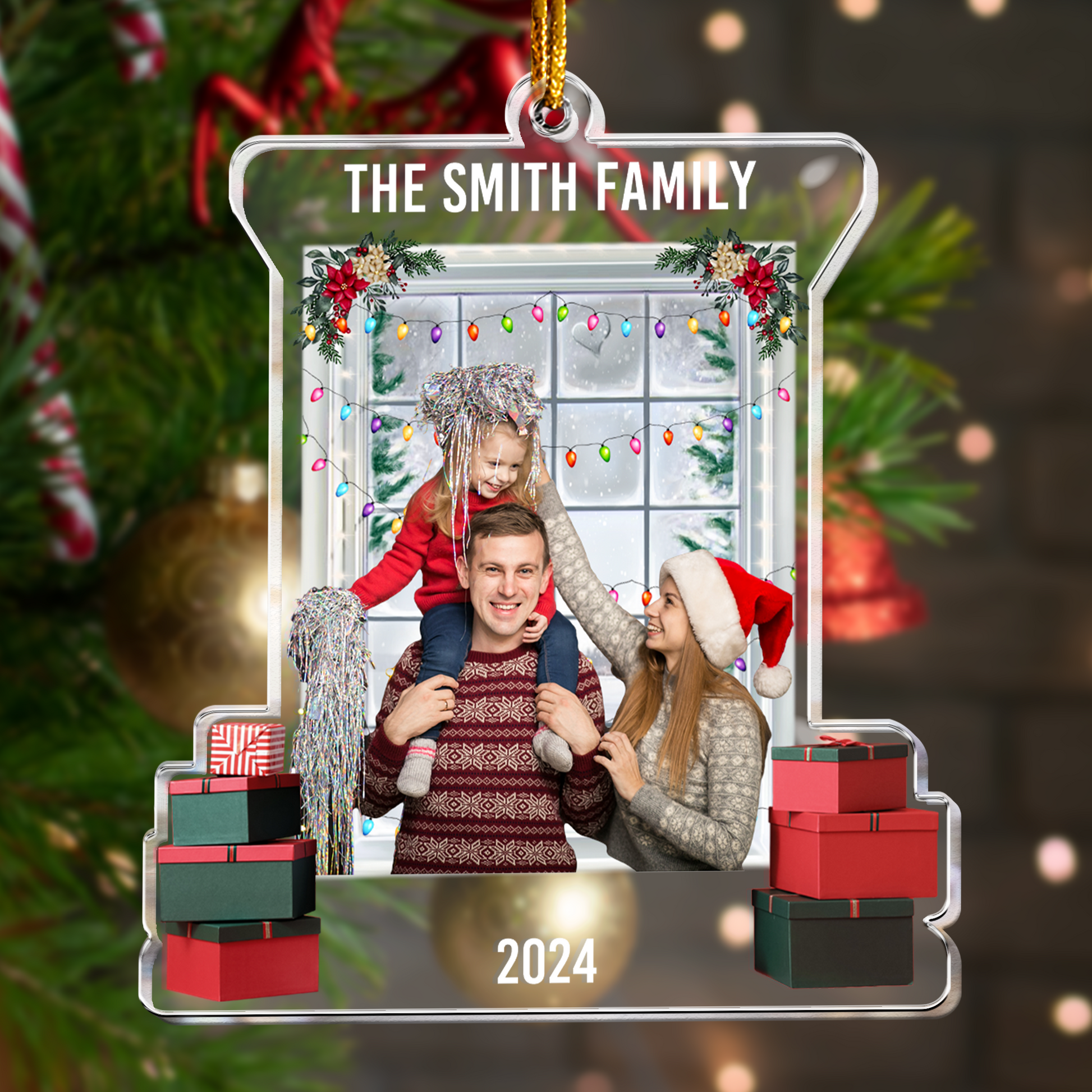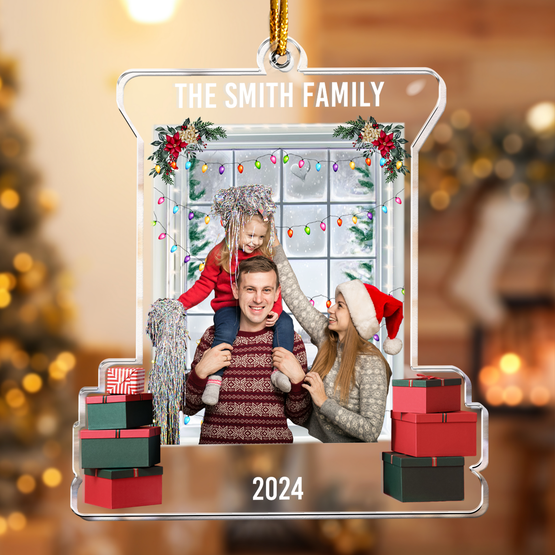 Christmas Snow Window Family Upload Photo 2024 - Personalized Acrylic Photo Ornament