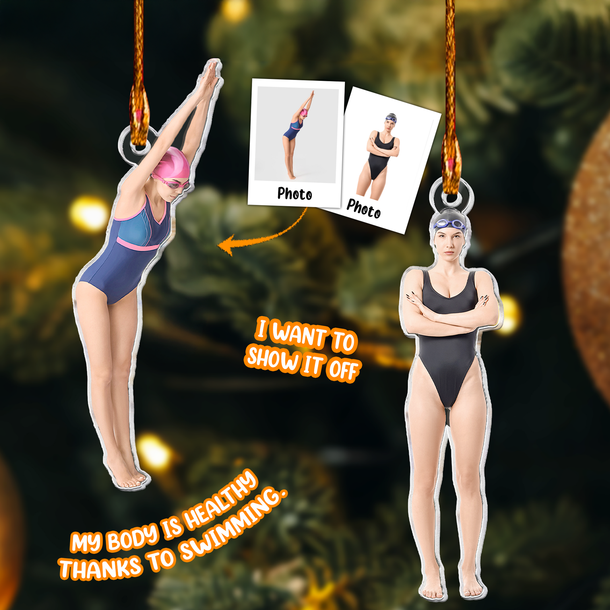 Christmas Swimming Ornament Swimmers Swim Team - Personalized Acrylic Photo Ornament