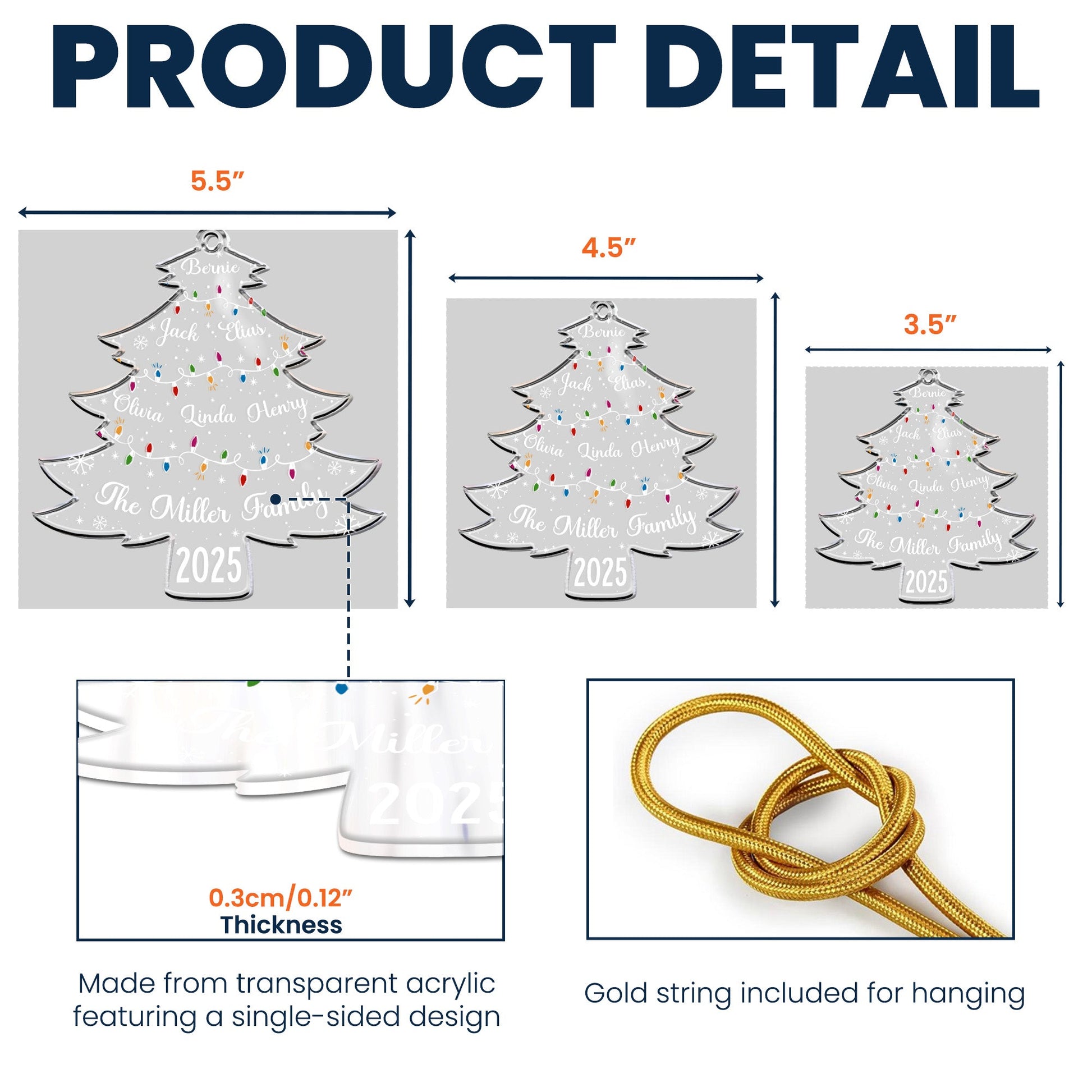 Christmas Tree With Family Names And Led Lights - Personalized Acrylic Ornament