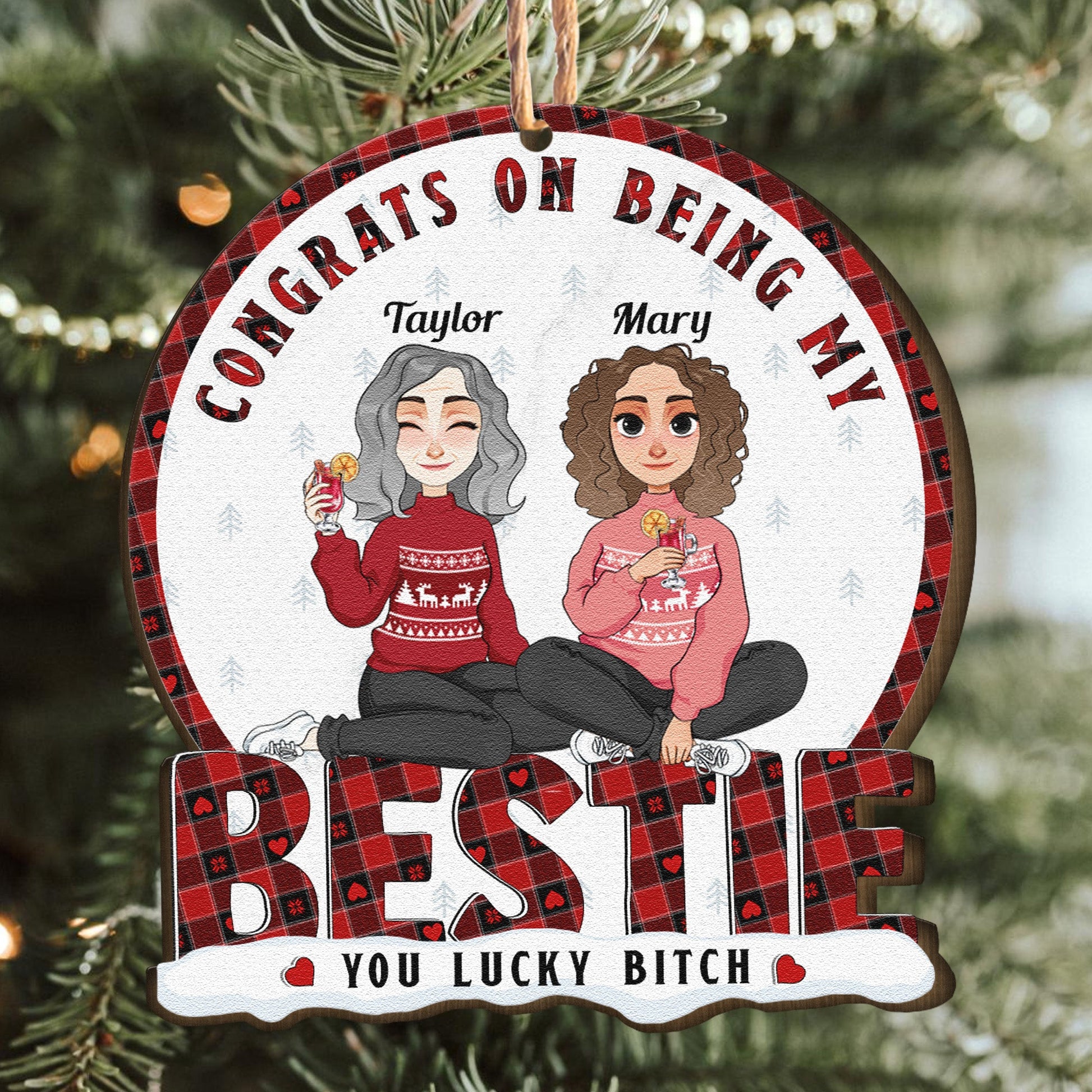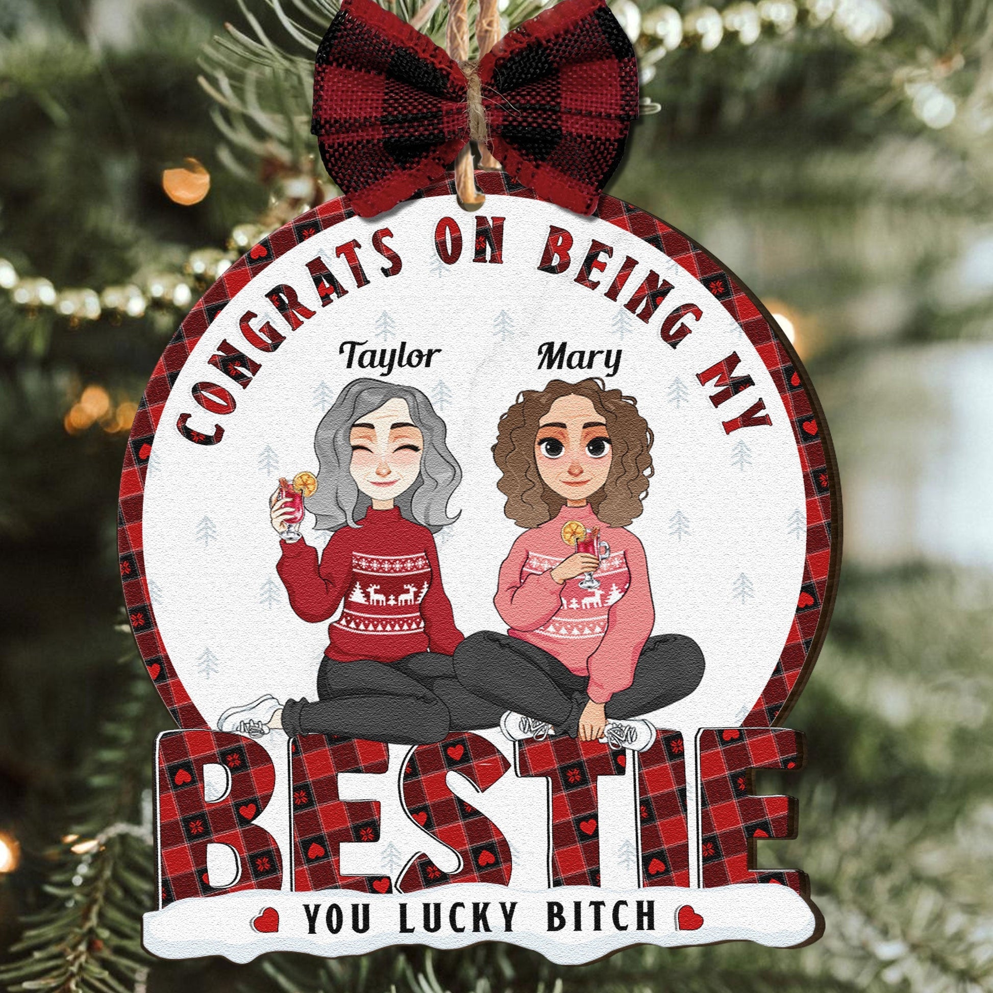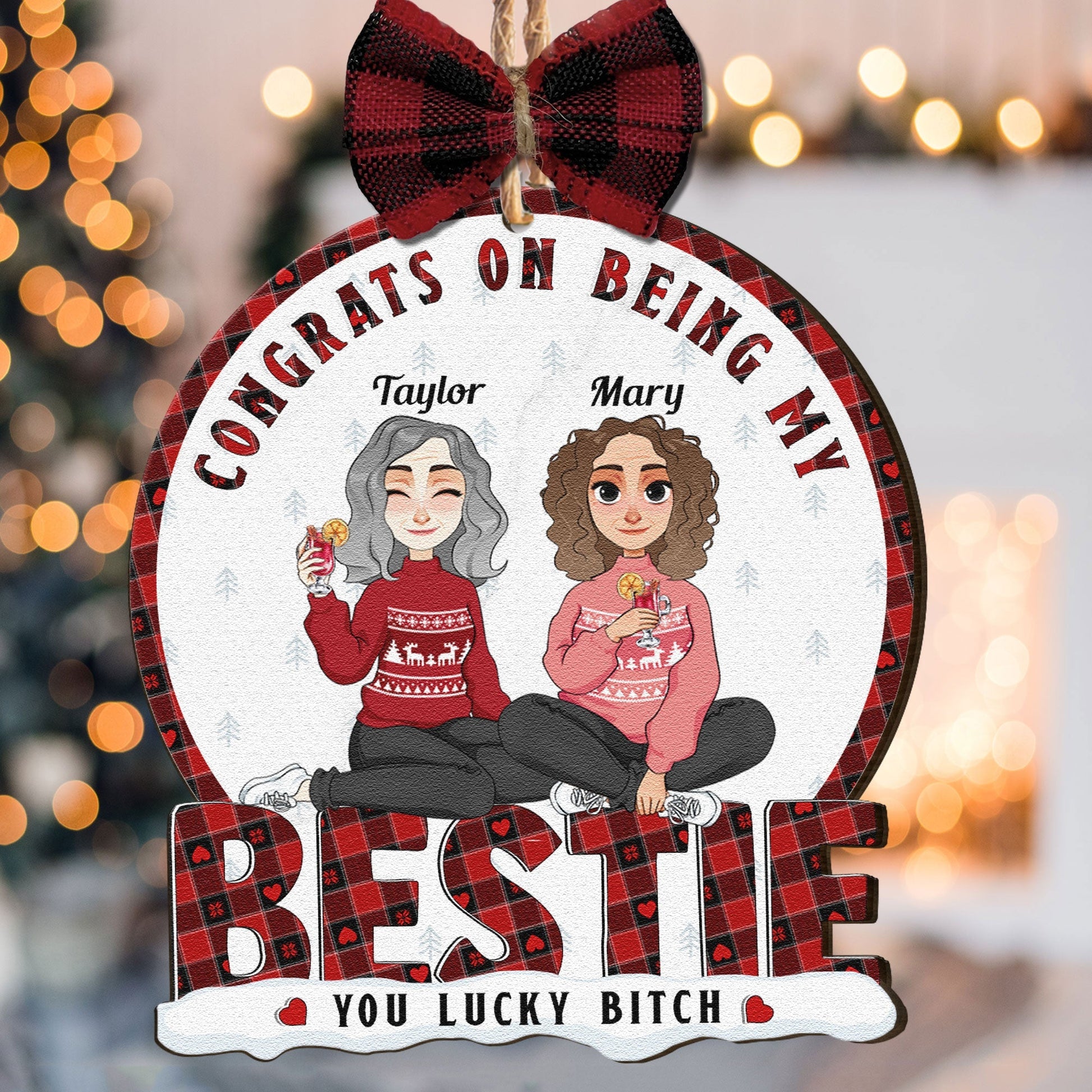 Congrats On Being My Bestie - Personalized Wooden Ornament