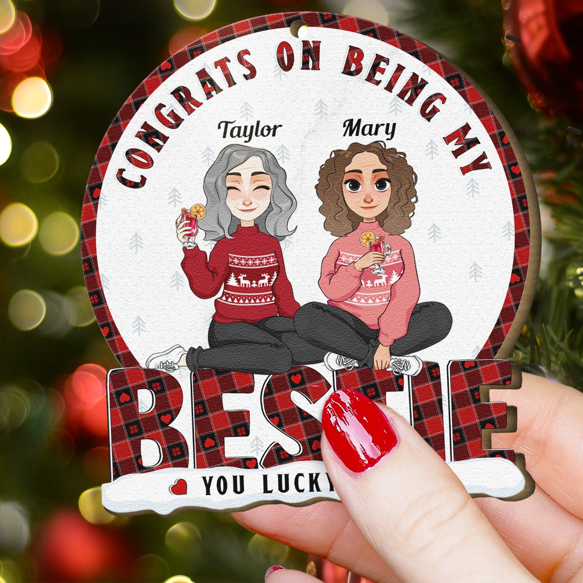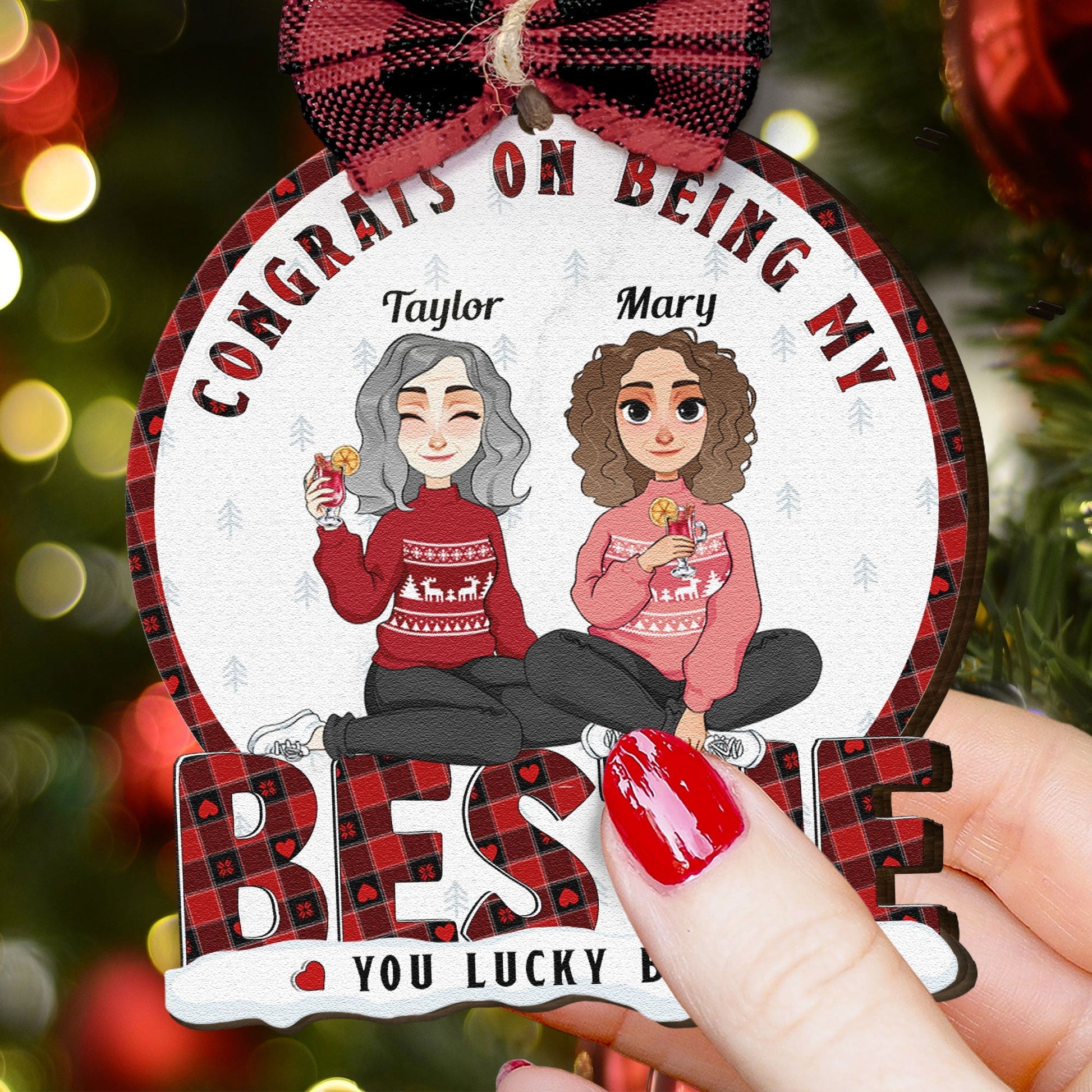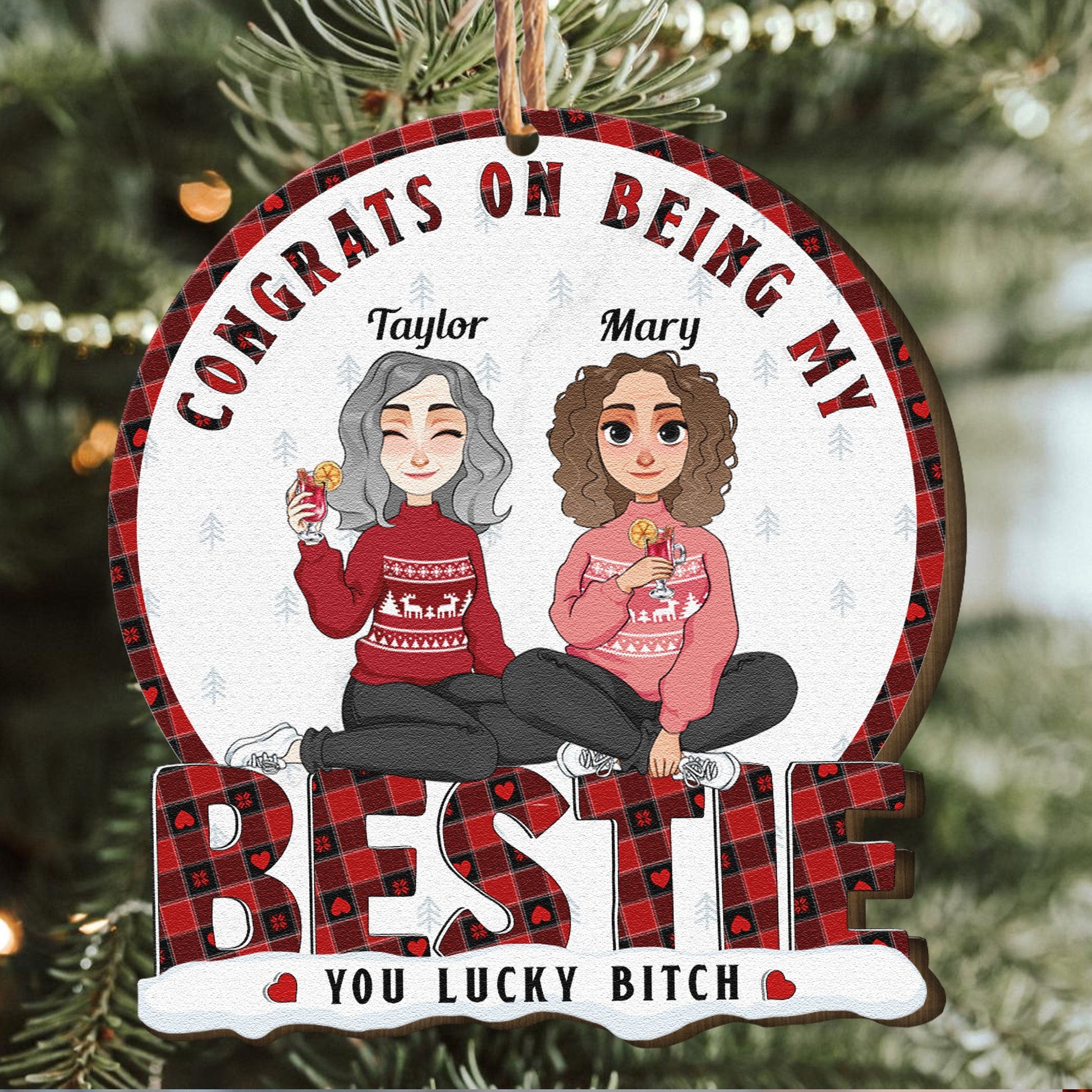 Congrats On Being My Bestie - Personalized Wooden Ornament