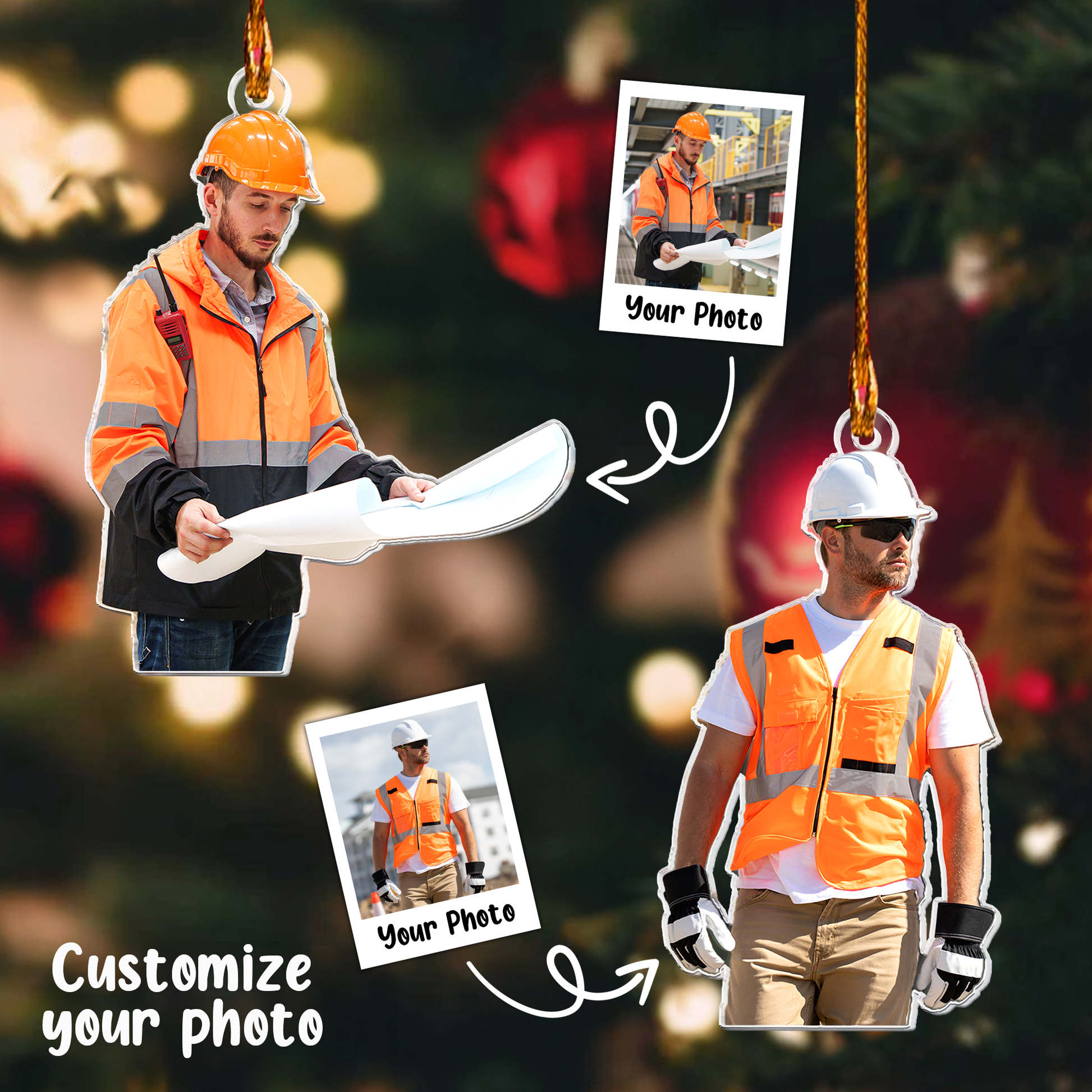 Construction Ornaments Christmas Decoration - Personalized Acrylic Photo Ornament