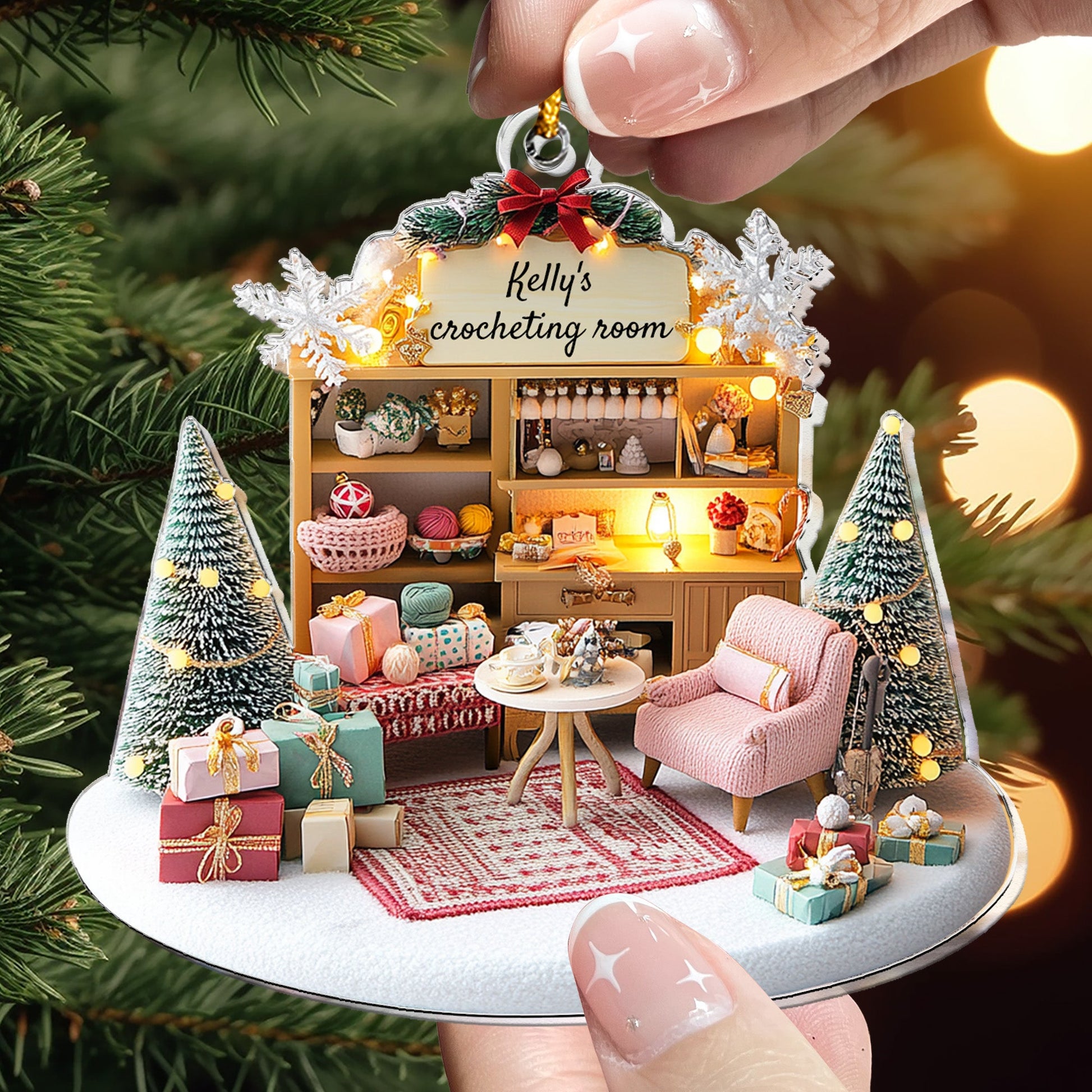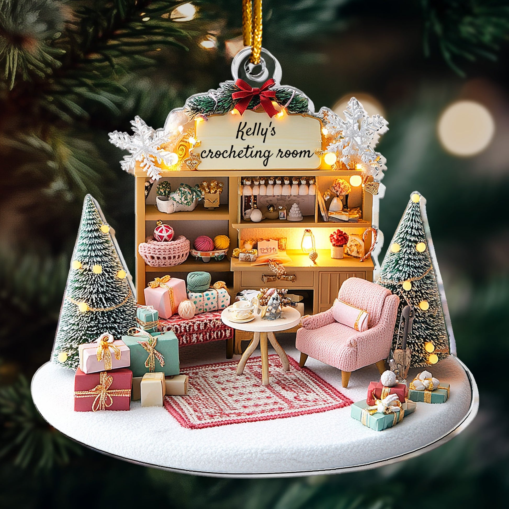 Crocheting Room Ornament - Craft Room - She Shed Christmas Ornament - Personalized Acrylic Ornament