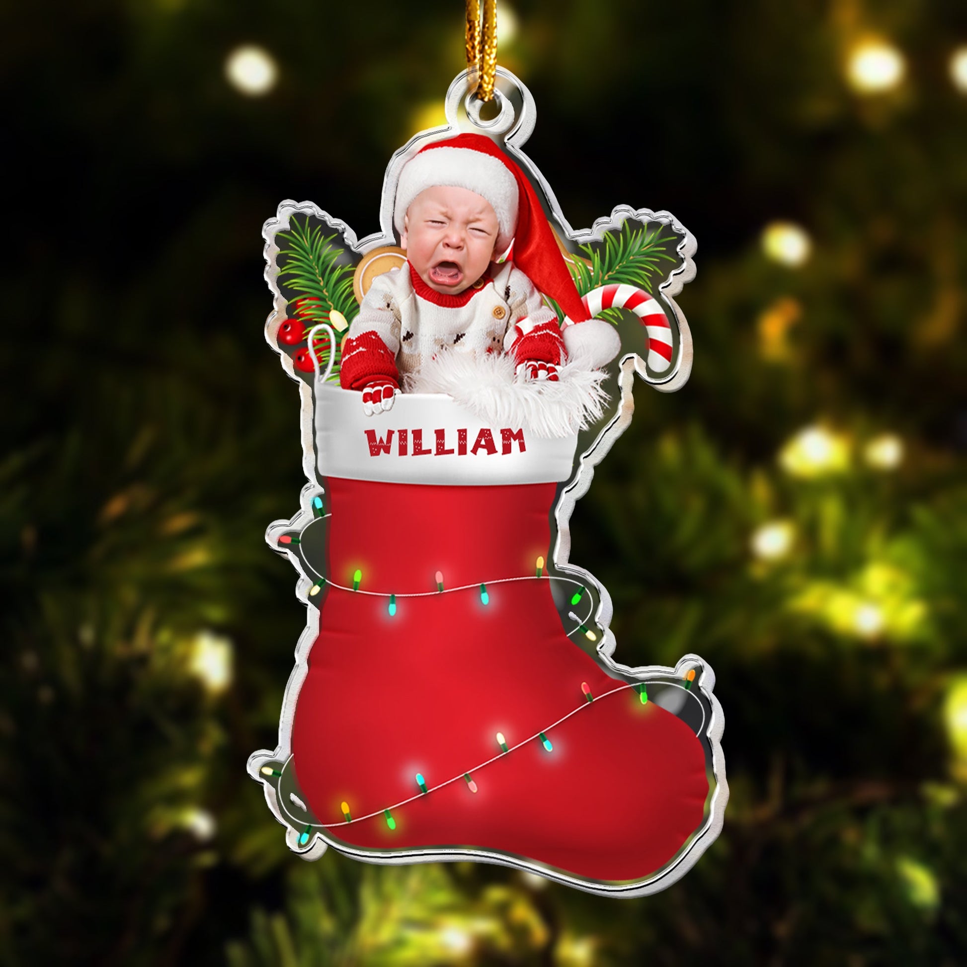 Custom Baby In Christmas Sock - Personalized Acrylic Photo Ornament