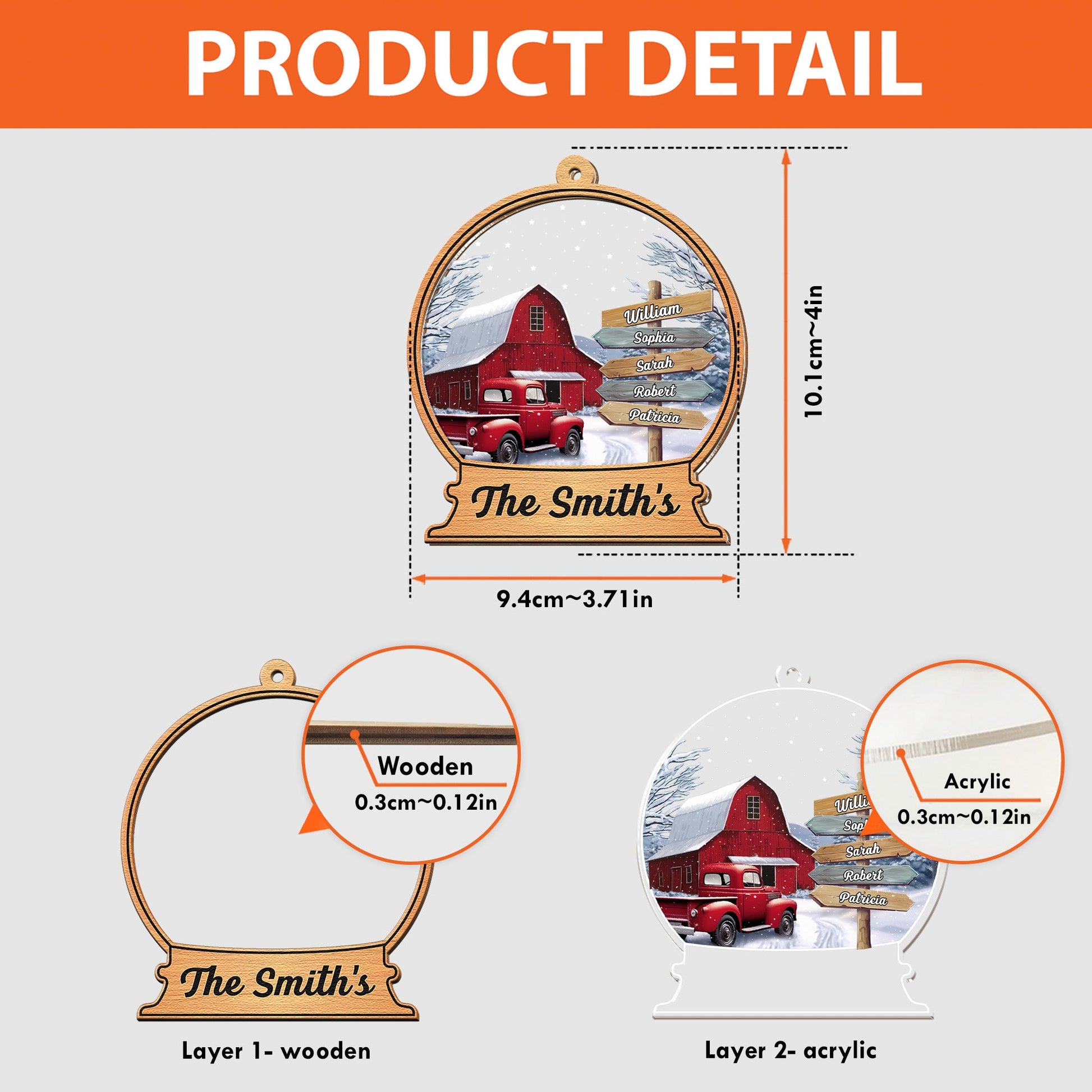 - The front of this wood & acrylic ornament is made from premium natural wood and mounted on acrylic plexiglass.
