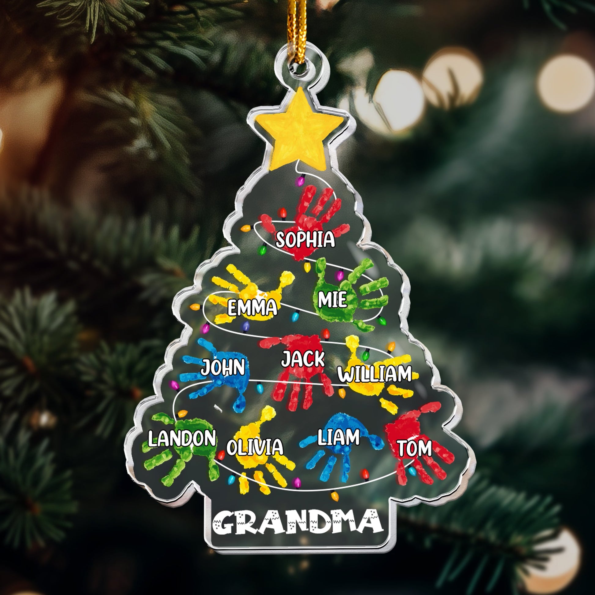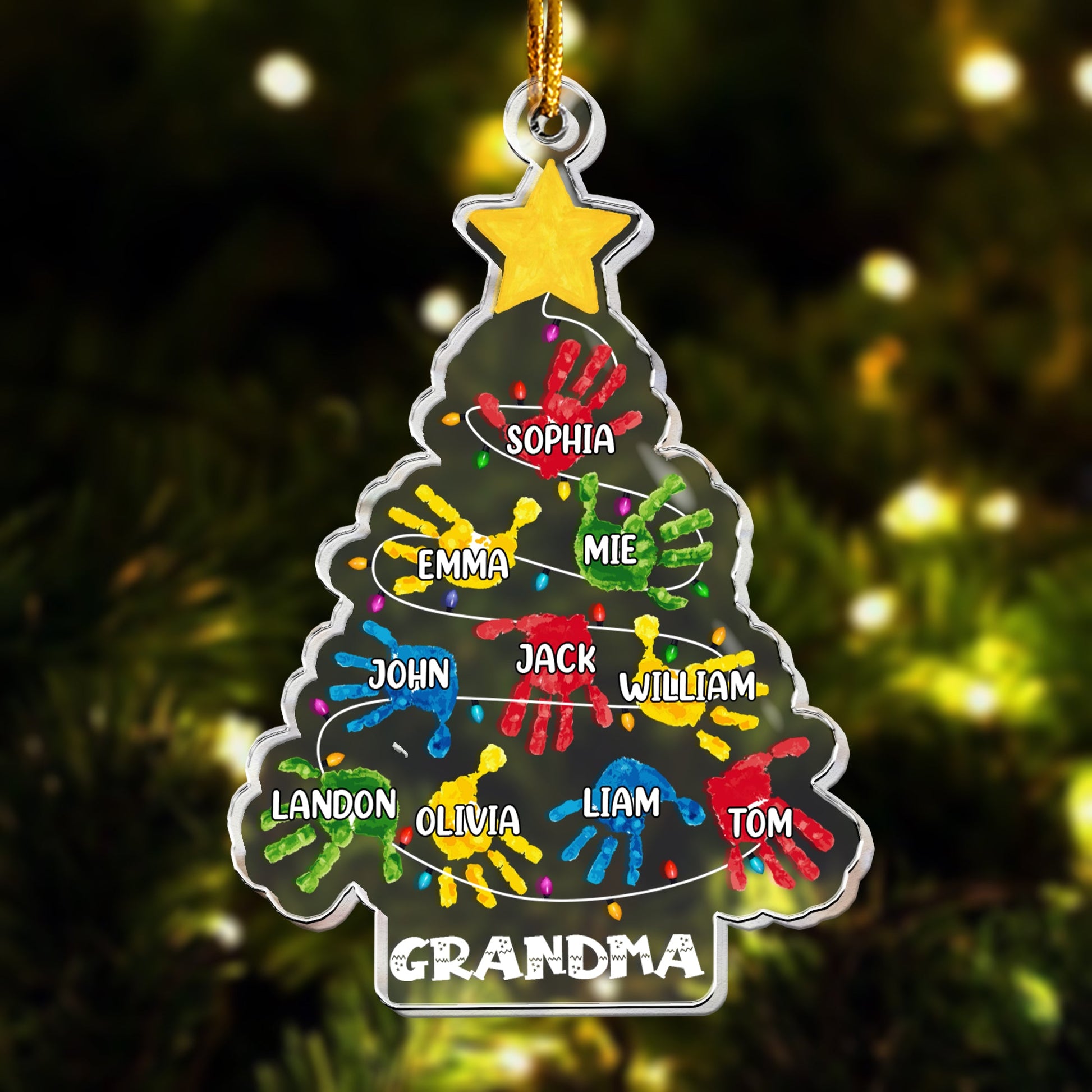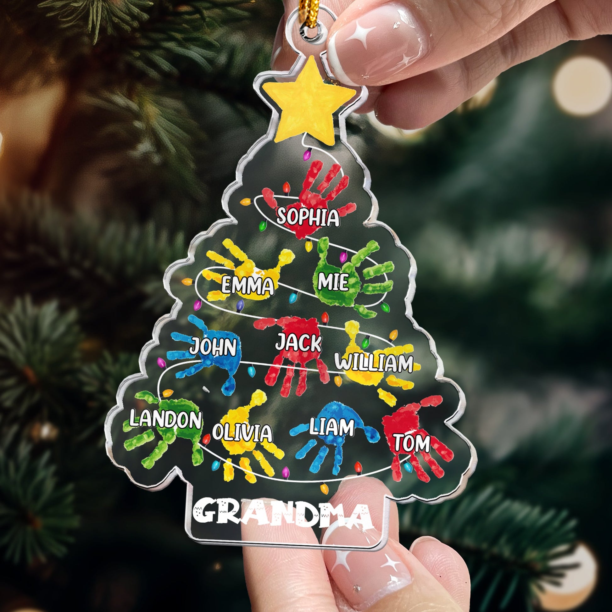 Custom Grandchildren Names Handprint Christmas Tree - Personalized Acrylic Ornament