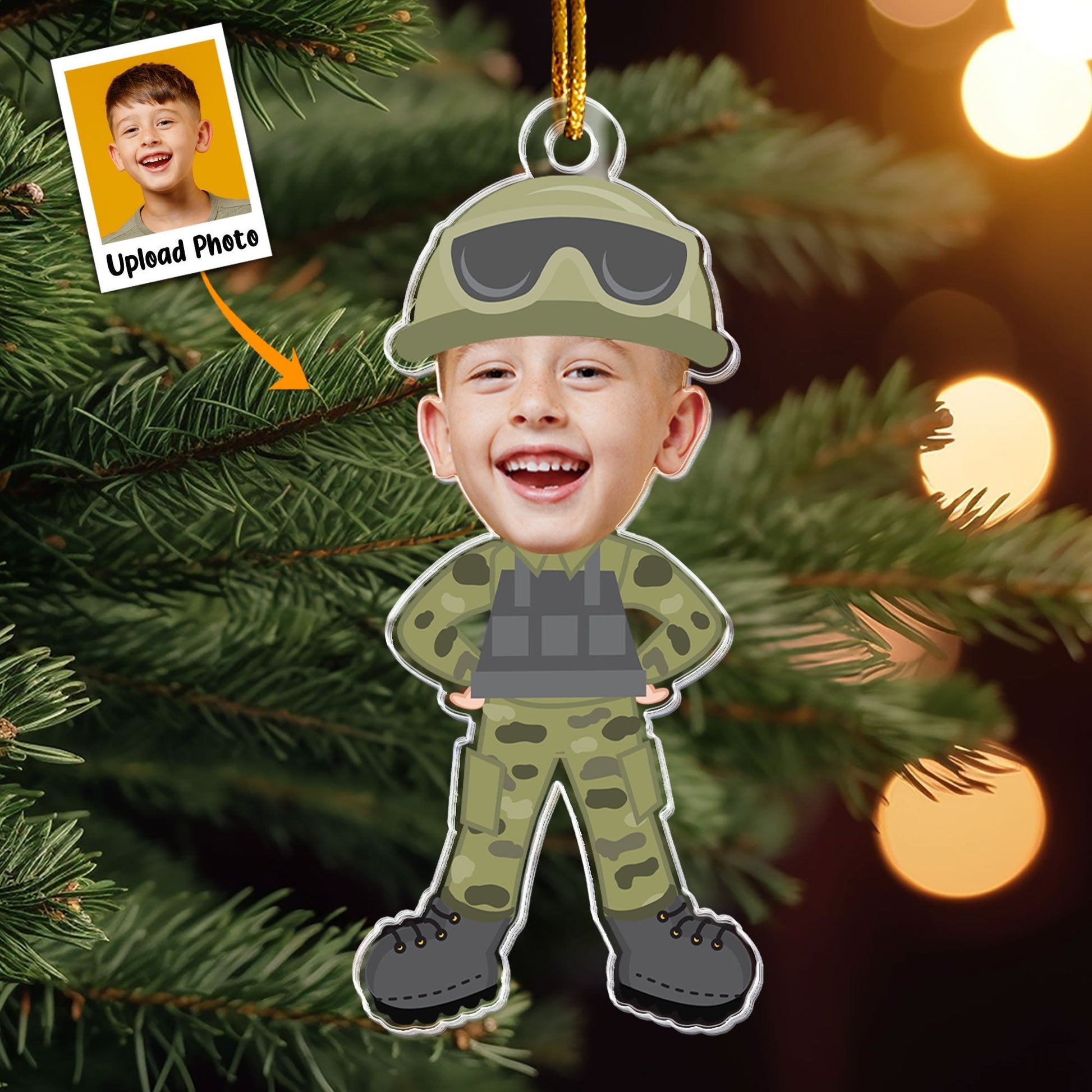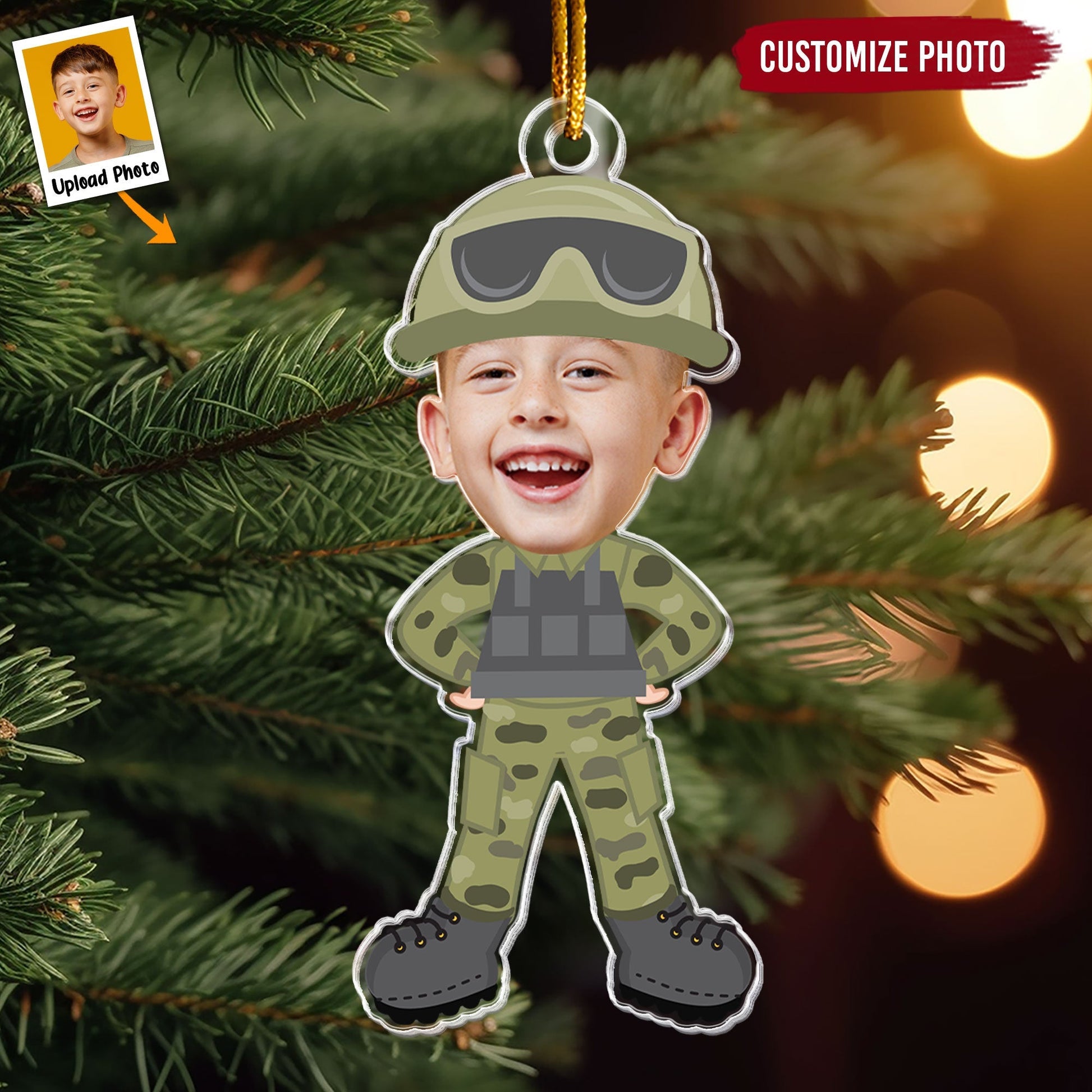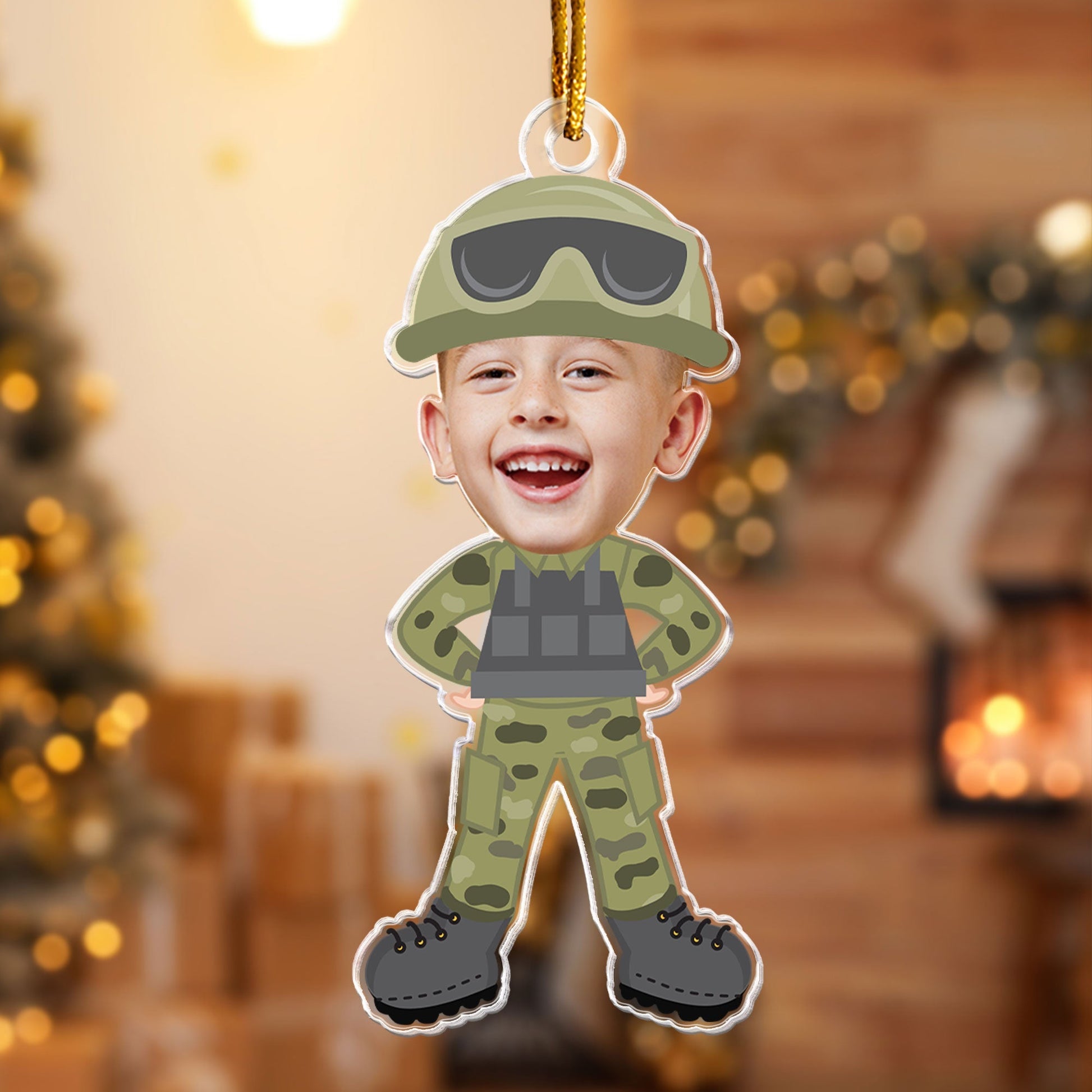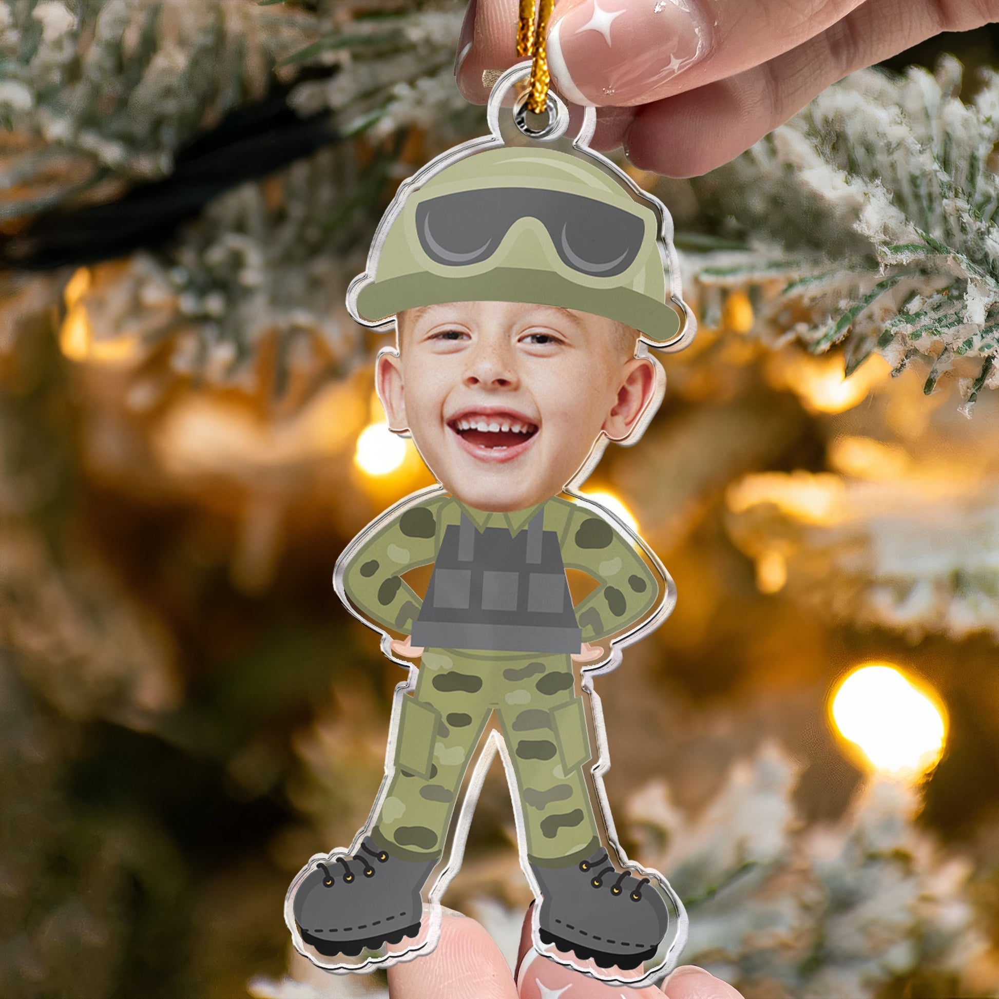 Custom Kid Face Army - Personalized Acrylic Photo Ornament