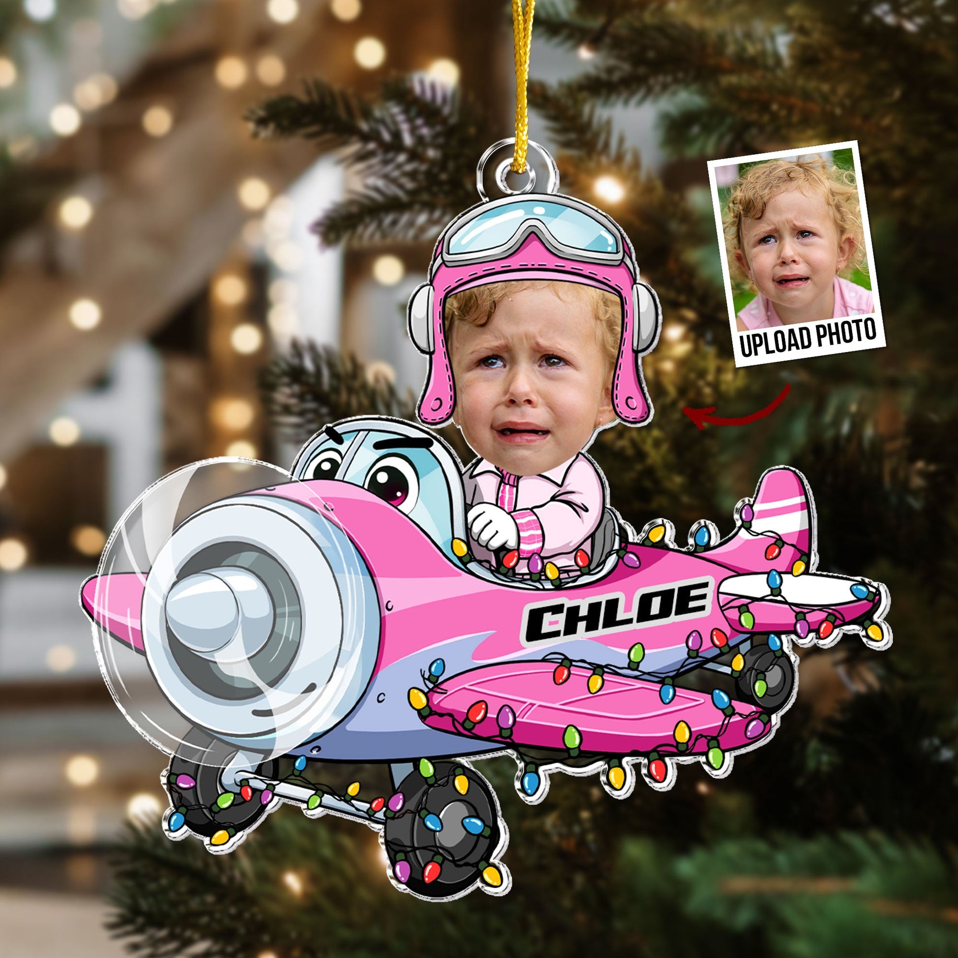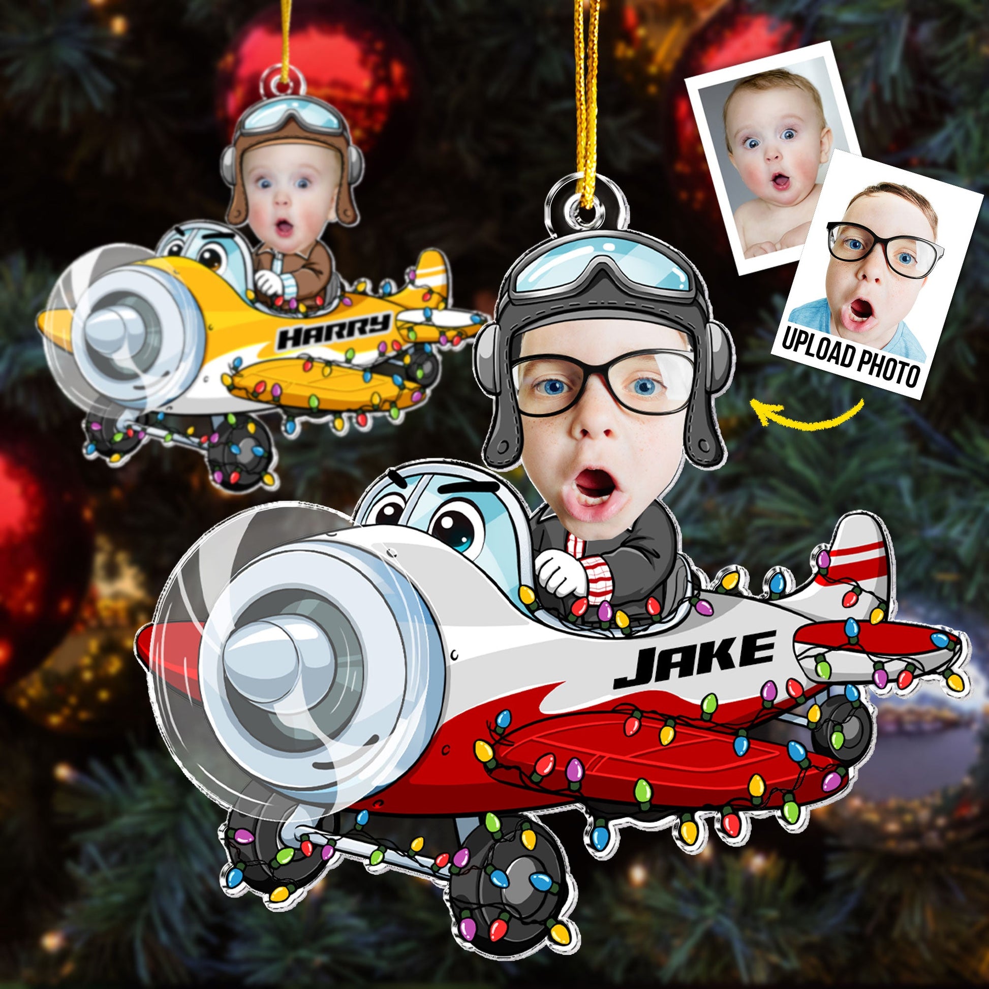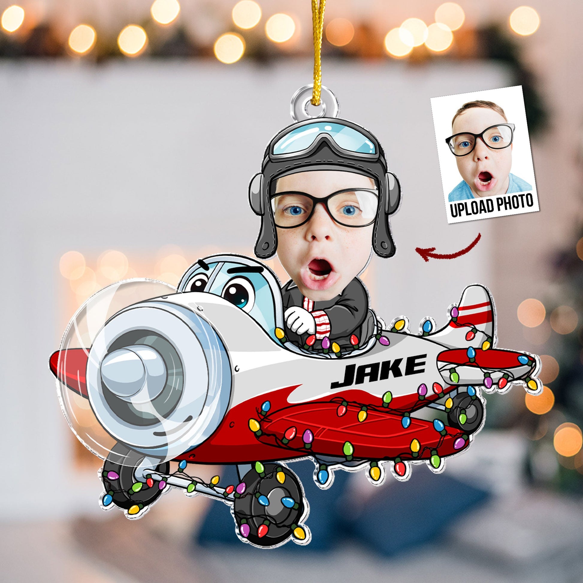 Custom Kid Face Cartoon Airplane - Personalized Acrylic Photo Ornament