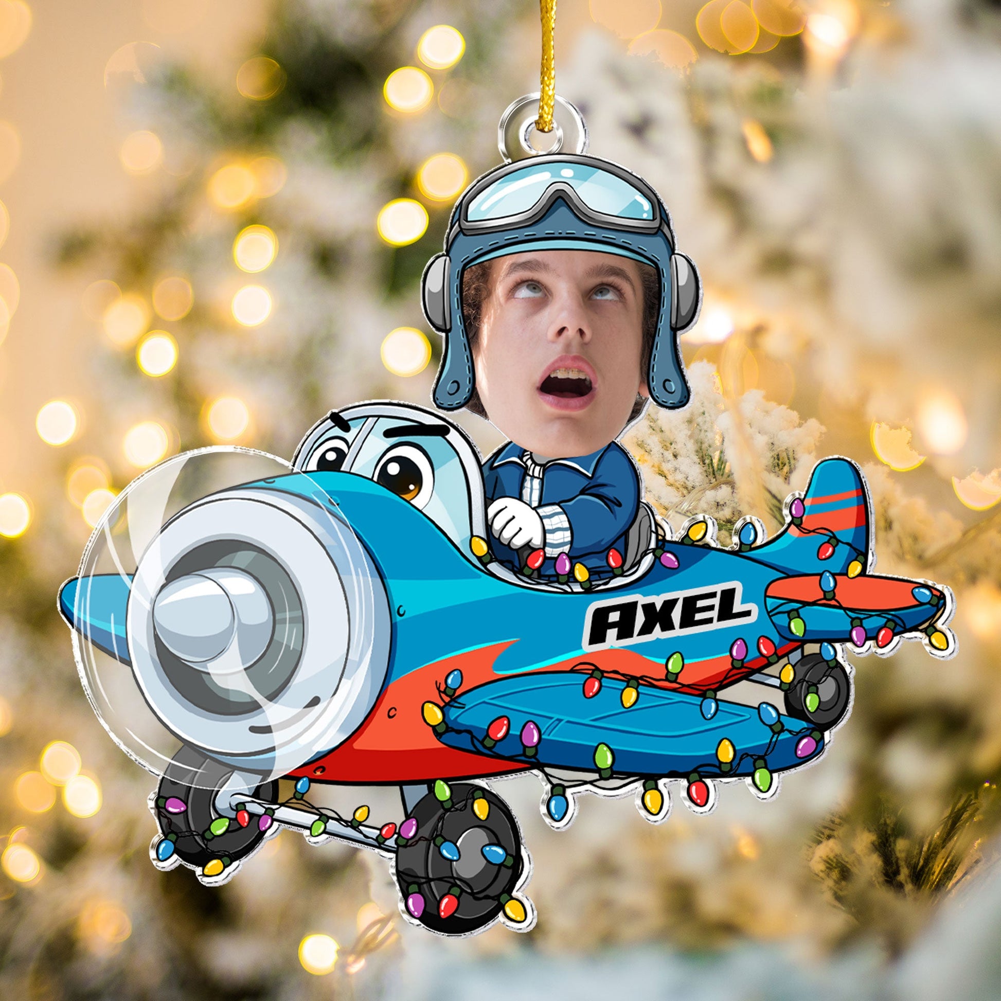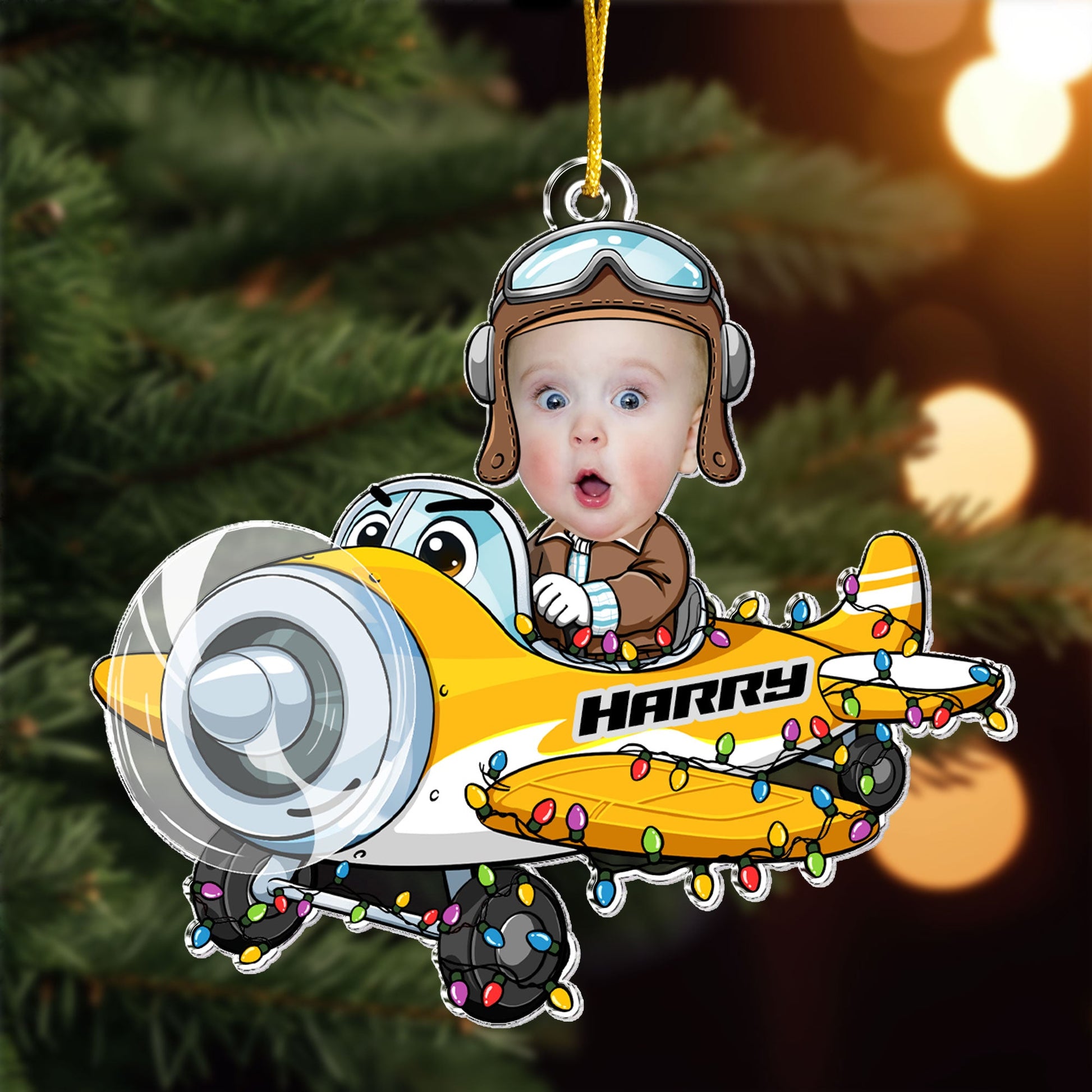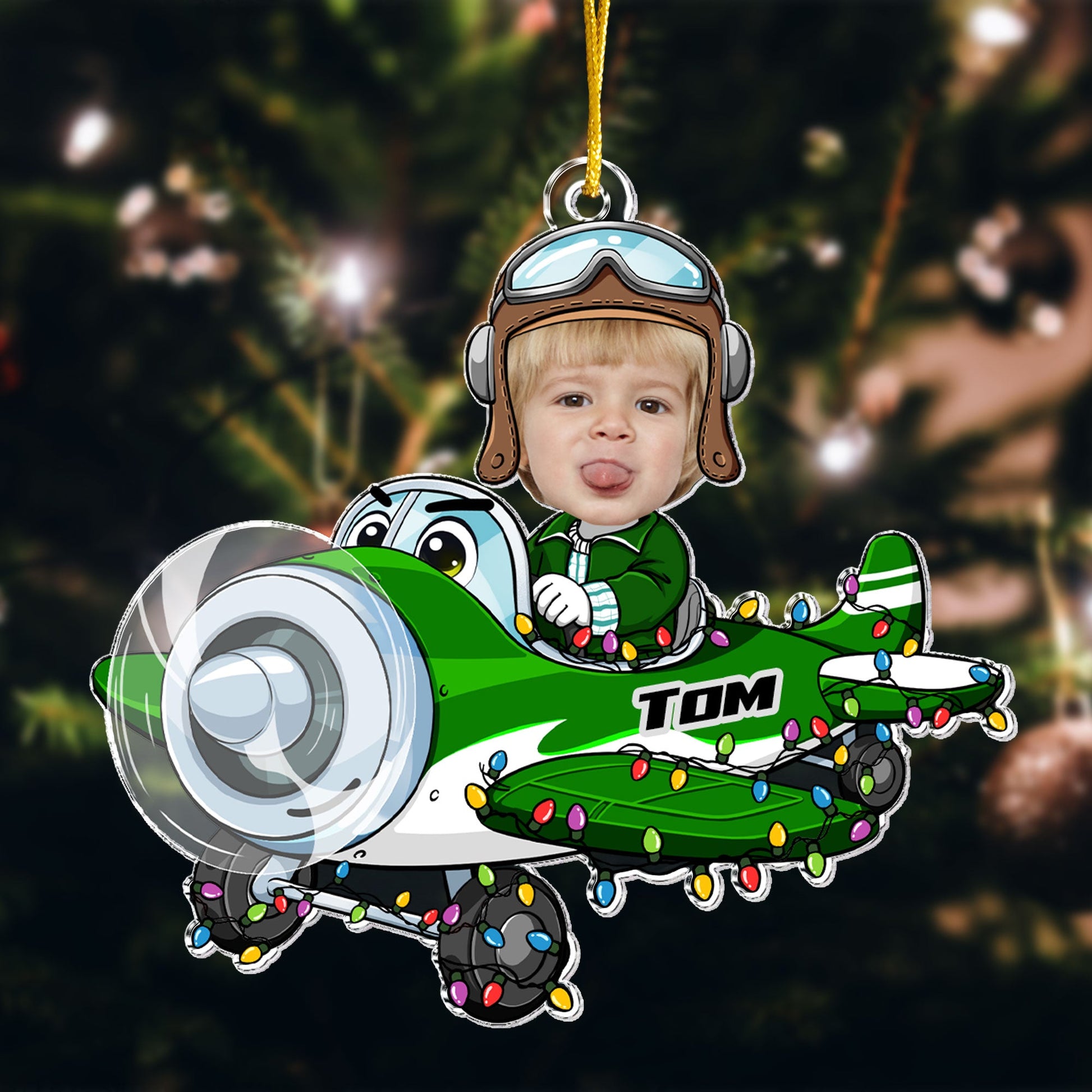 Custom Kid Face Cartoon Airplane - Personalized Acrylic Photo Ornament