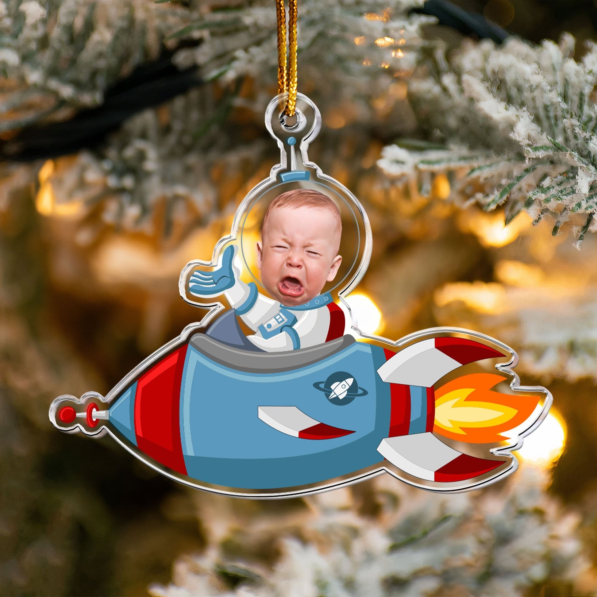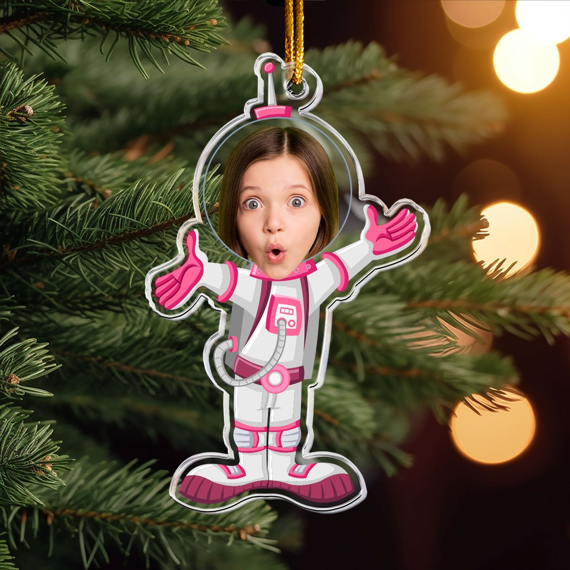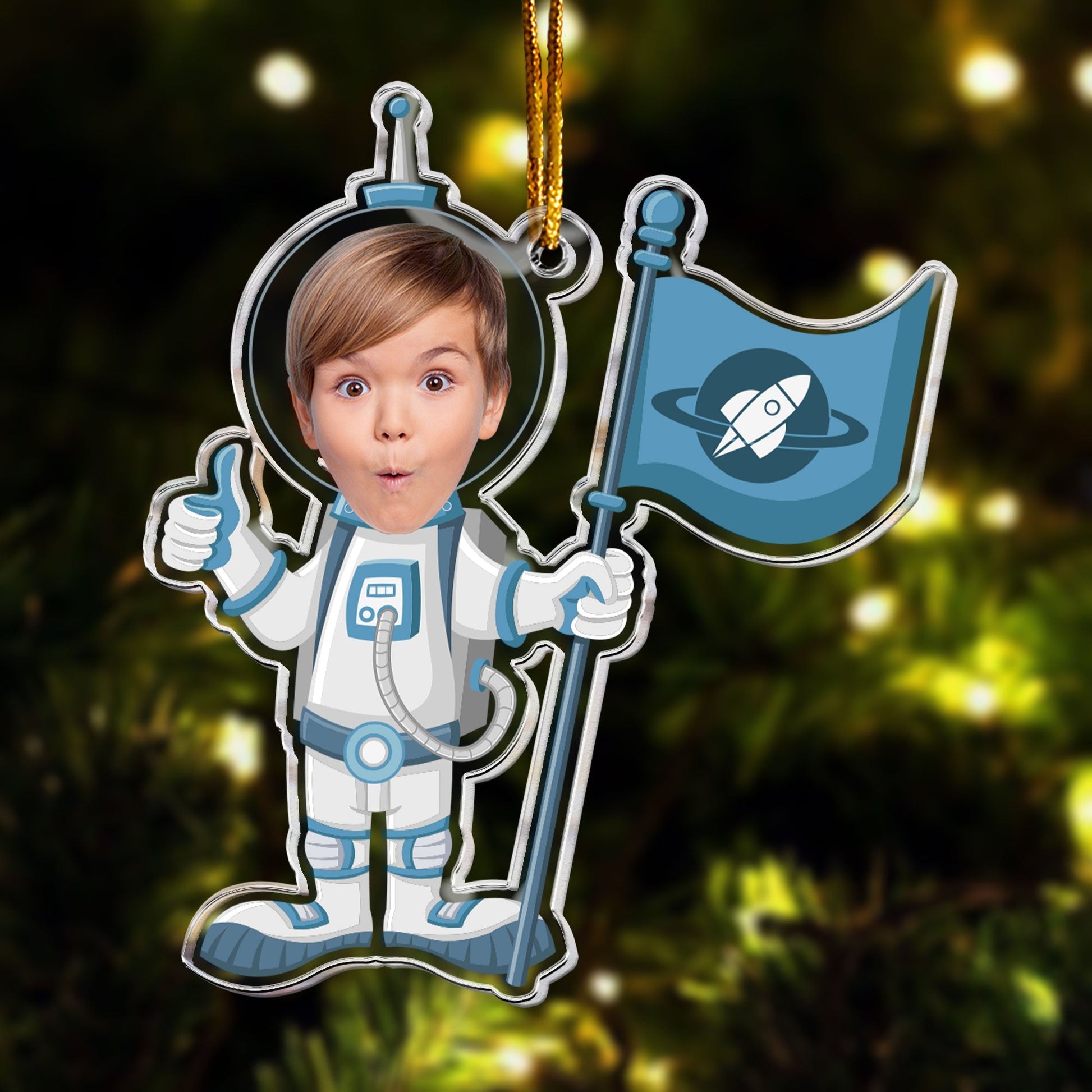 Custom Kid Face In Ufo Astronaut - Personalized Acrylic Photo Ornament