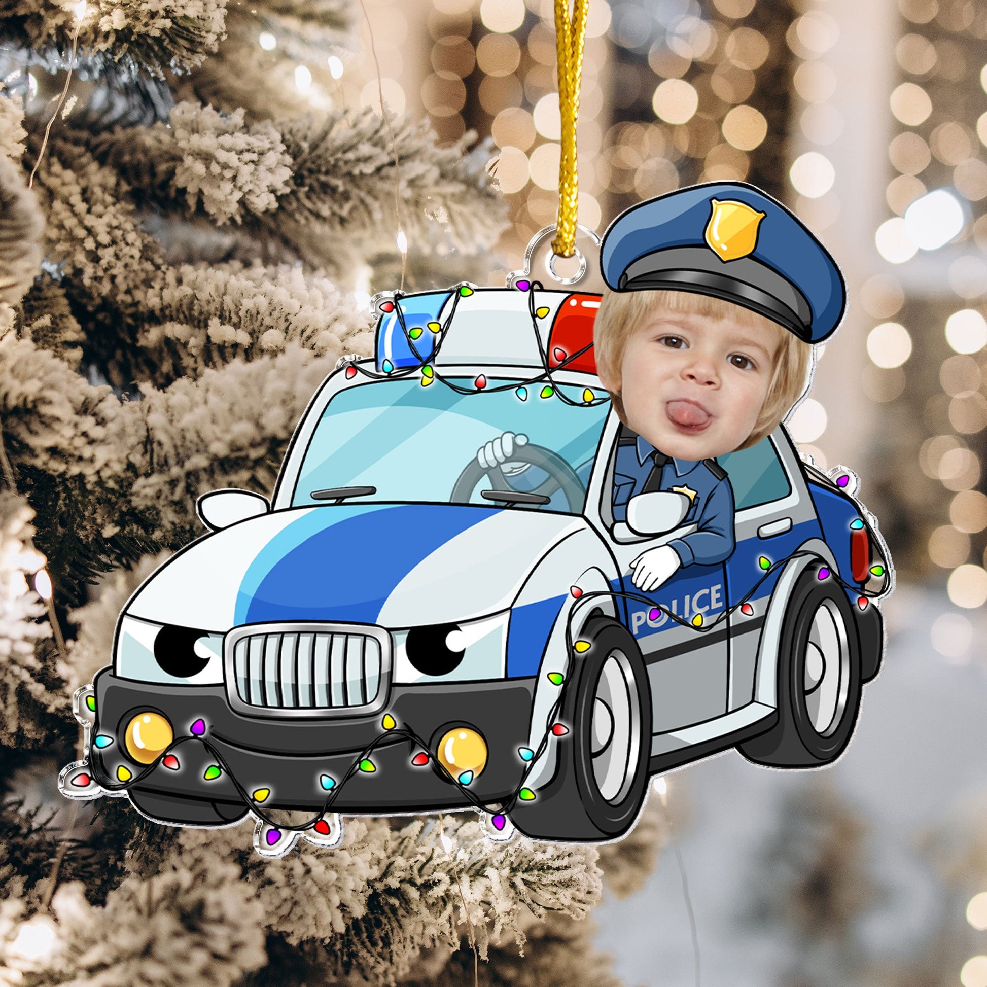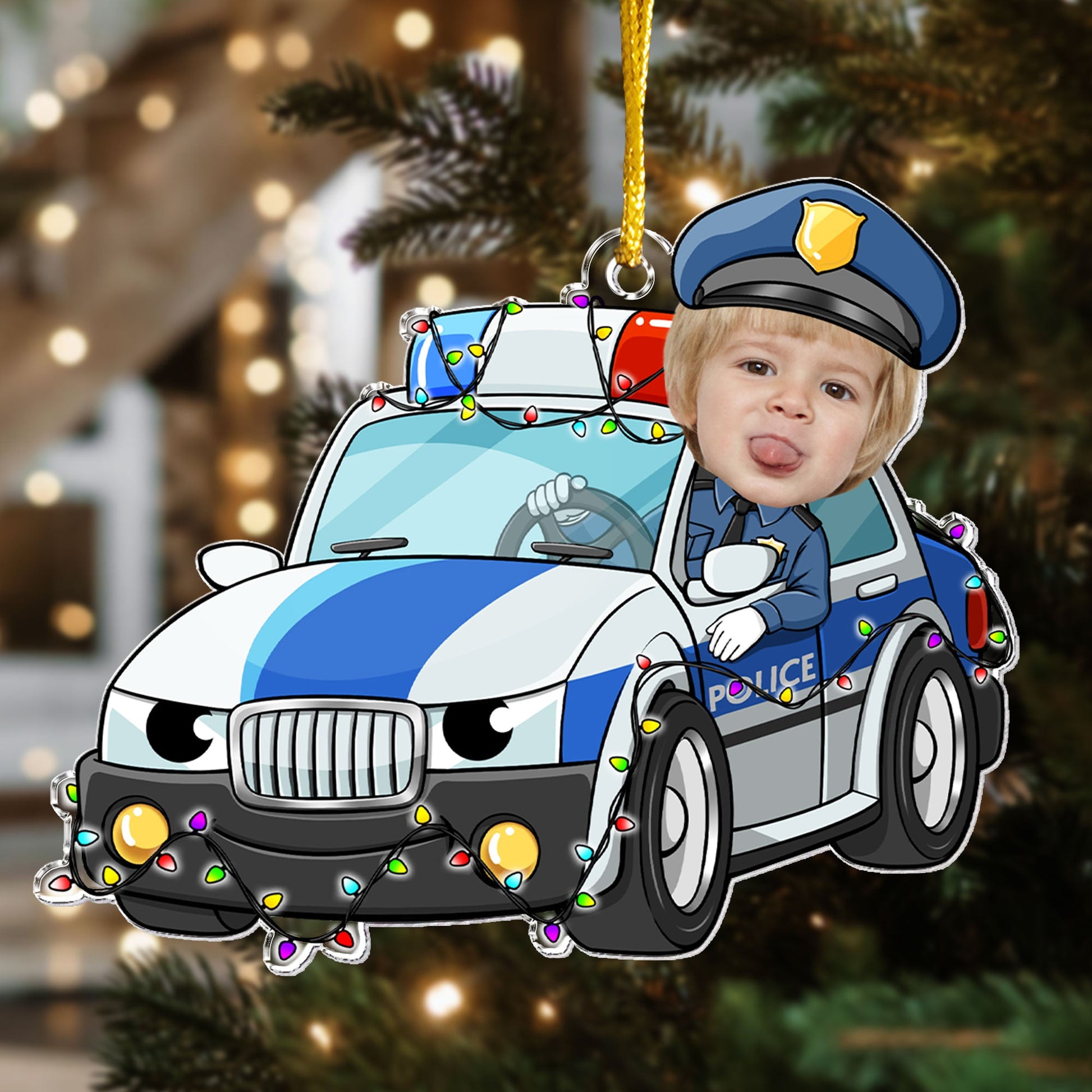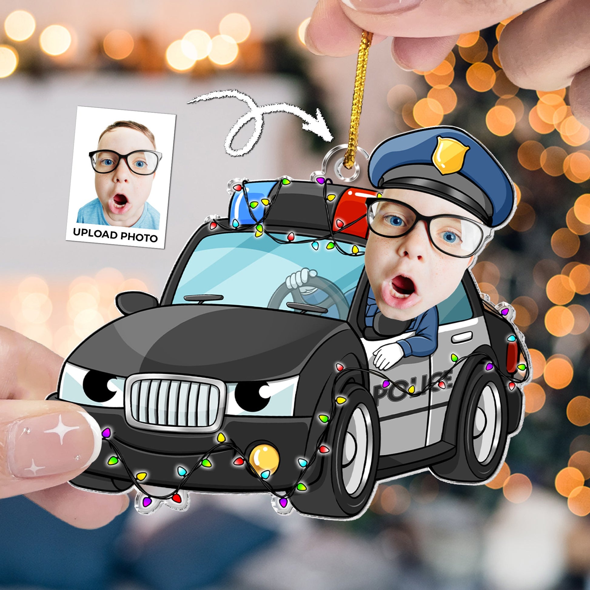 Custom Kid Face Police Car Cartoon - Personalized Acrylic Photo Ornament