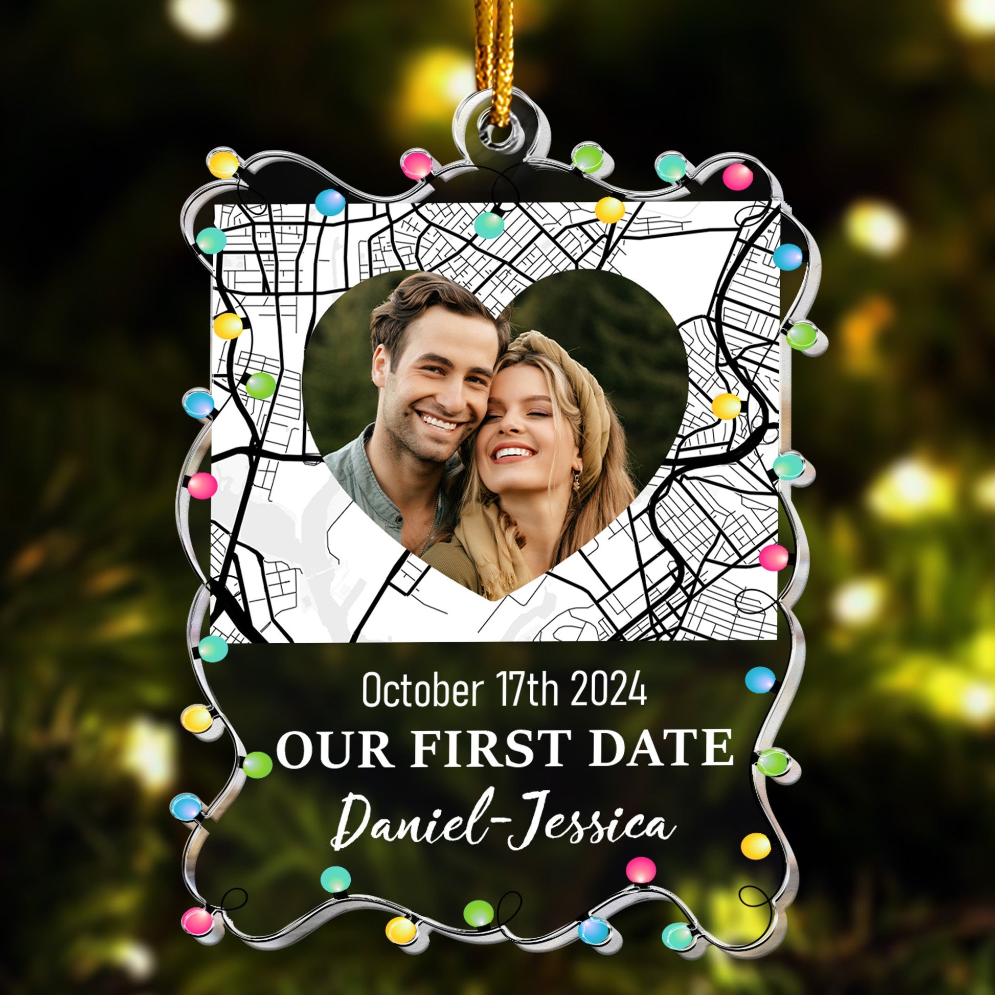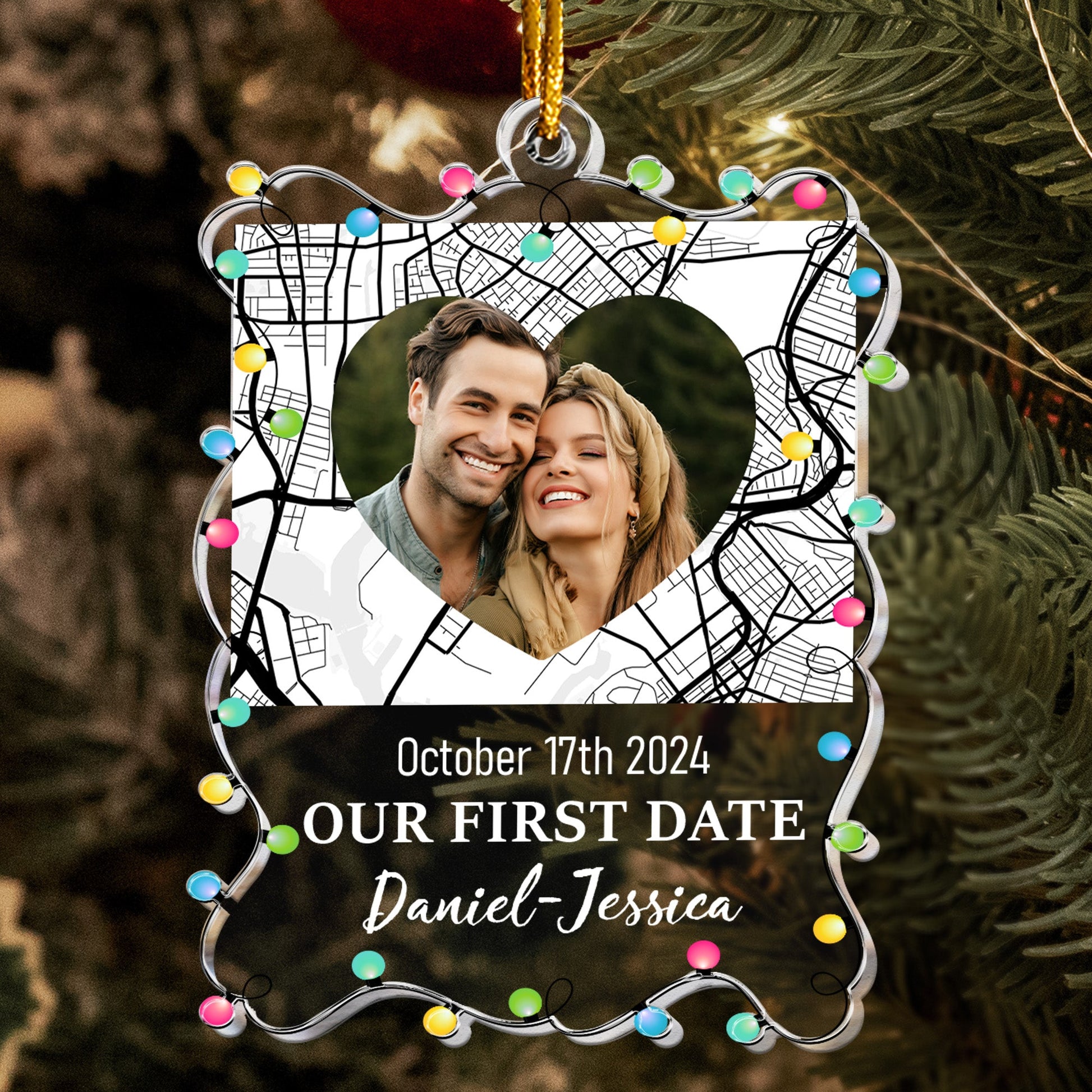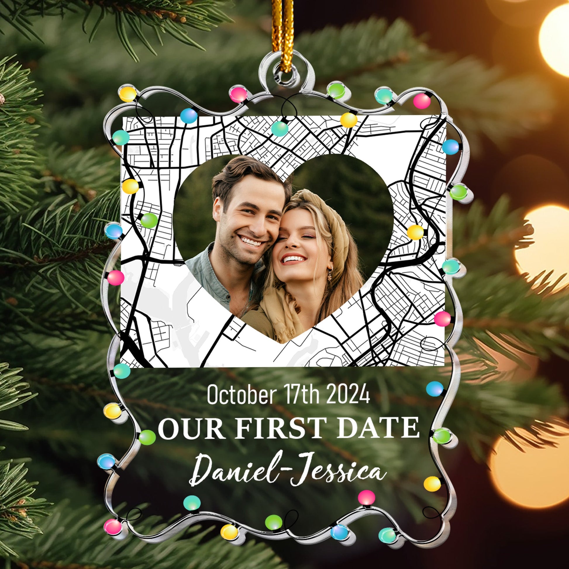 Custom Location Map Couple Our First Date - Personalized Acrylic Photo Ornament