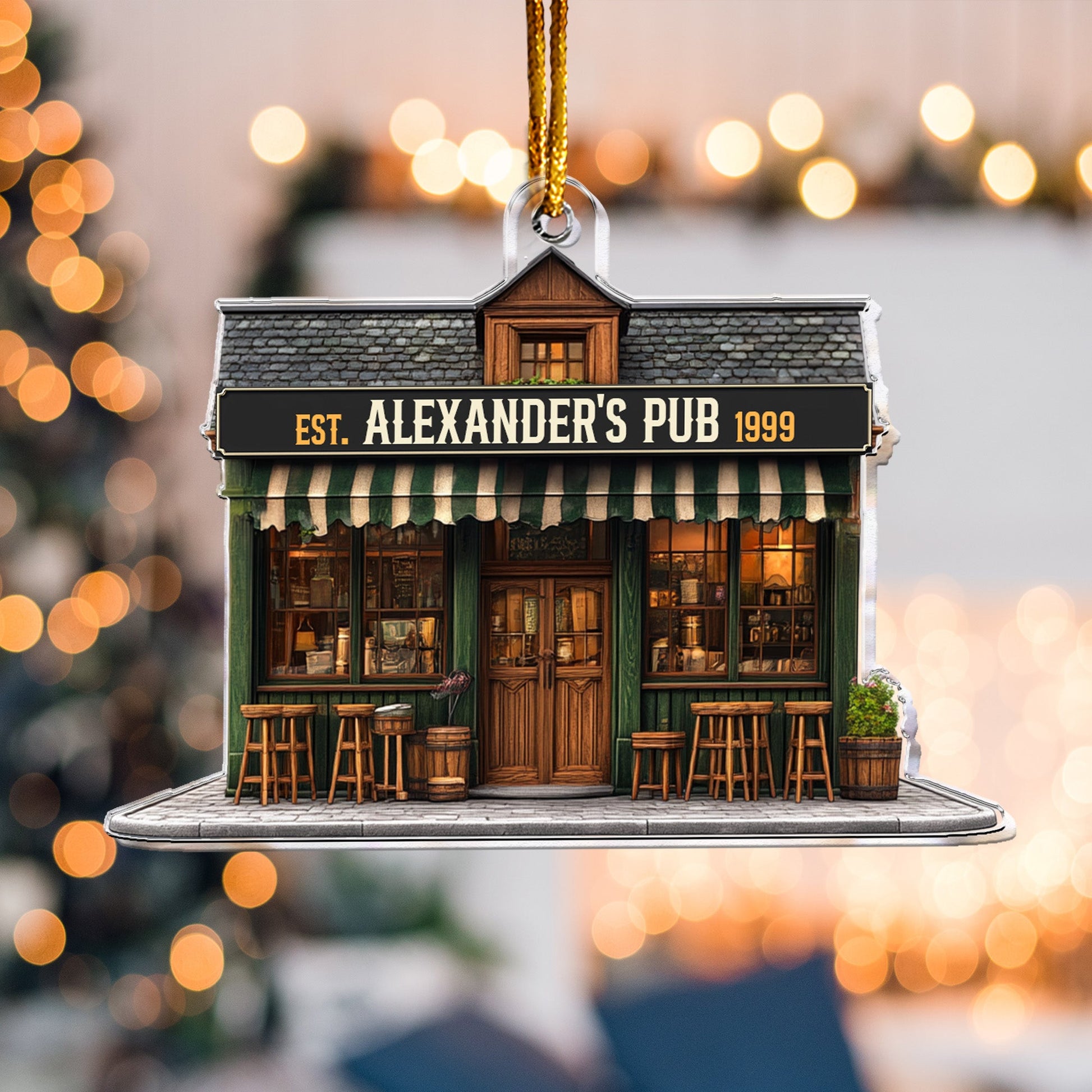 This personalized pub ornament is a unique and thoughtful gift for any pub owner or enthusiast. Featuring a custom name and establishment year, it captures the charm of a classic pub, making it a perfect addition to any Christmas tree. With intricate details and a cozy design, this ornament brings the warmth of a beloved gathering spot into your holiday decor. It’s an ideal gift for anyone who treasures their pub, whether they own it or simply enjoy spending time there. Crafted to celebrate tradition and camaraderie, this ornament is a great way to honor a special place. Surprise your favorite pub lover with a gift that’s both meaningful and festive. Make this holiday season memorable with a custom keepsake they’ll cherish for years!